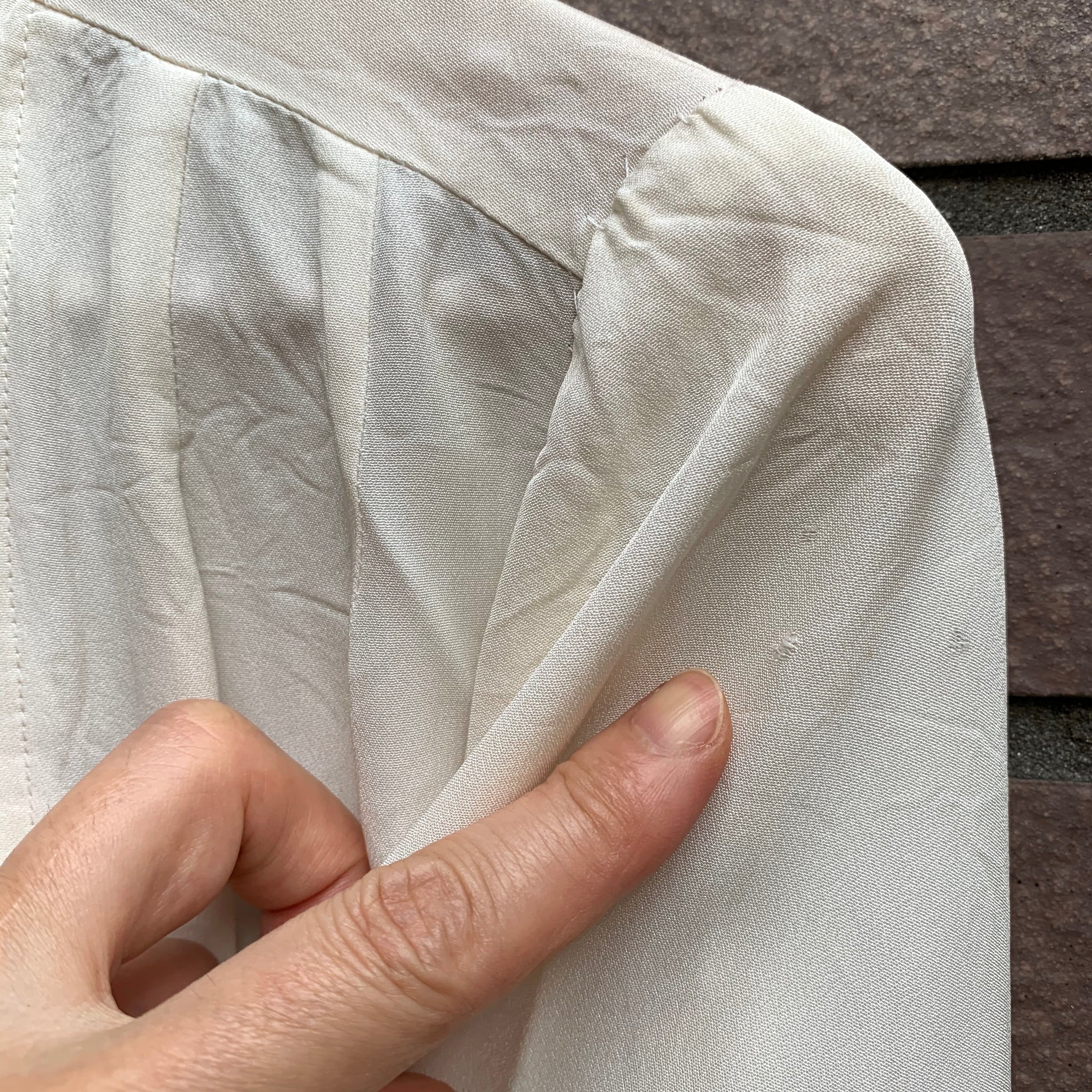 左袖の肩口などに、引っ掻き?小さな穴があります。