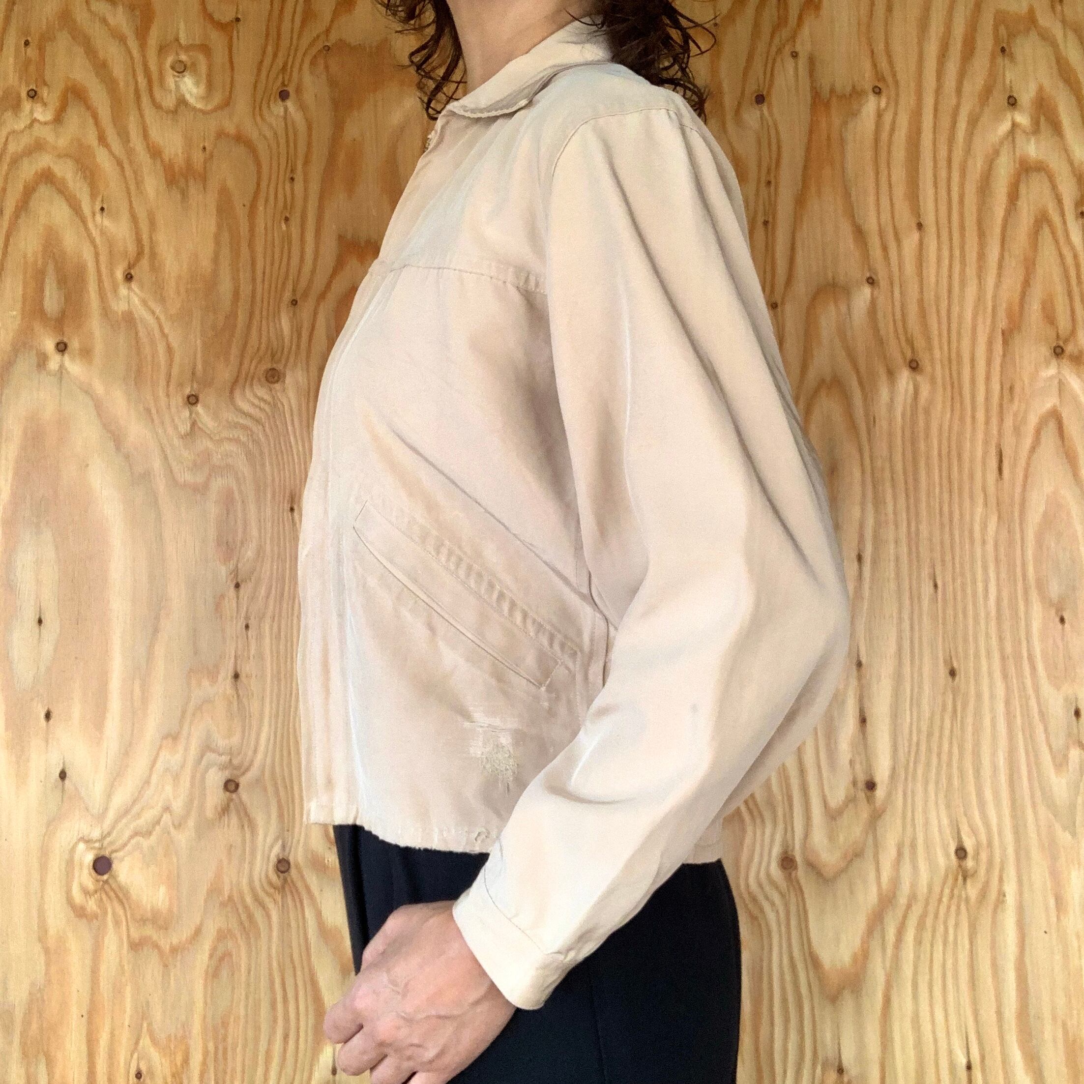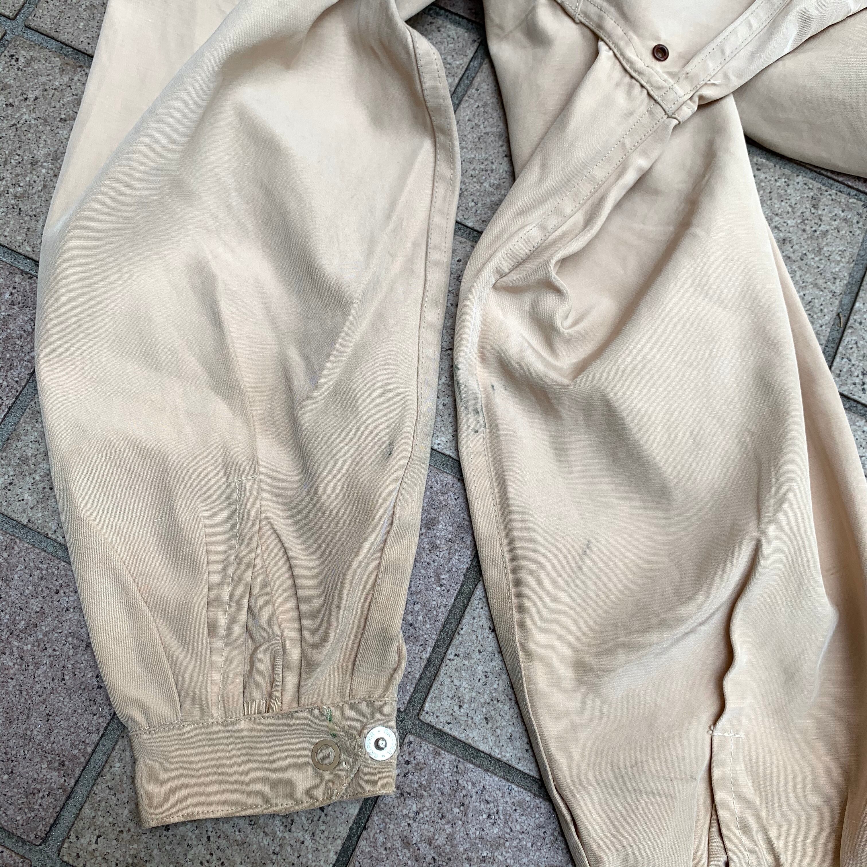 前身頃や袖に、薄らとした黒い染みあり。