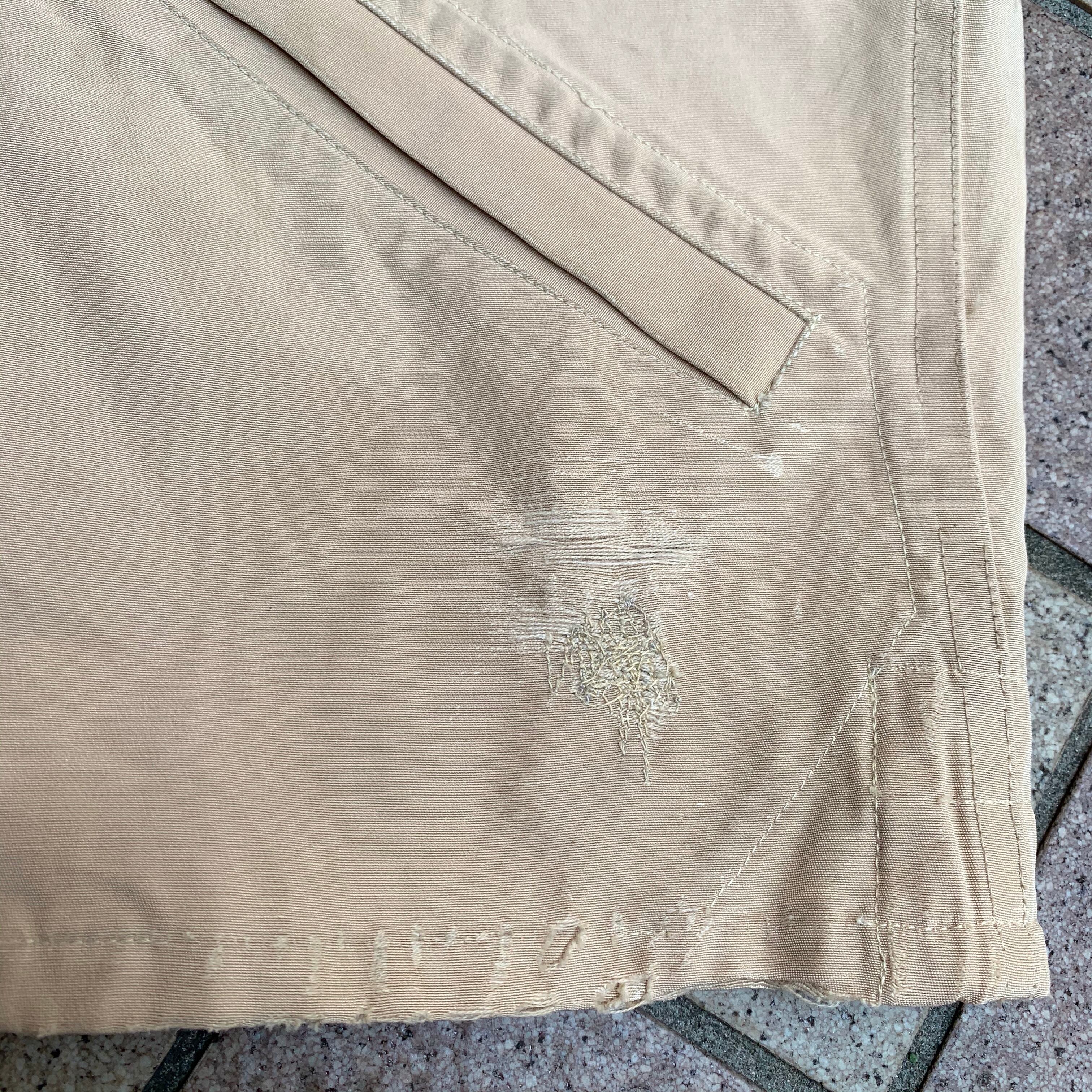 左前の裾に、擦れたような穴と補修痕あり。