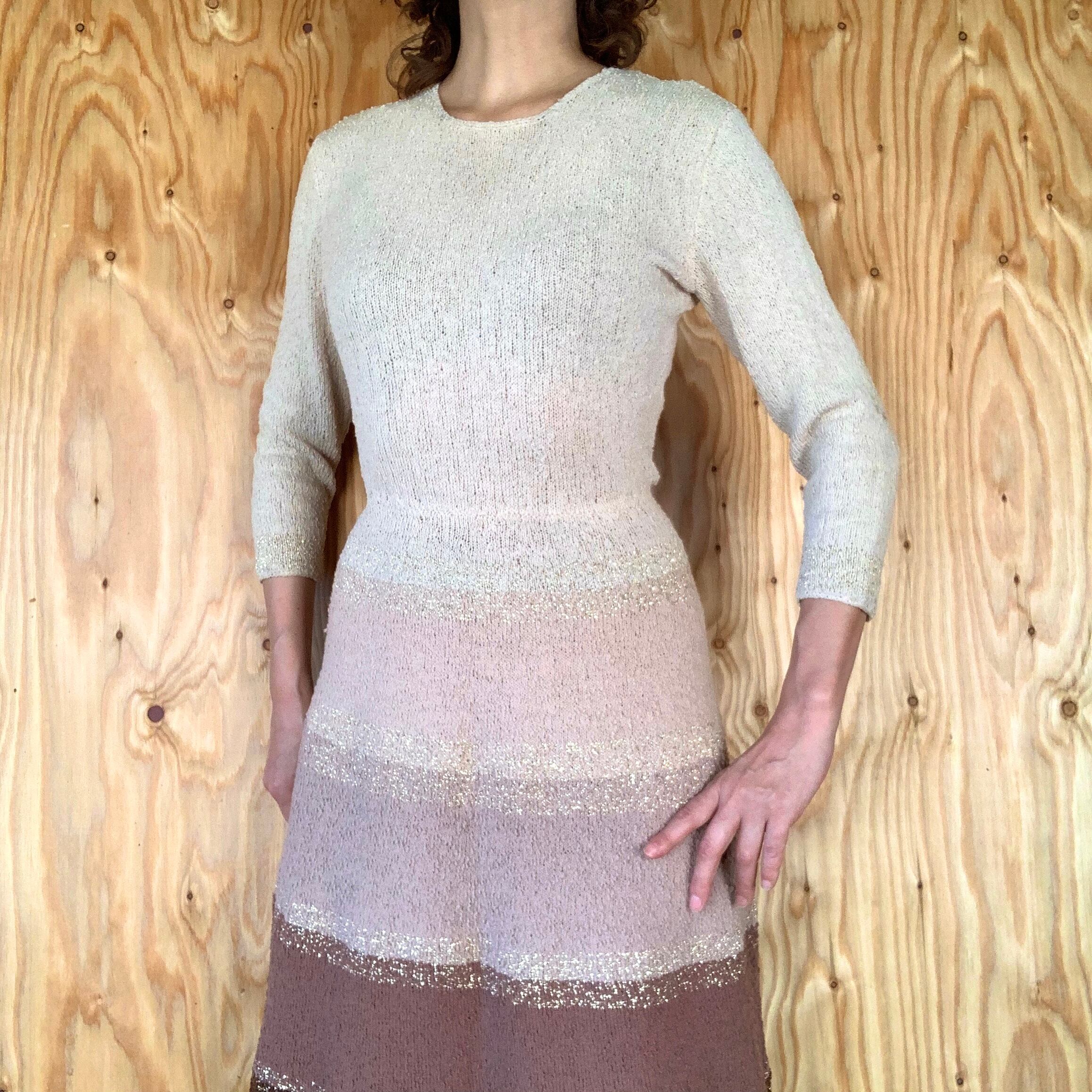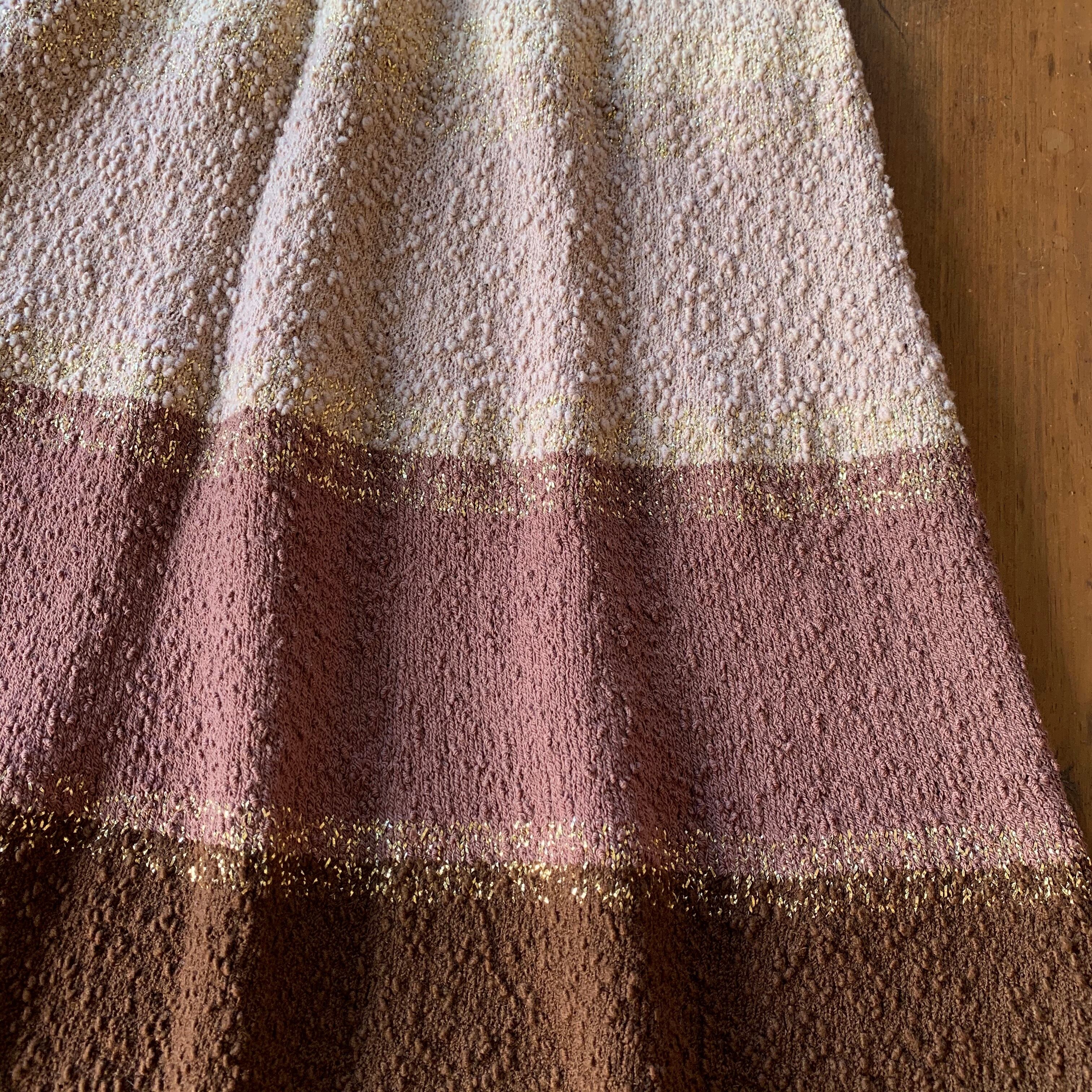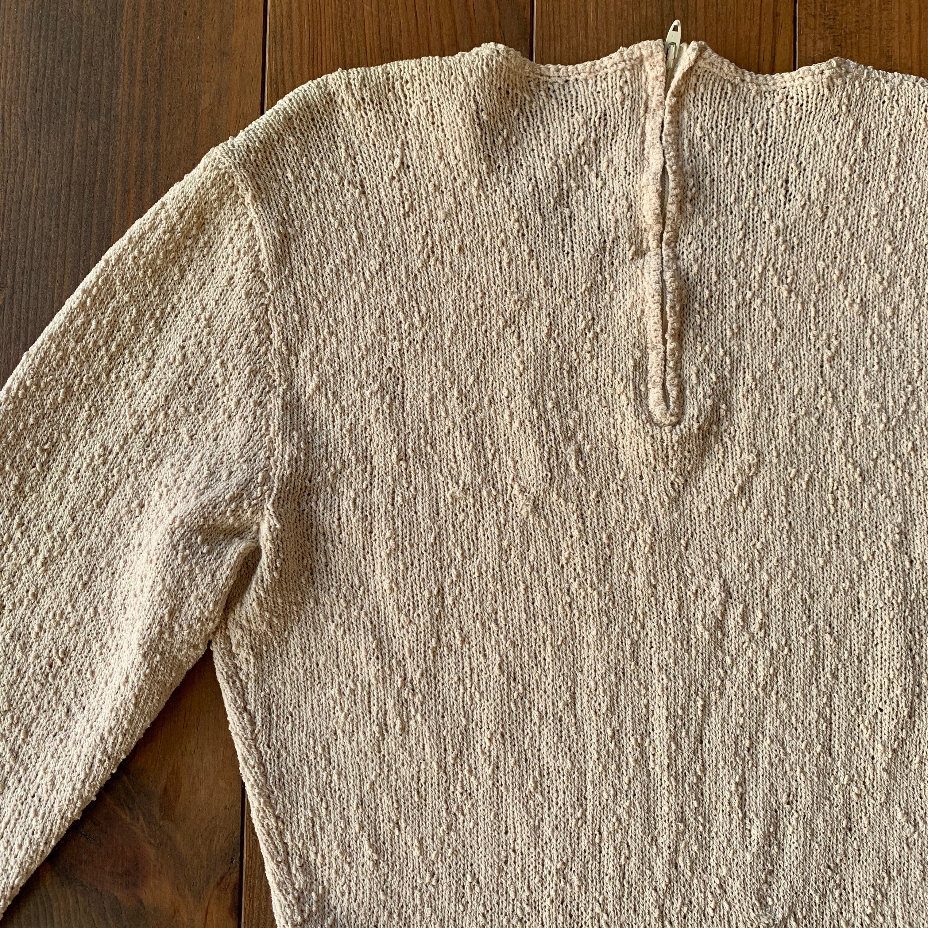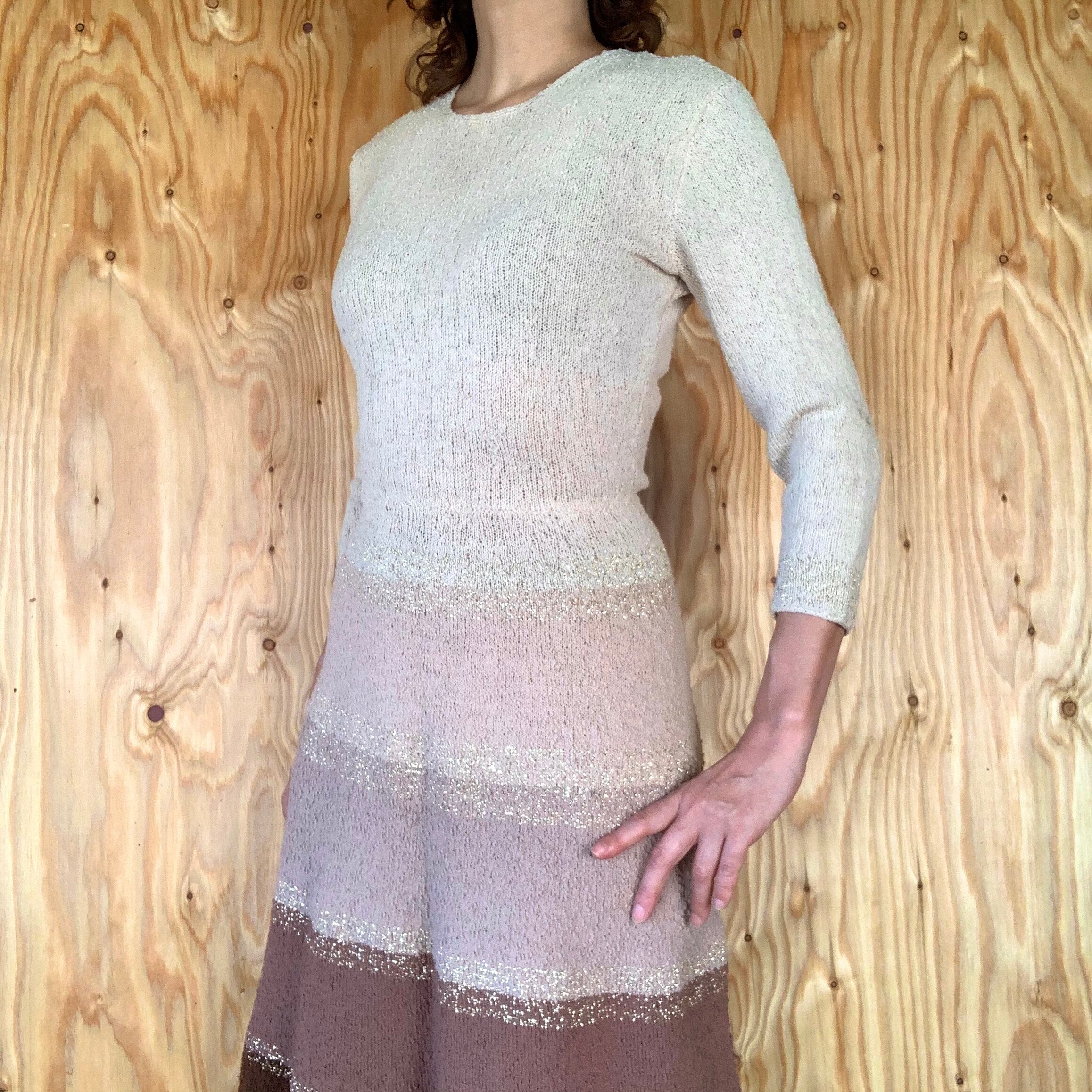 50s knit dress beige×brown.gold