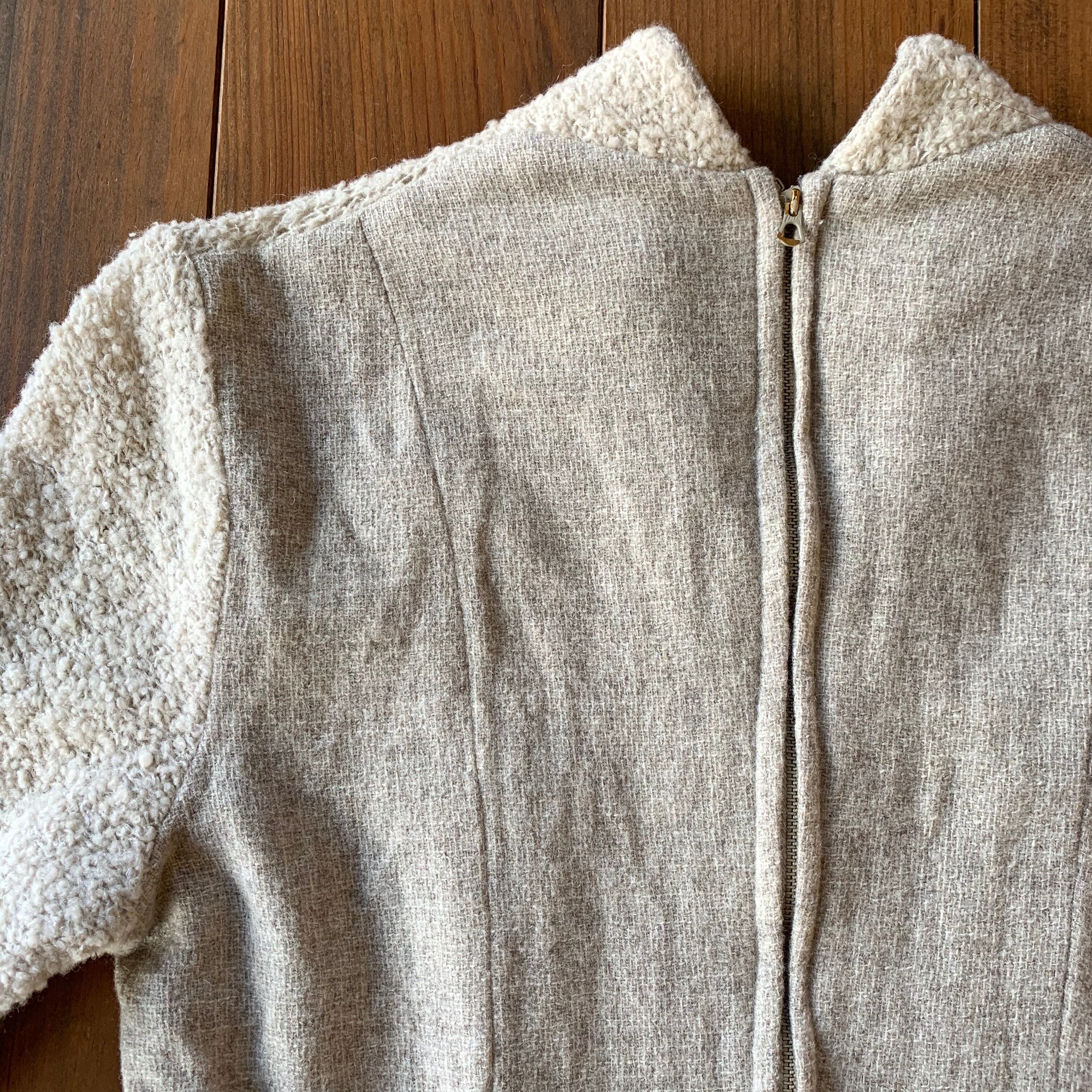 首周りから袖に掛けては凹凸ある生地で、ボディの生地より増してフカフカです。