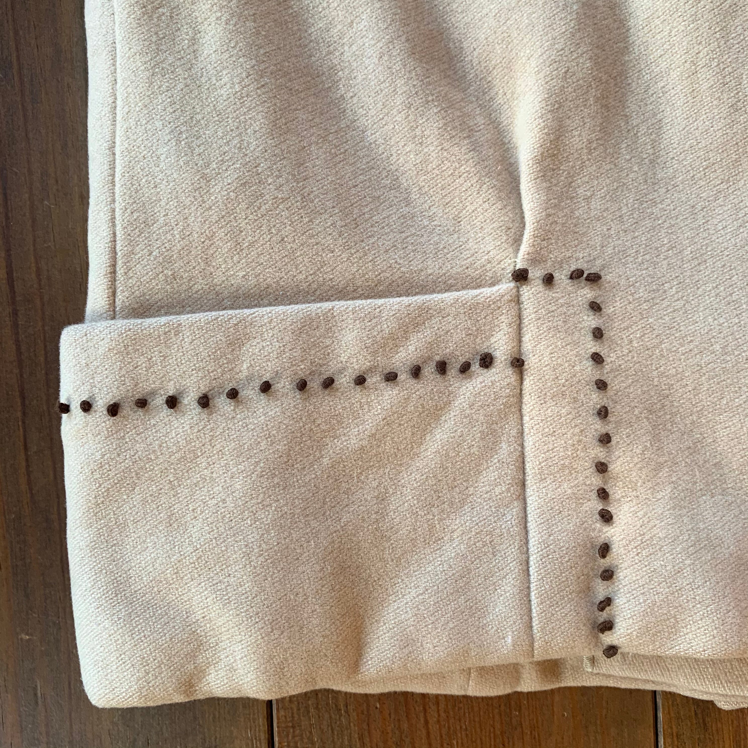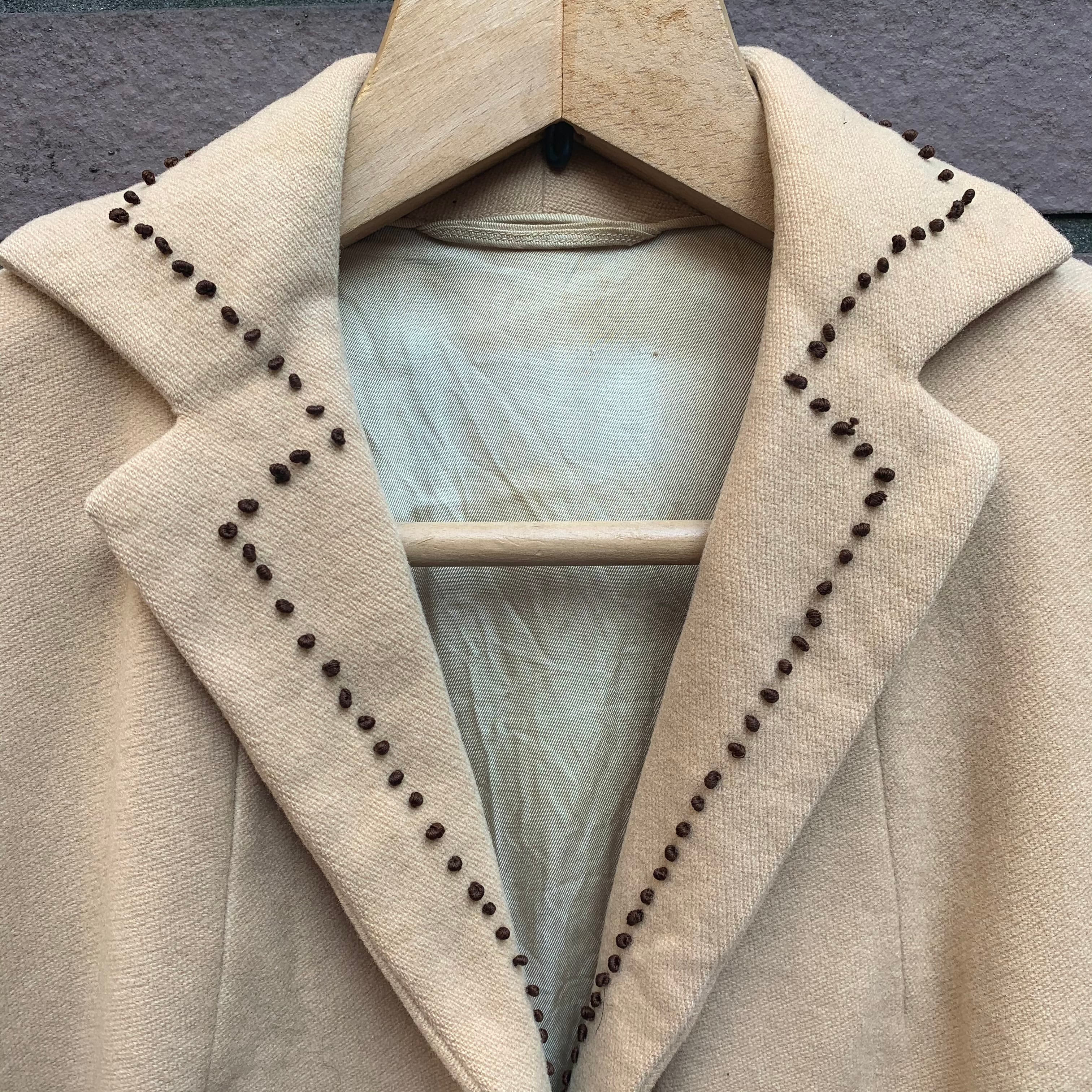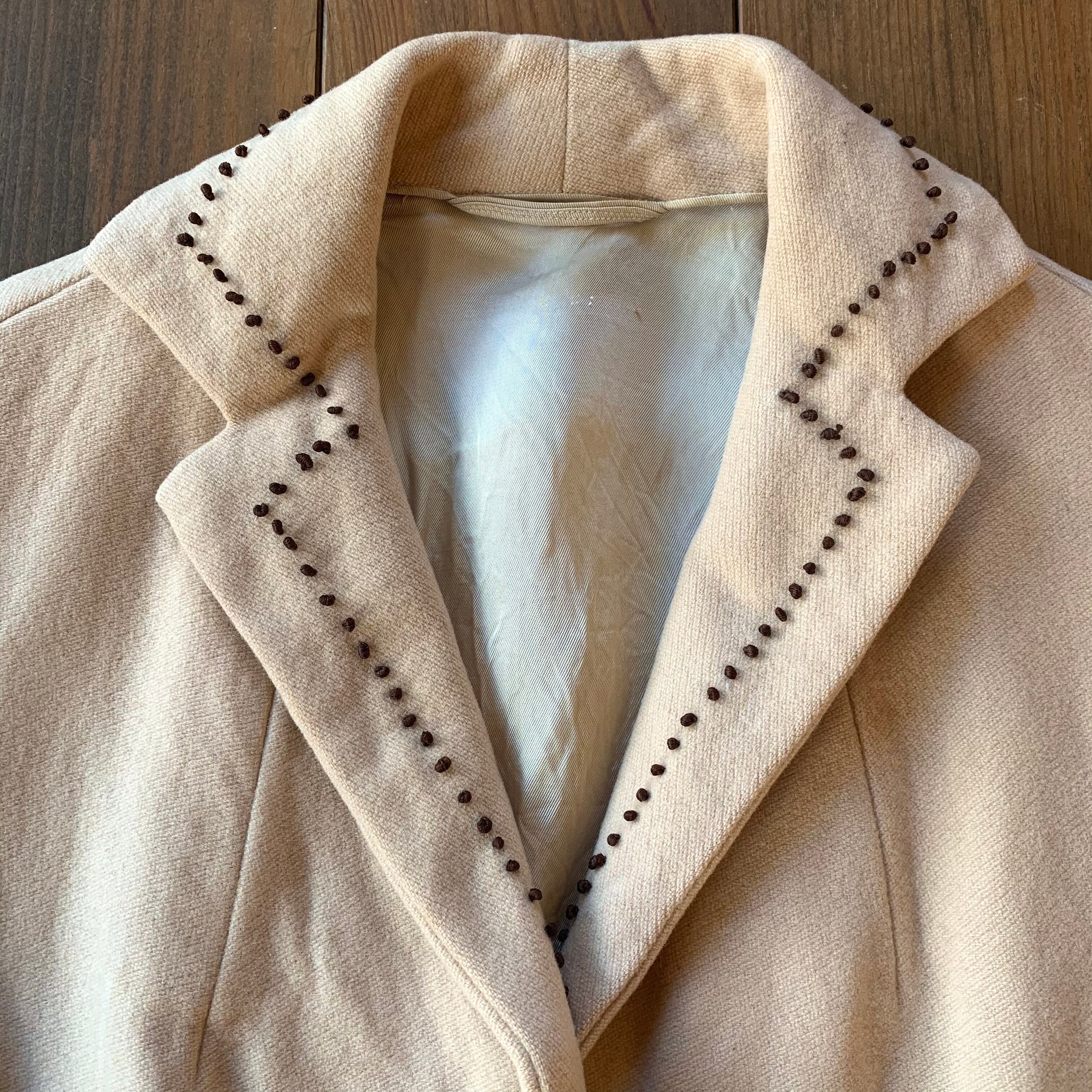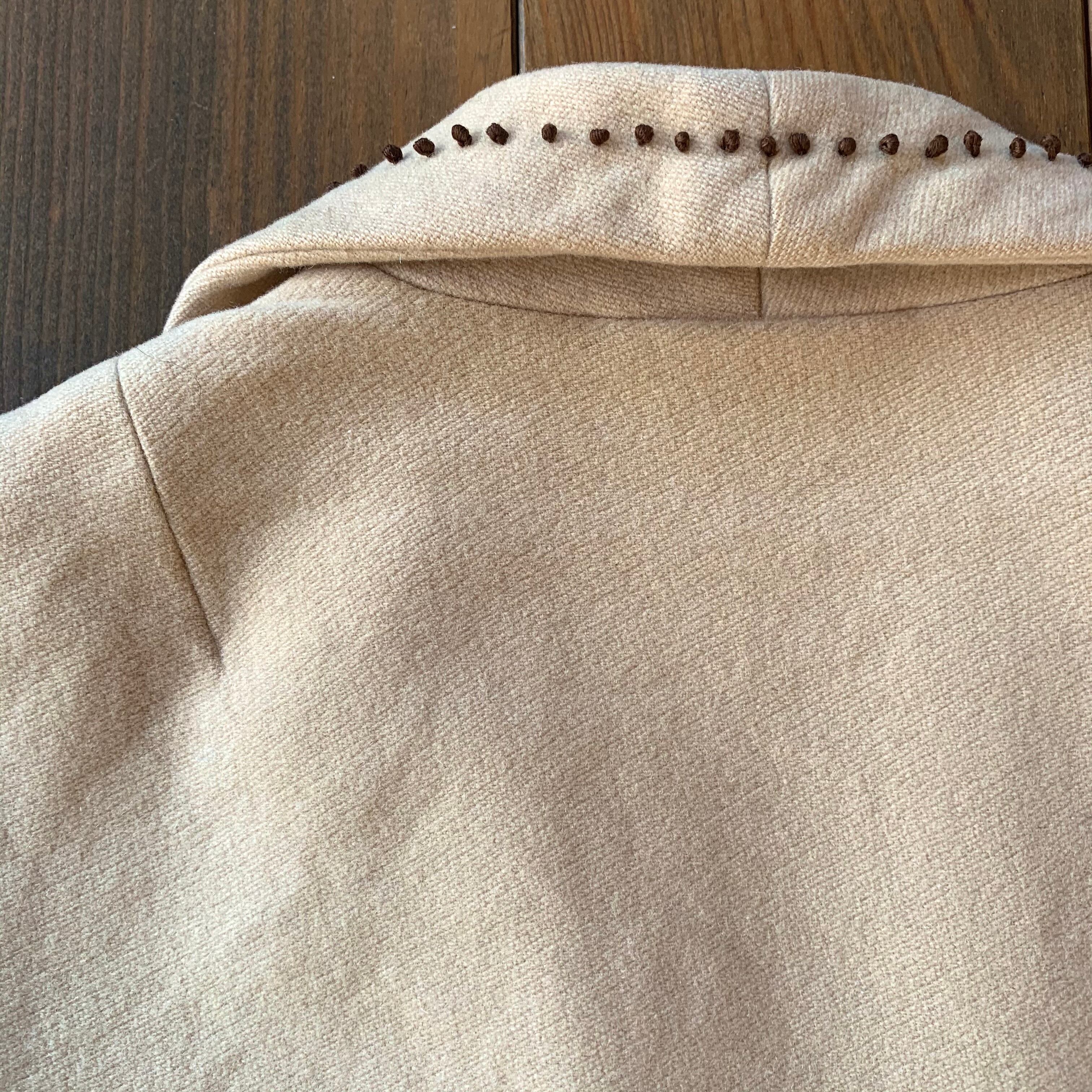 ベージュのウール地に、ポツポツと凹凸あるブラウンの刺繍。