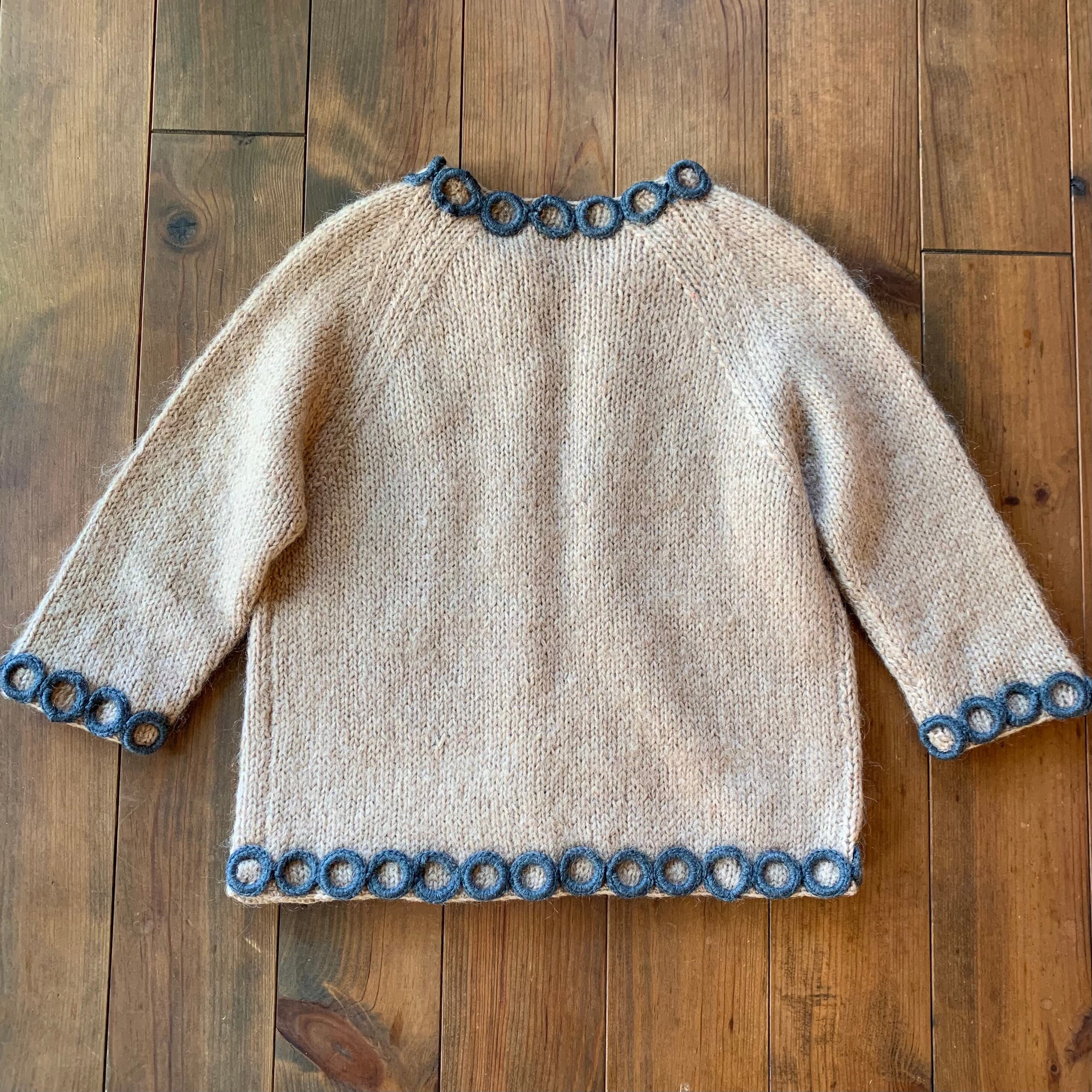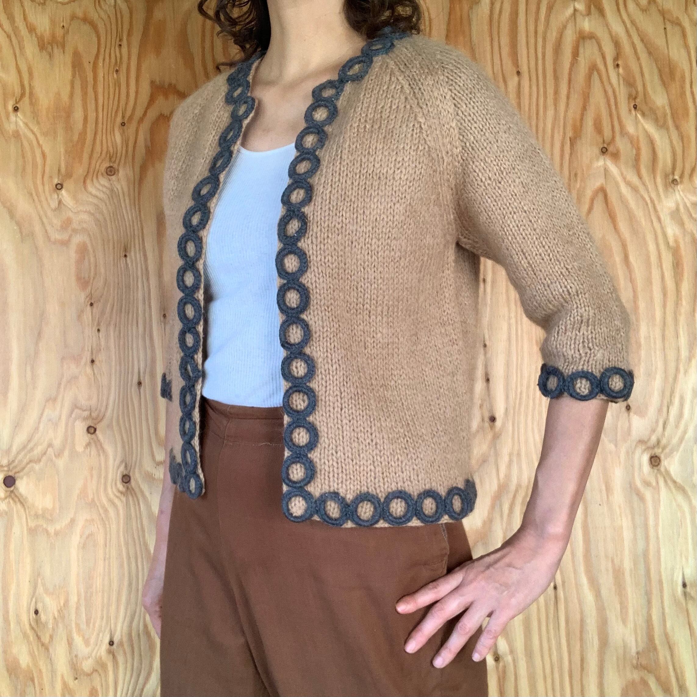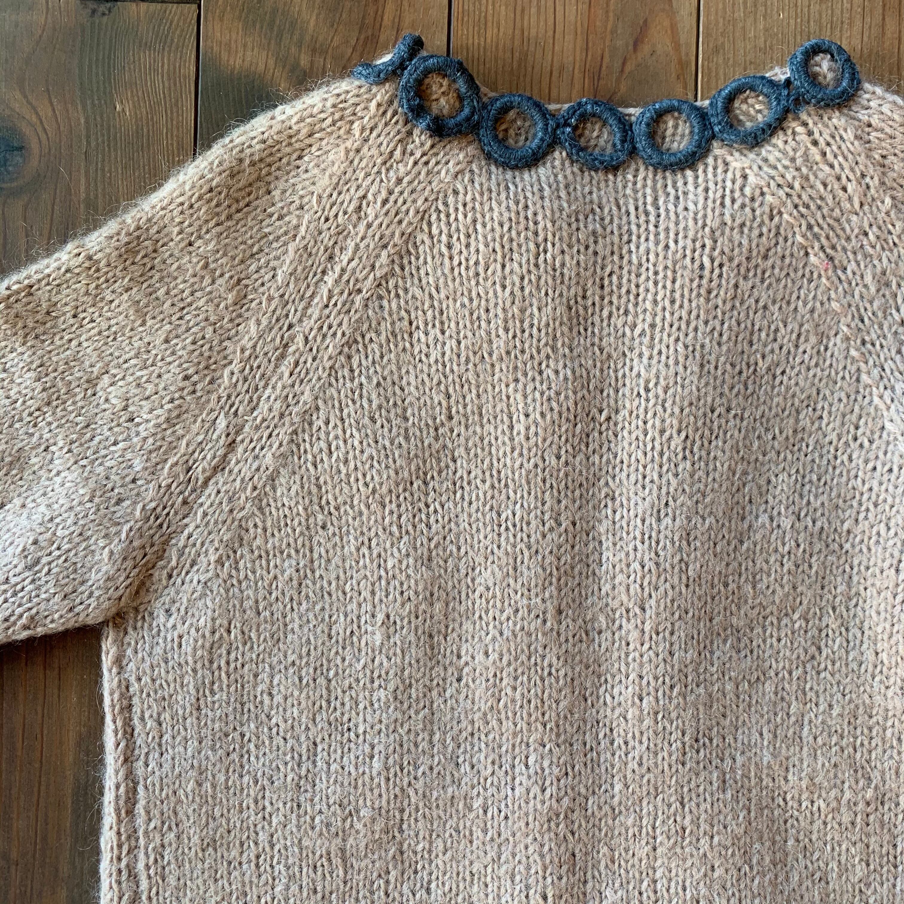 濃いめのベージュ地に、チャコールグレーの輪っかモチーフ。
