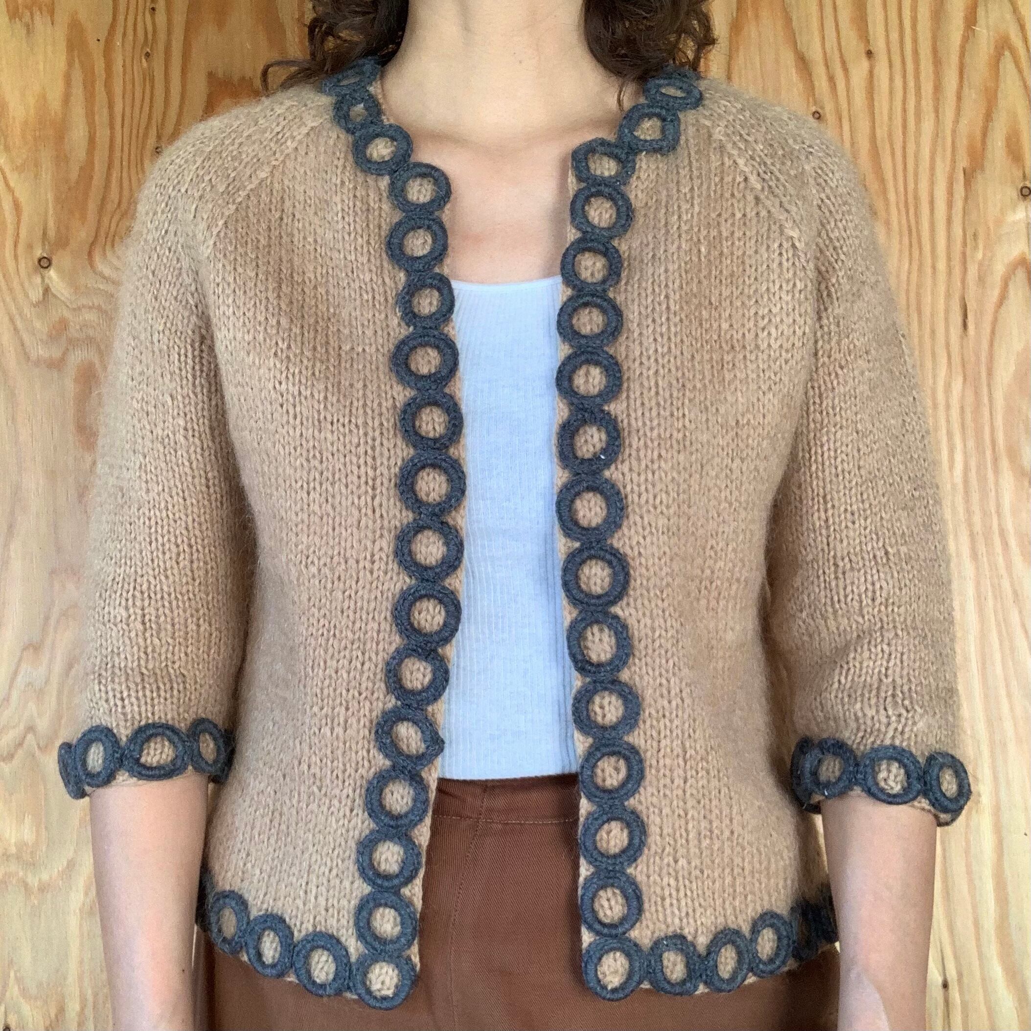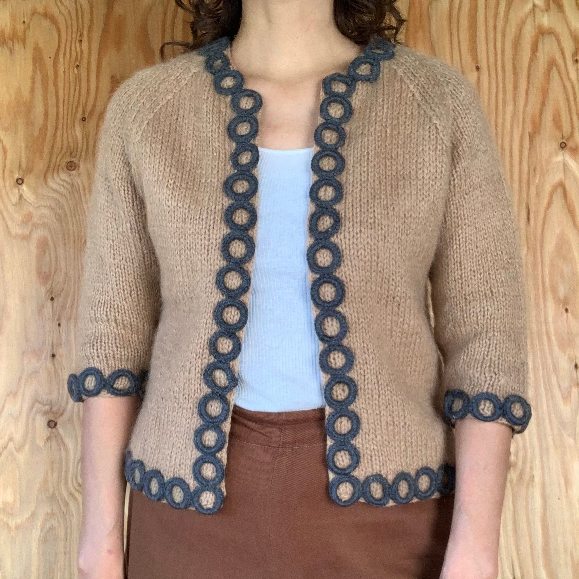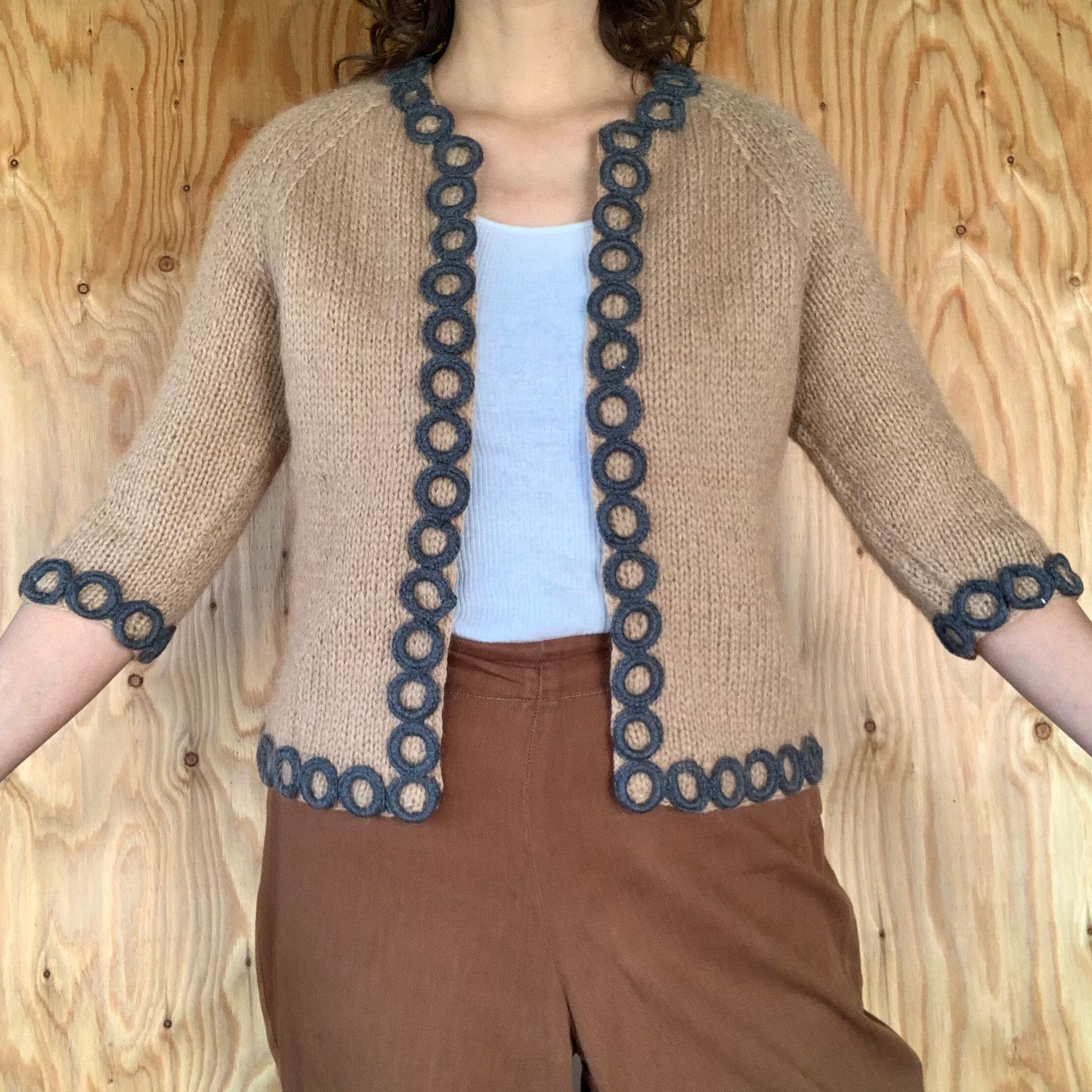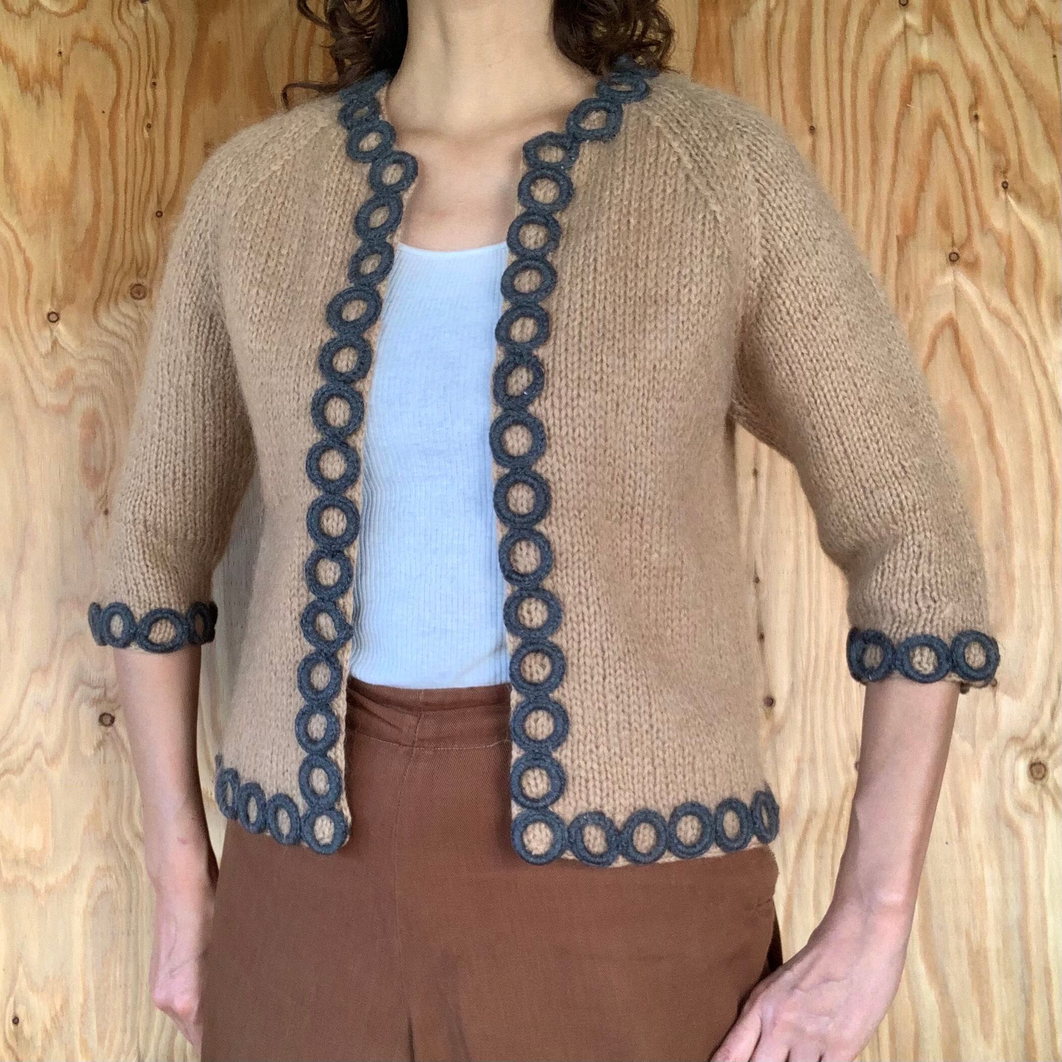 濃いめのベージュ地に、チャコールグレーの輪っかモチーフ。