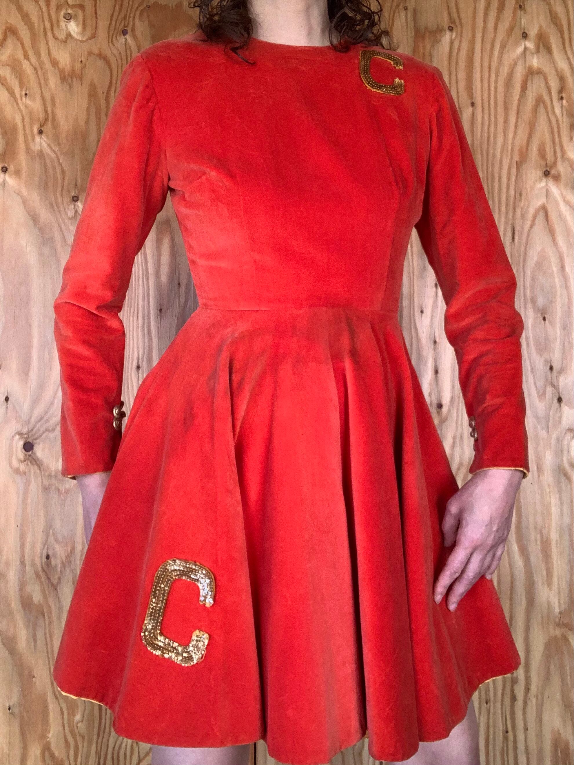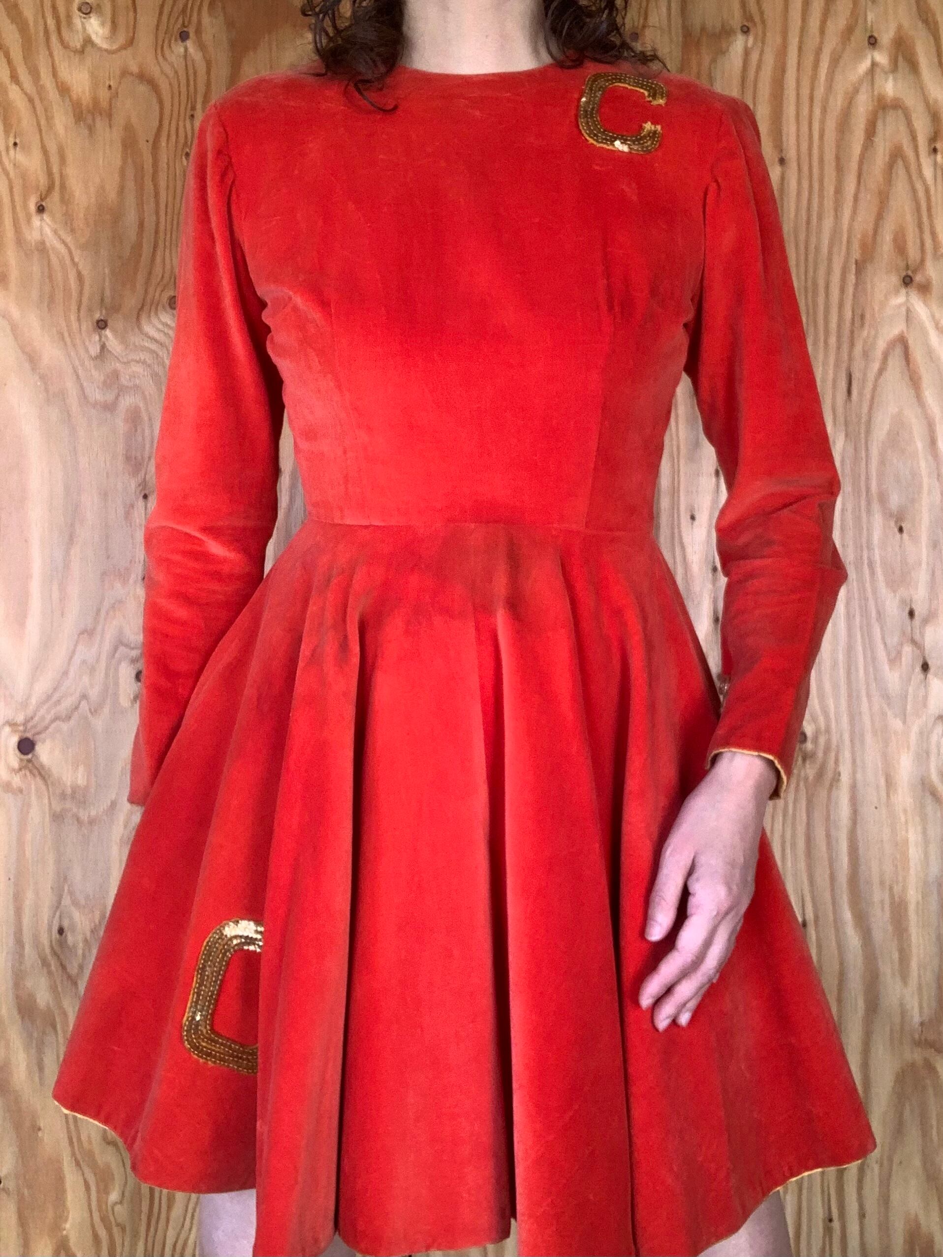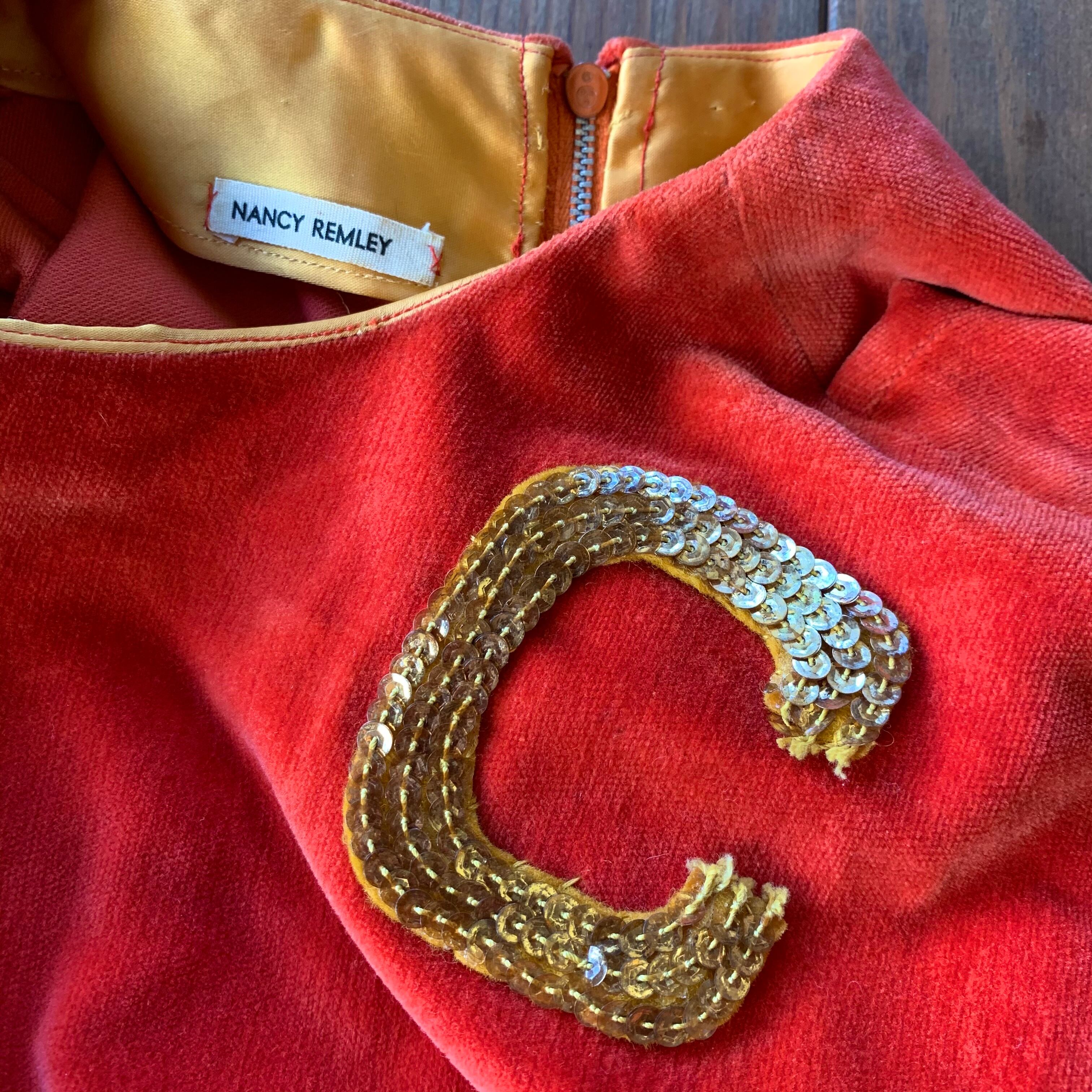 ゴールドのスパンコールで、Cと象られたワッペン。