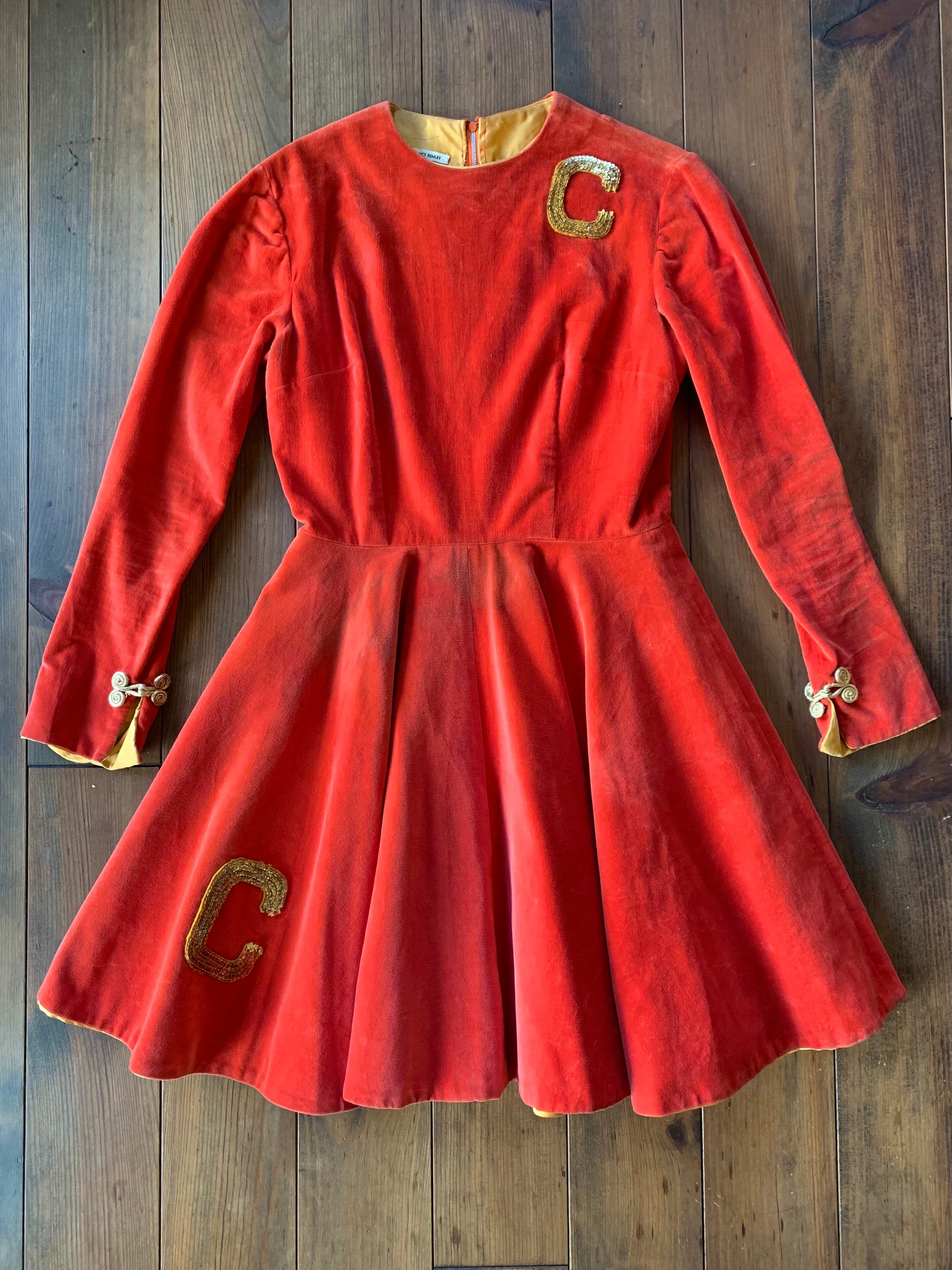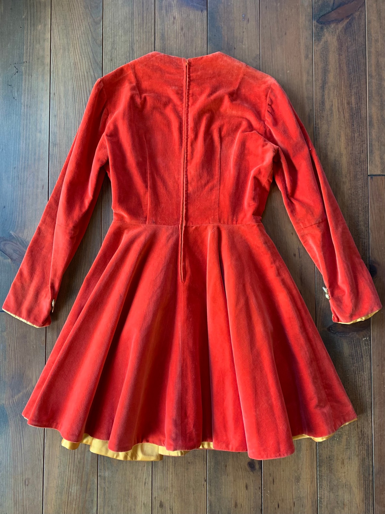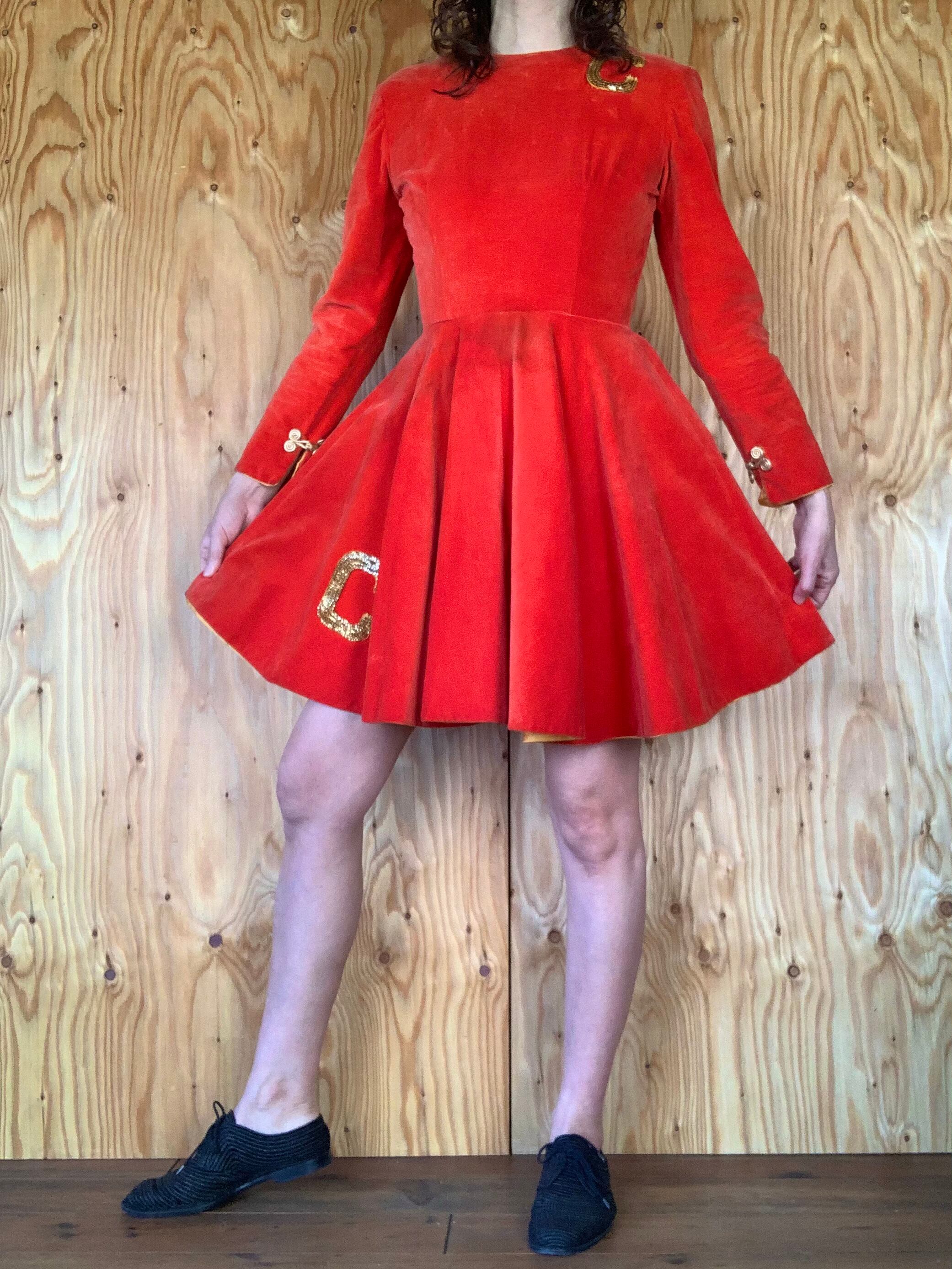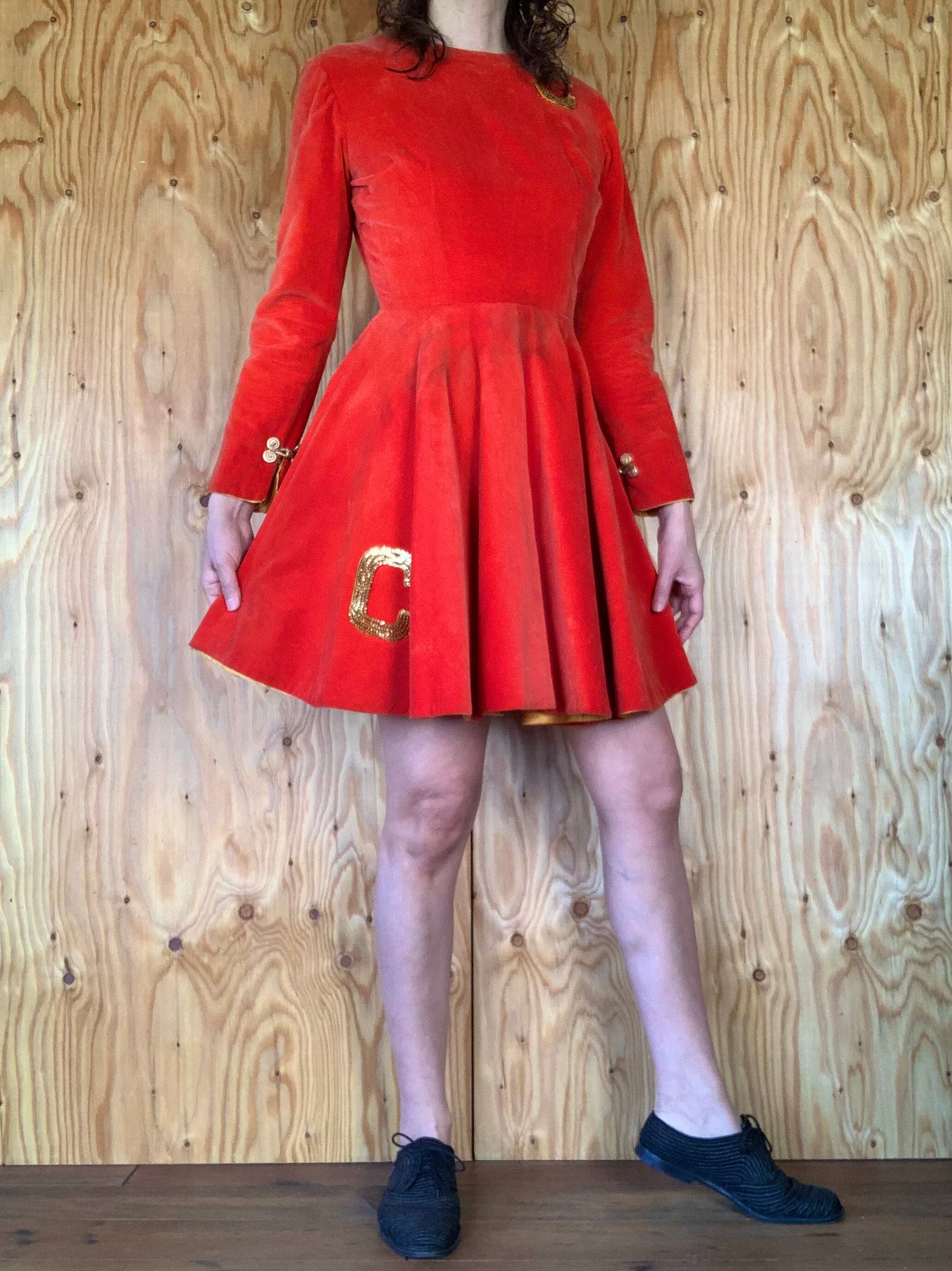 袖口やスカート裾の裏から、ゴールドのサテン生地がチラッと見えます。