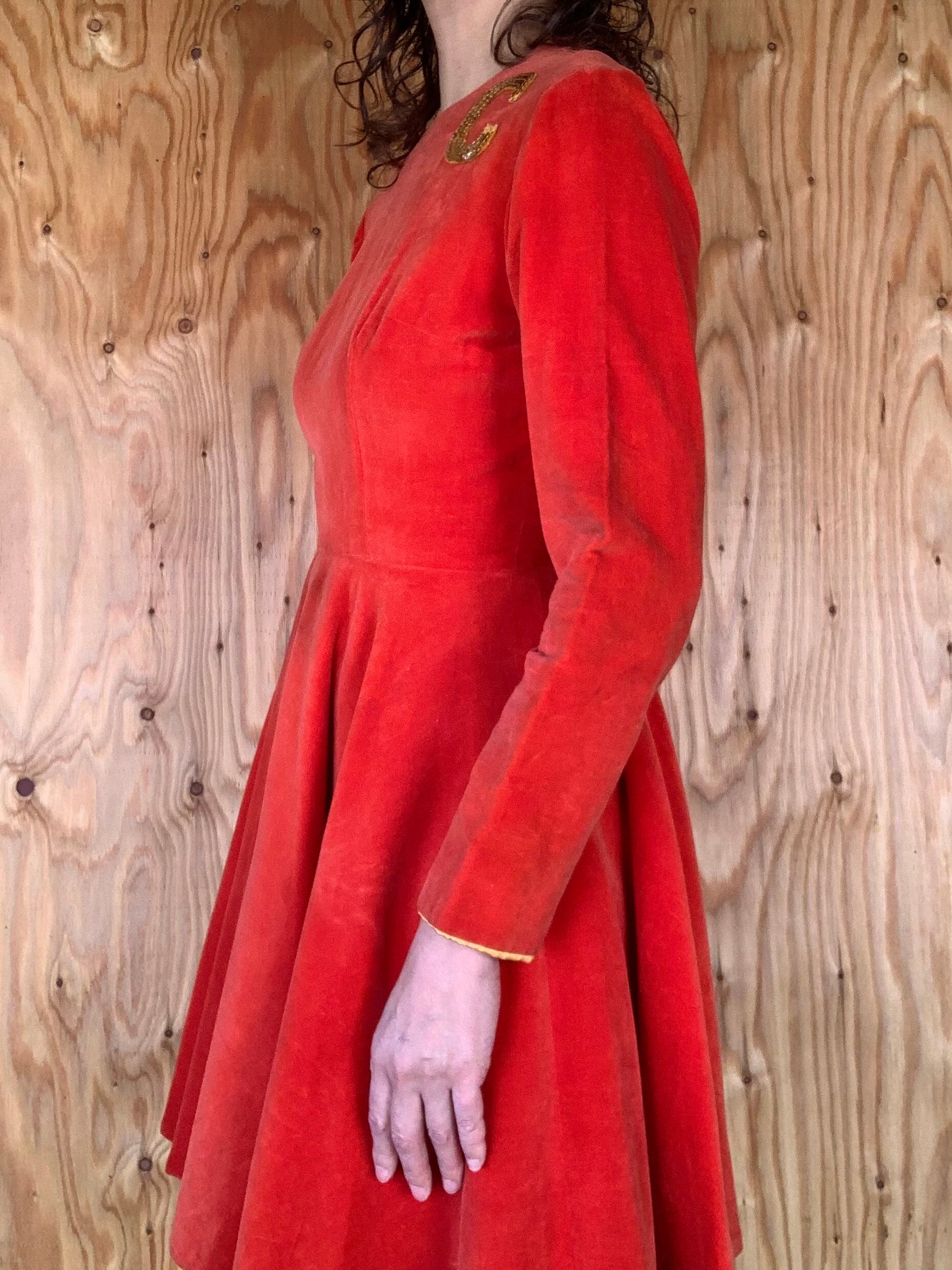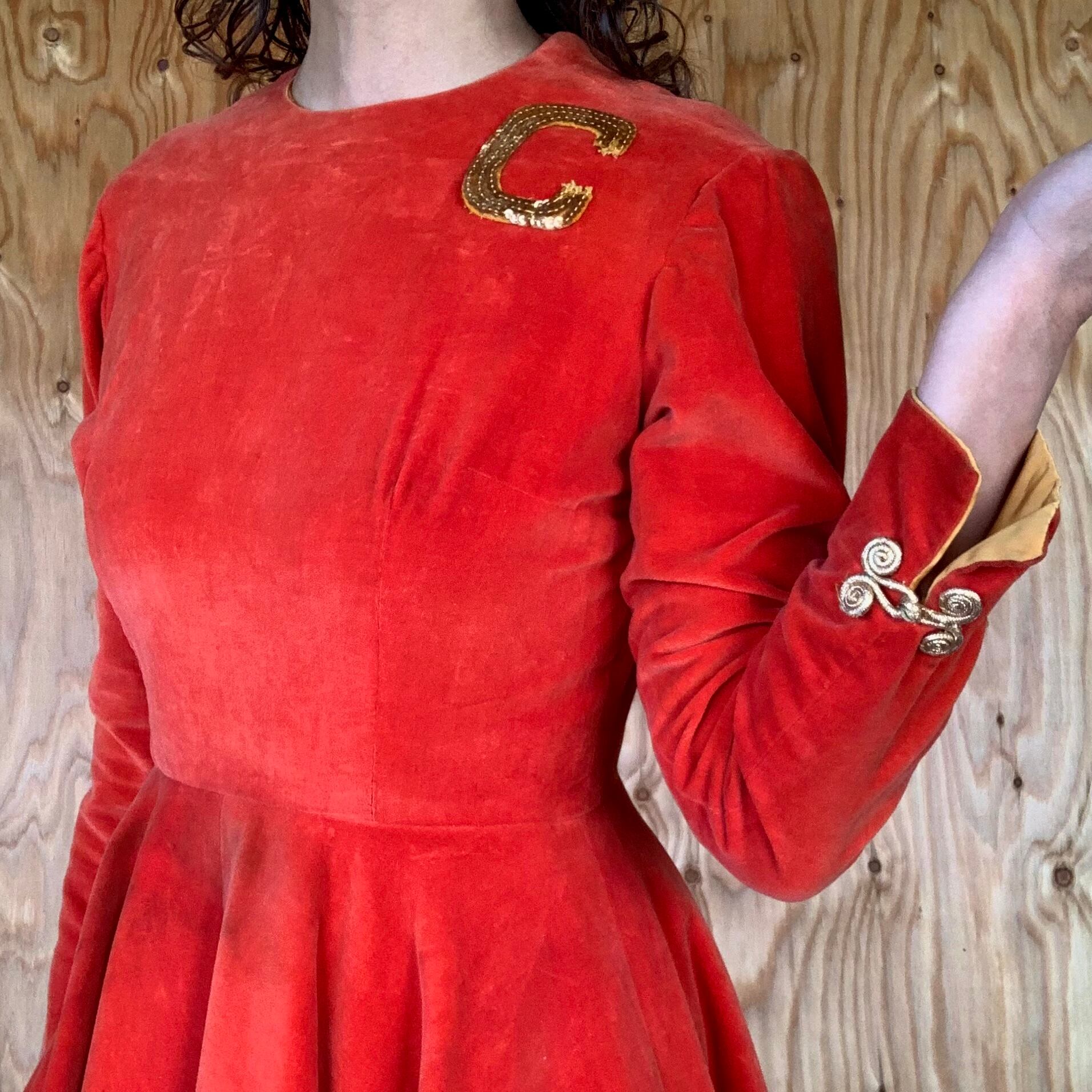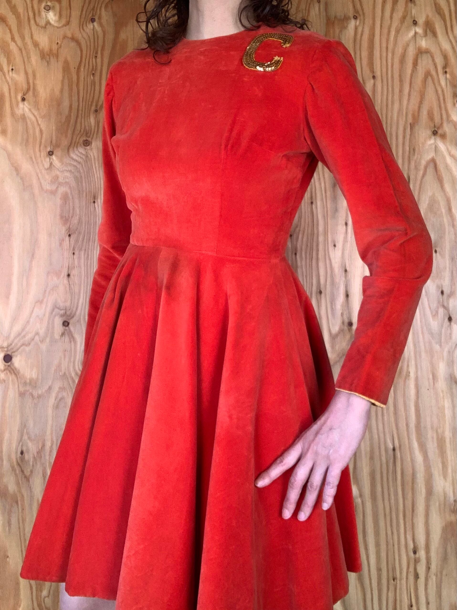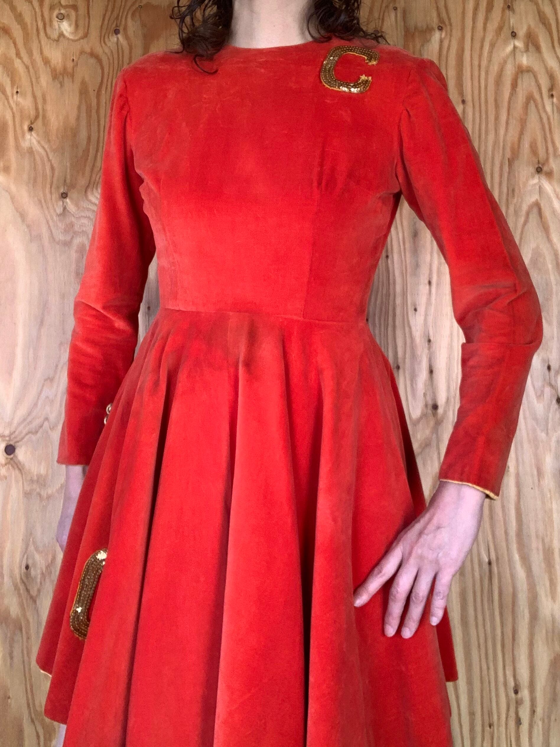 袖口やスカート裾の裏から、ゴールドのサテン生地がチラッと見えます。
