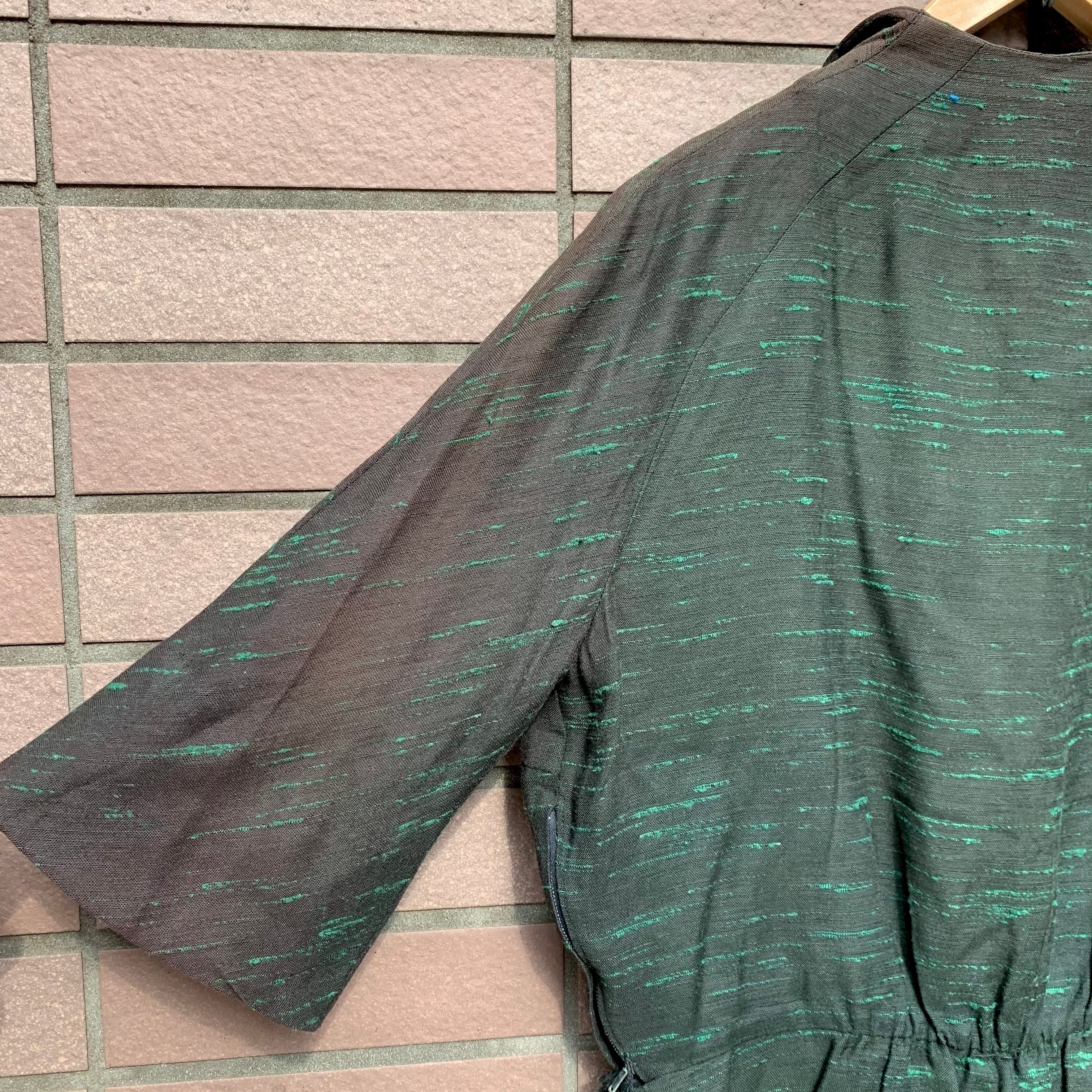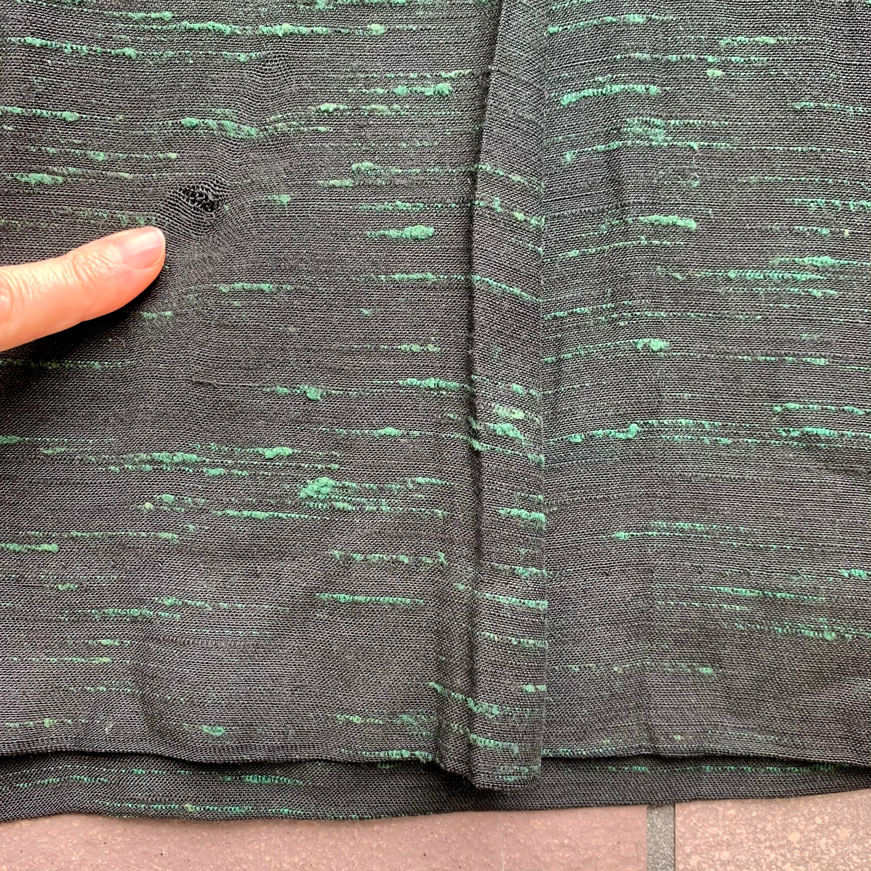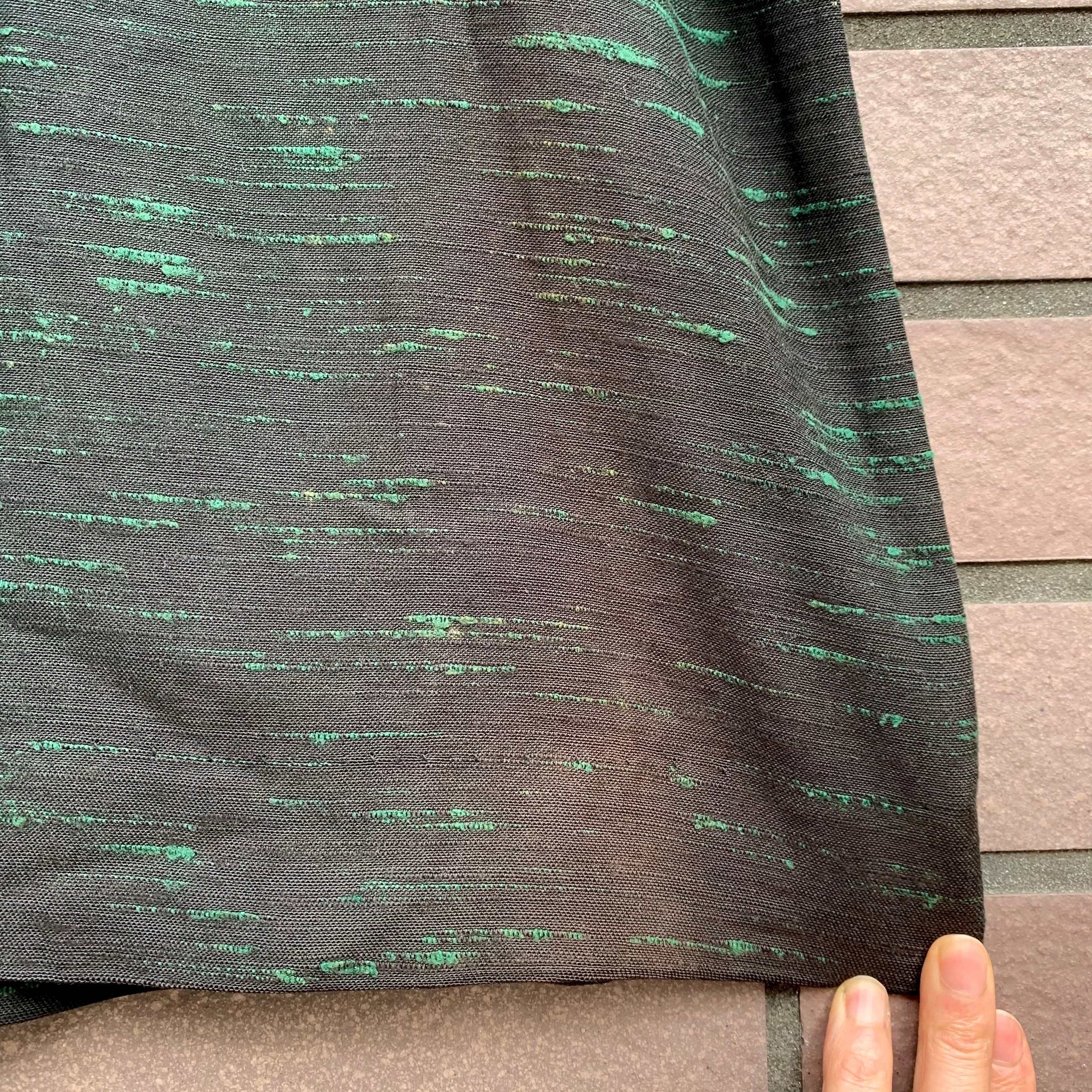 テロっとした肌触りで、黒地にグリーンのカスリの様な織り柄。