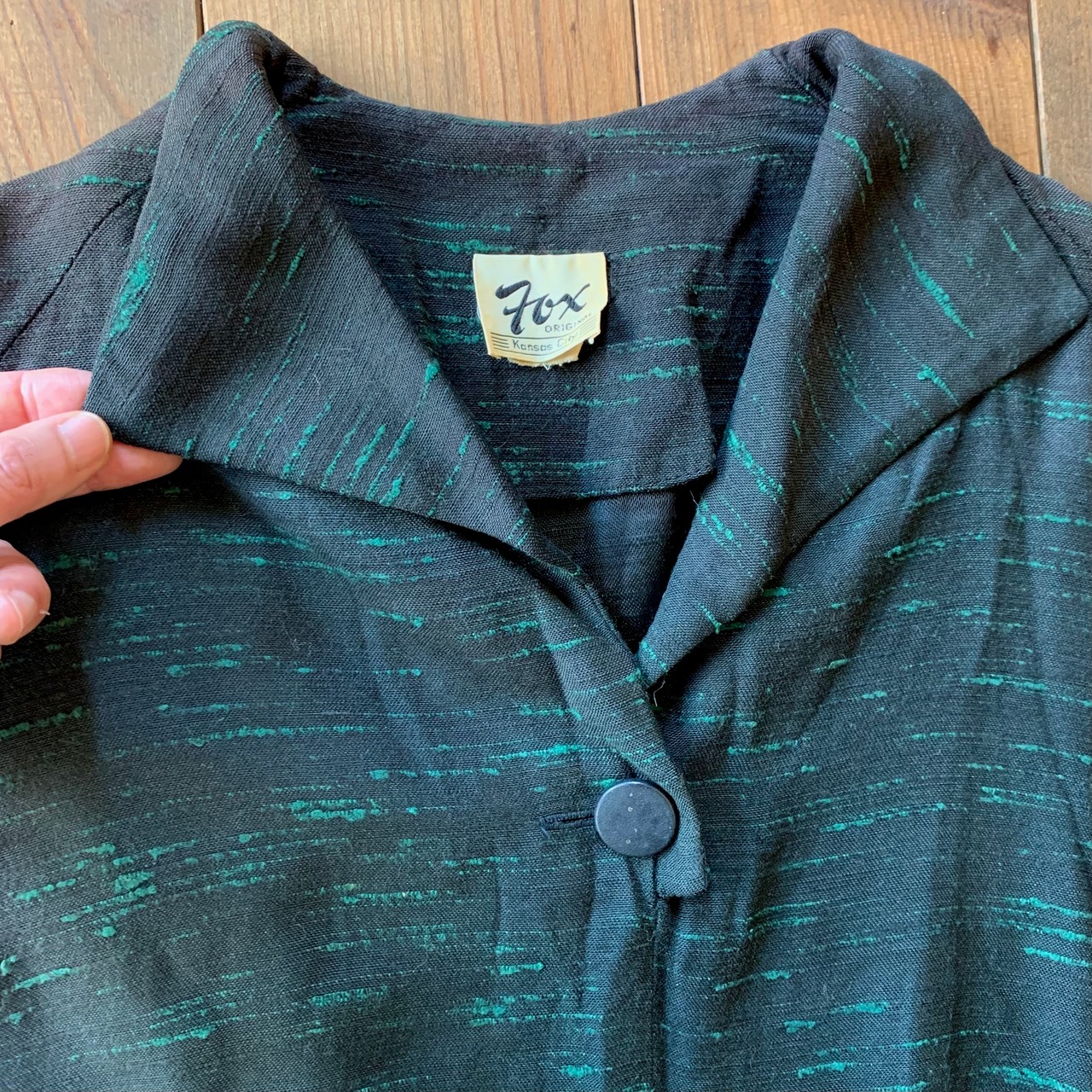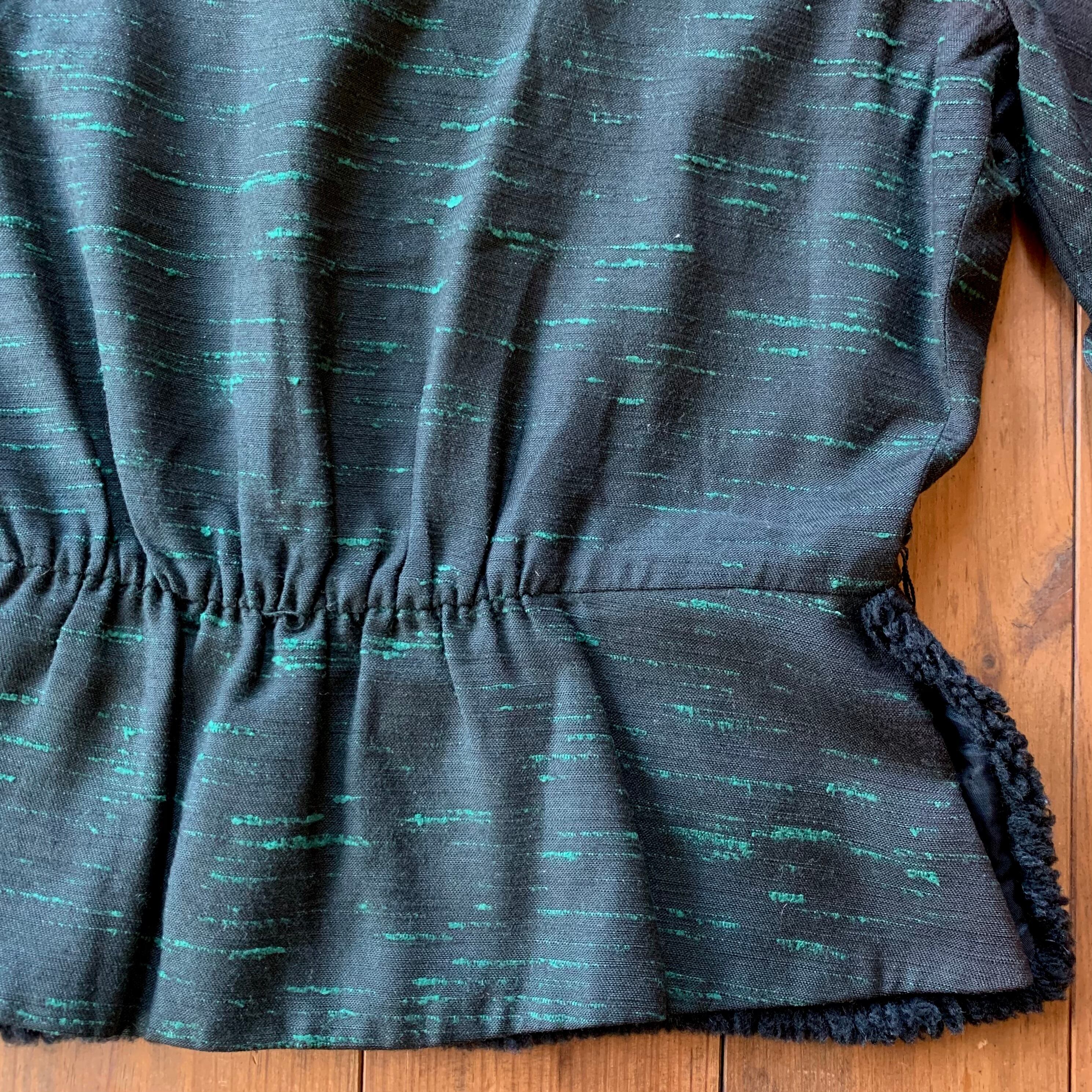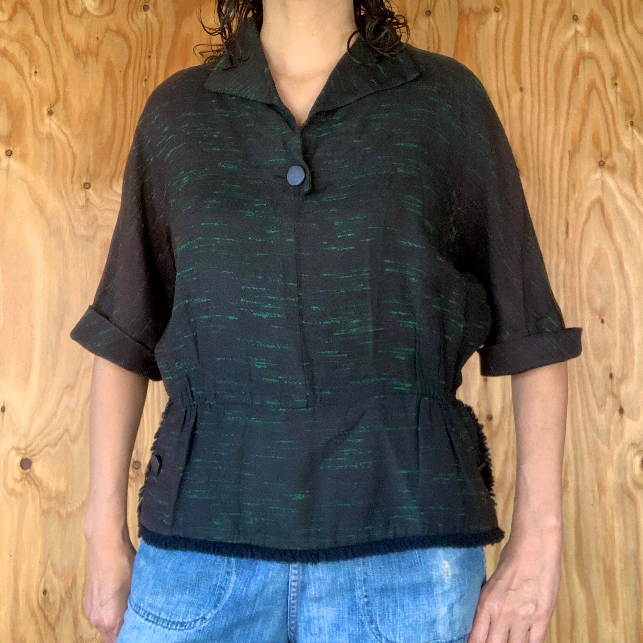 テロっとした肌触りで、黒地にグリーンのカスリの様な織り柄。