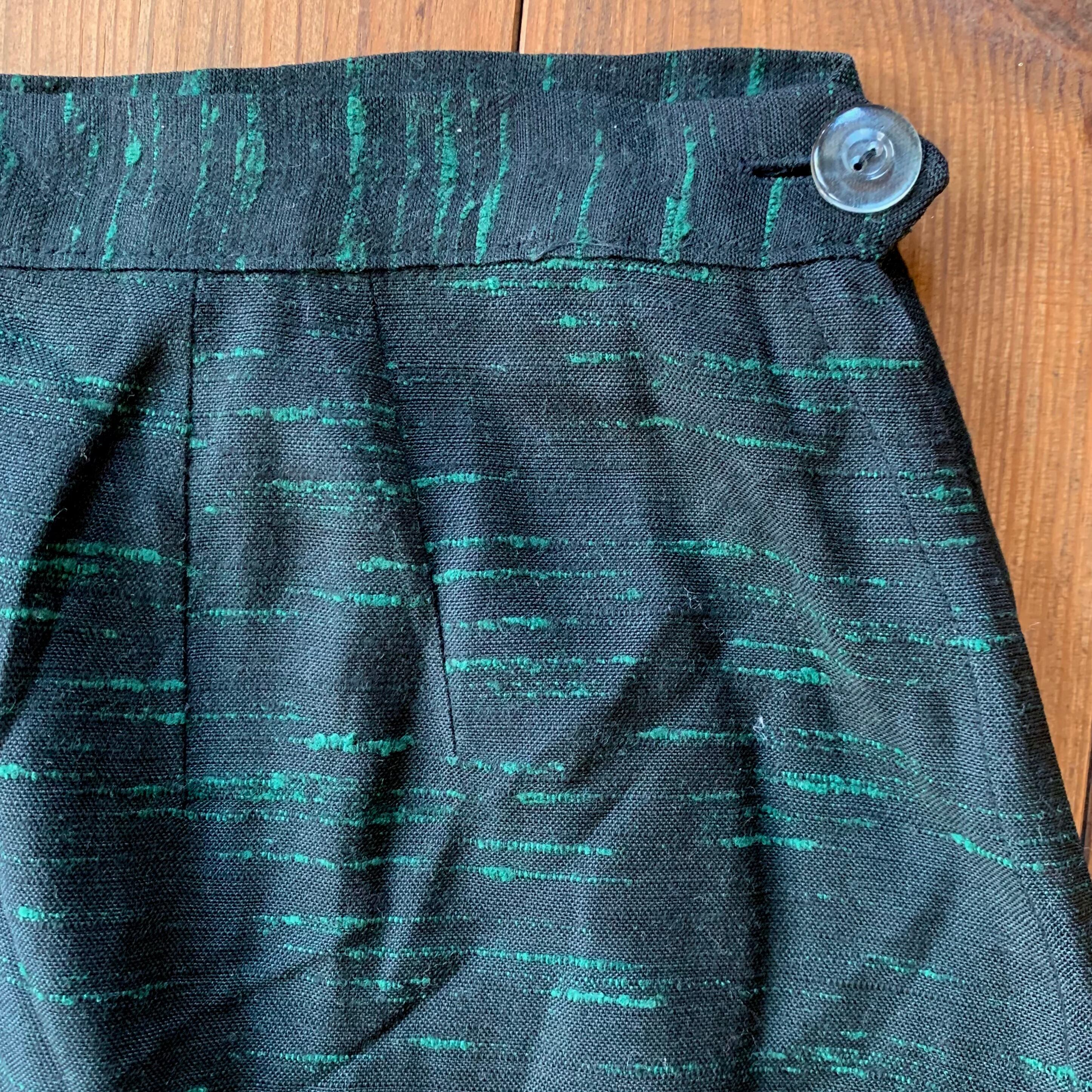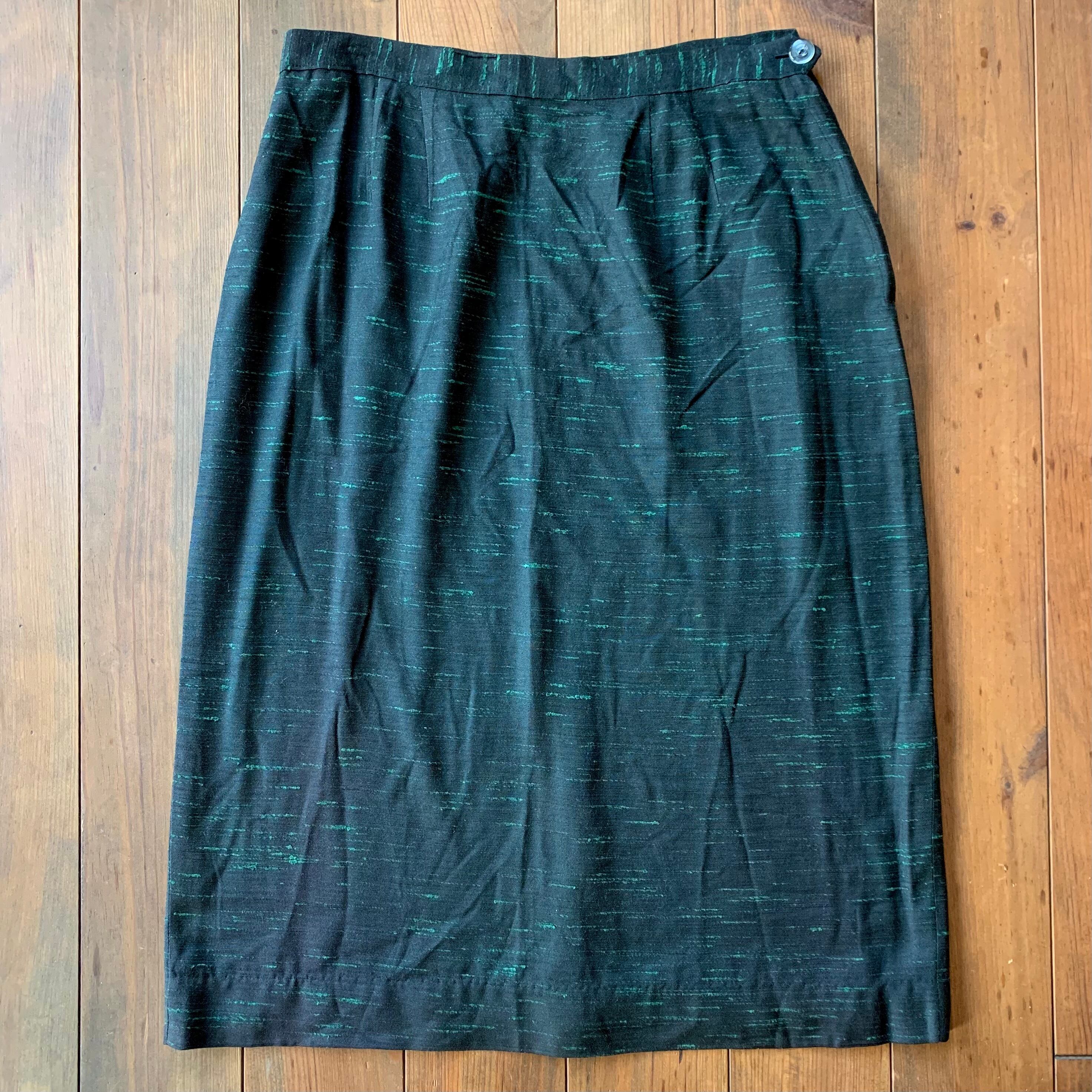 ペンシル型のスカートは、左脇にファスナーとボタン。