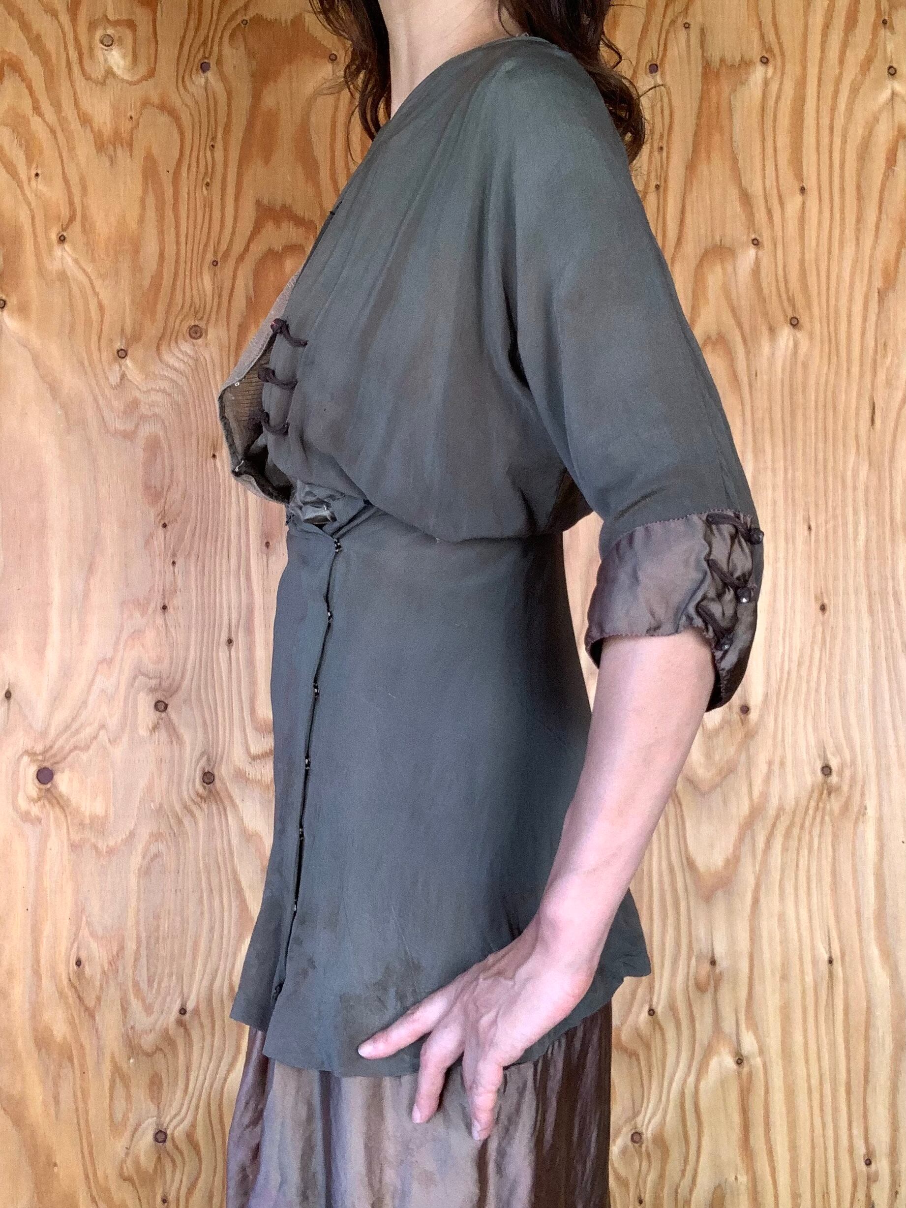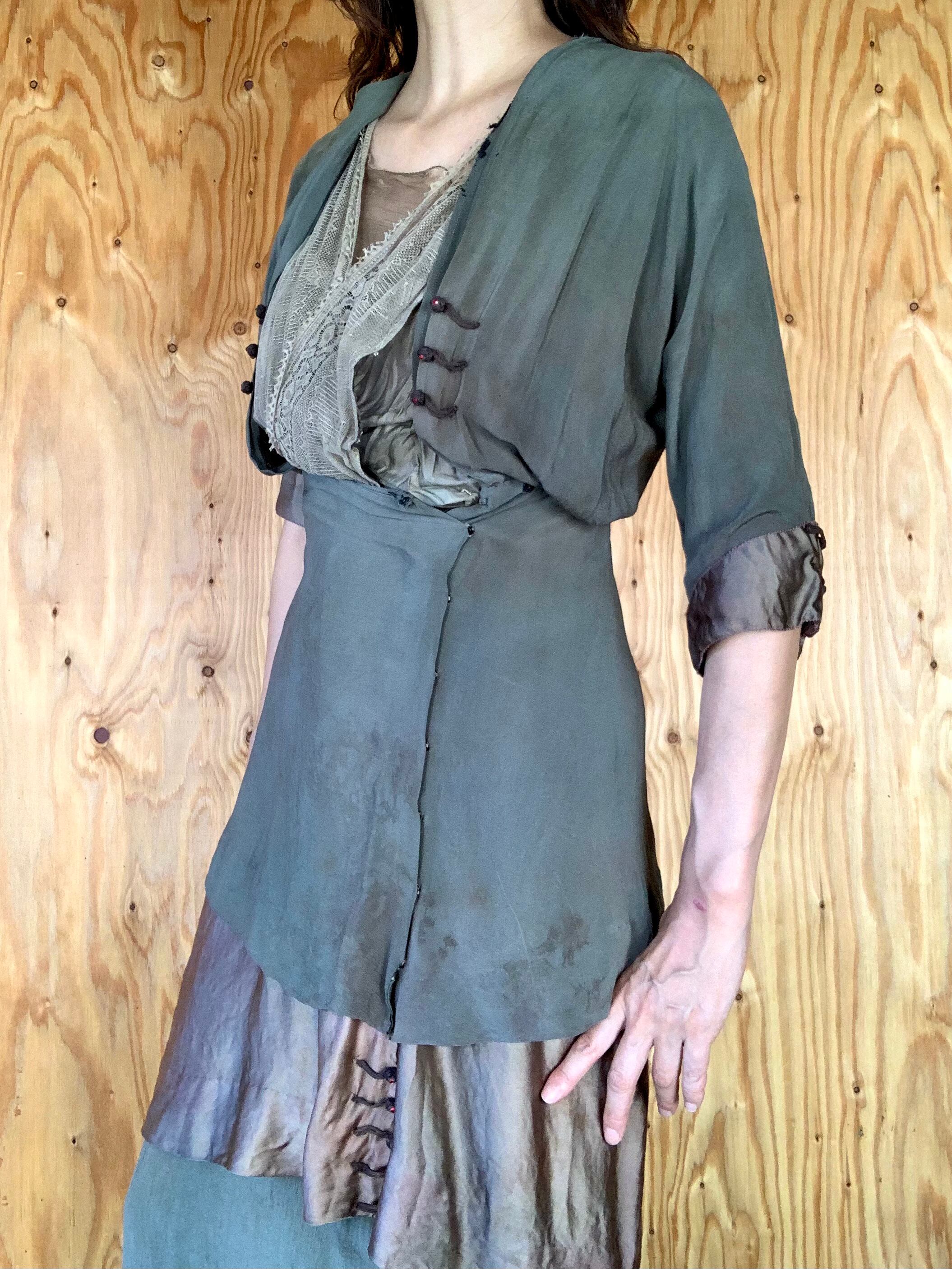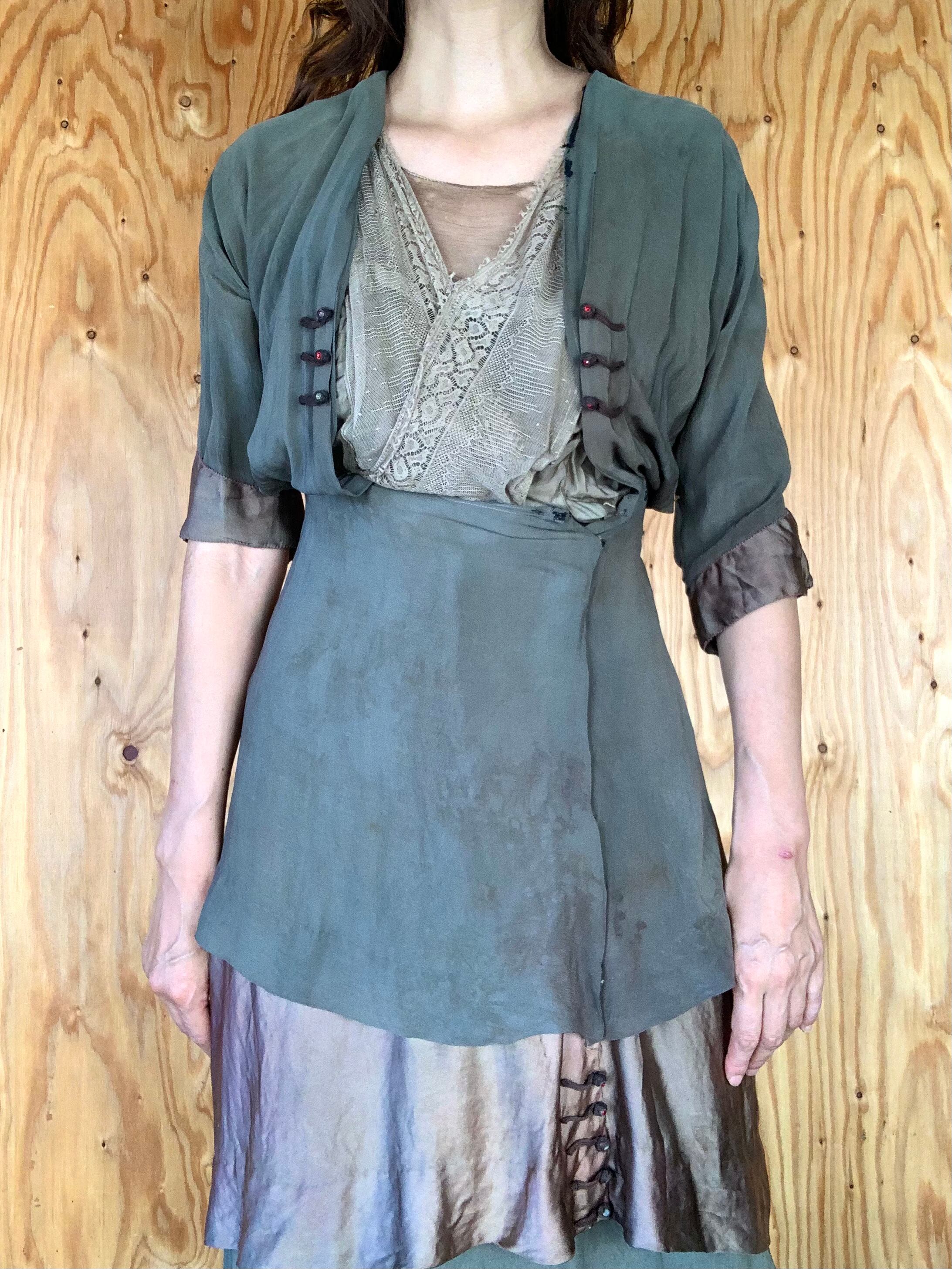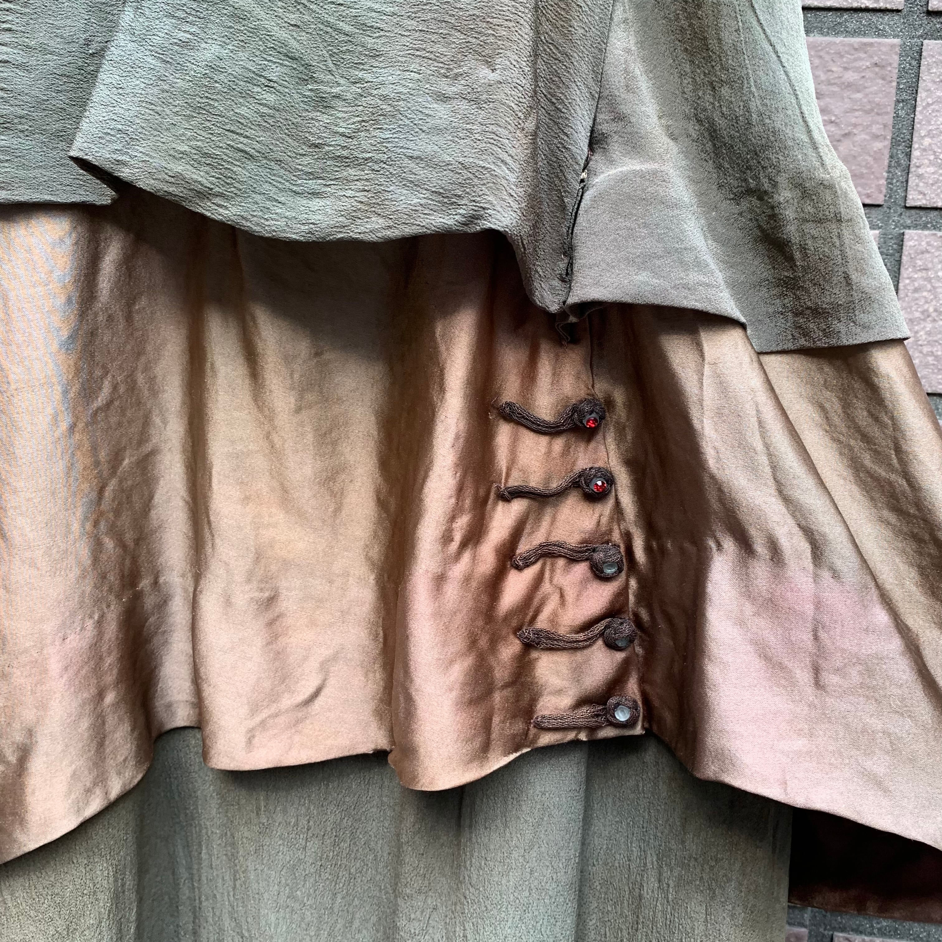 胸元のレースや裏地、スカートの真ん中のサテン生地はブラウンがかった色味です。
