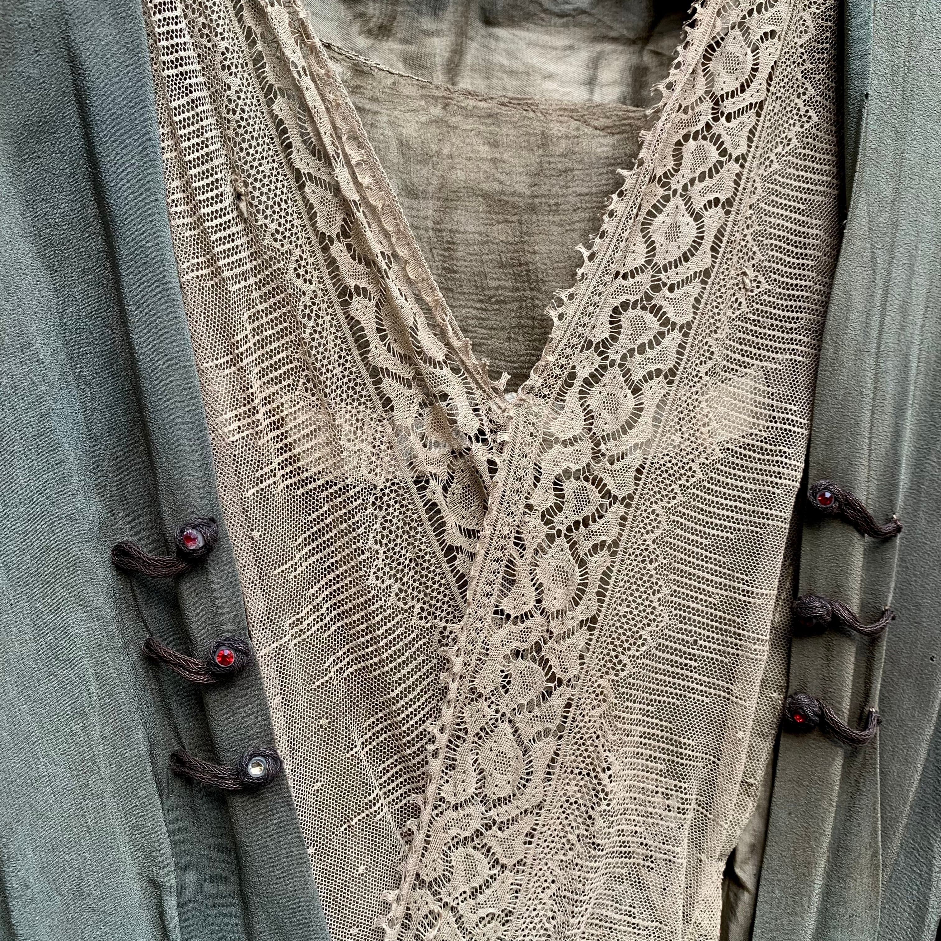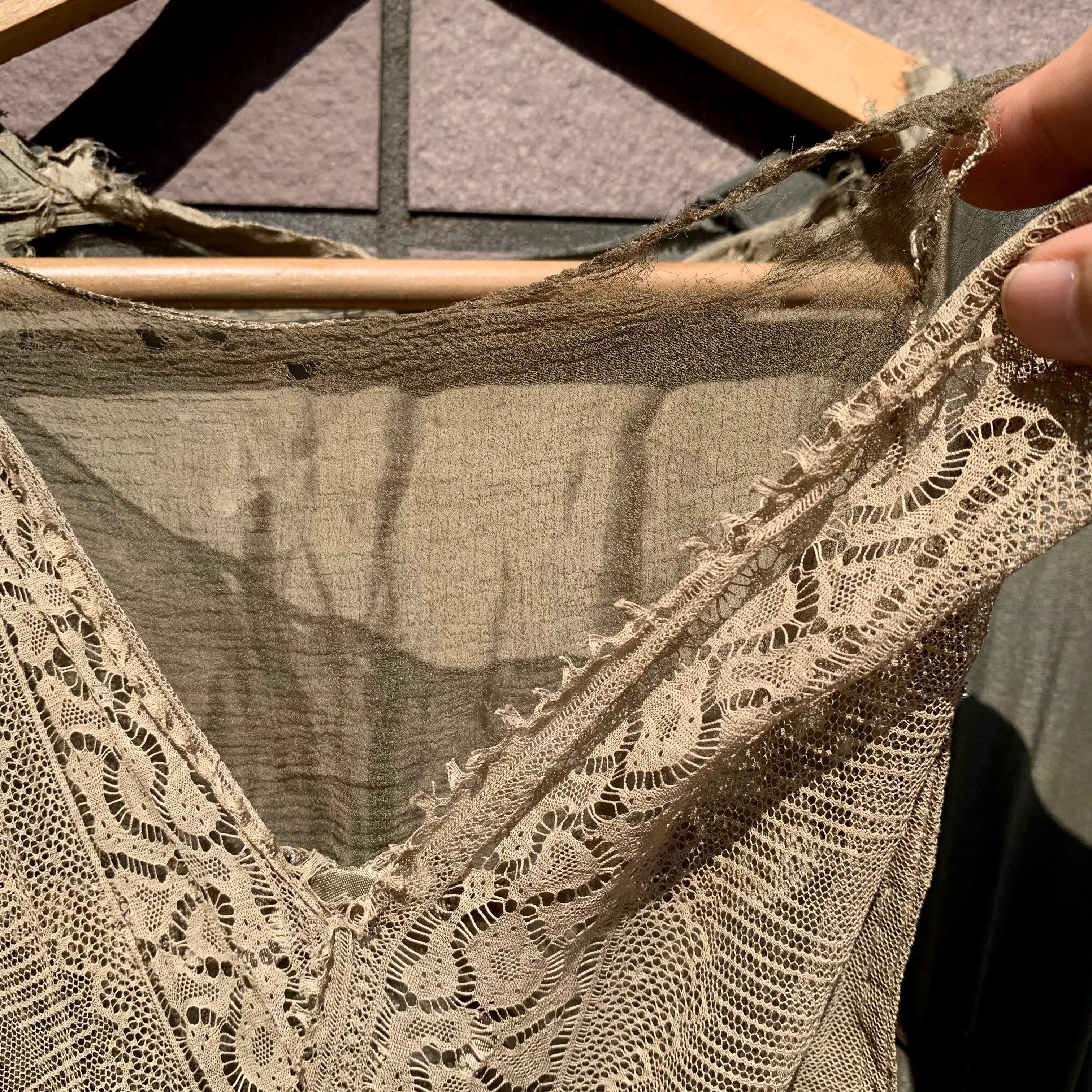 胸元のレースやシースルー生地、サテンの裏地や内側のコルセット部分、穴や破れが沢山あります。