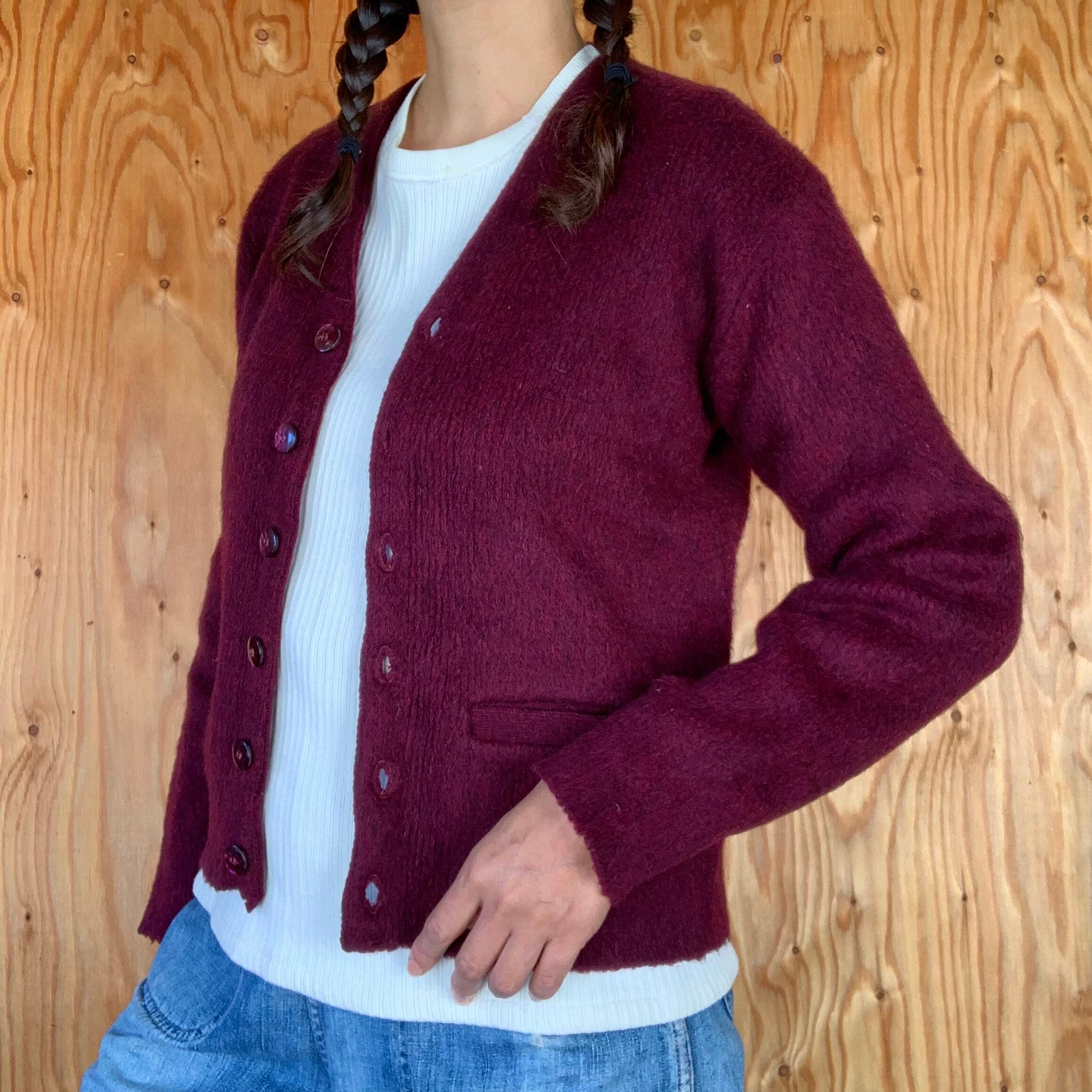 60s mohair cardigan red