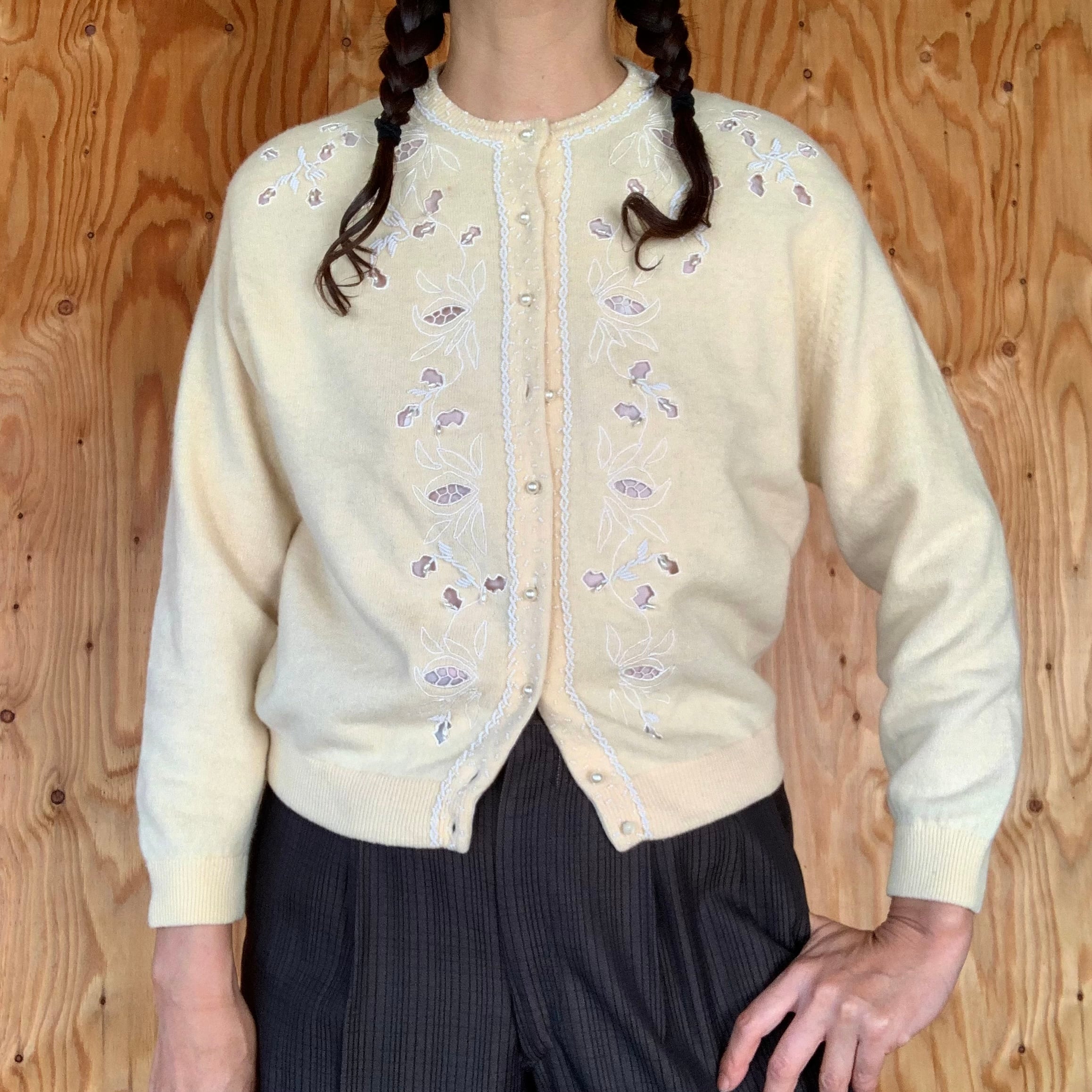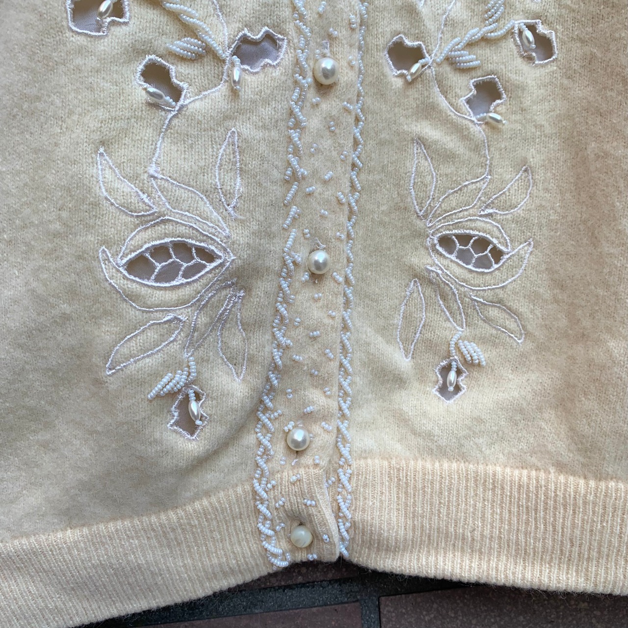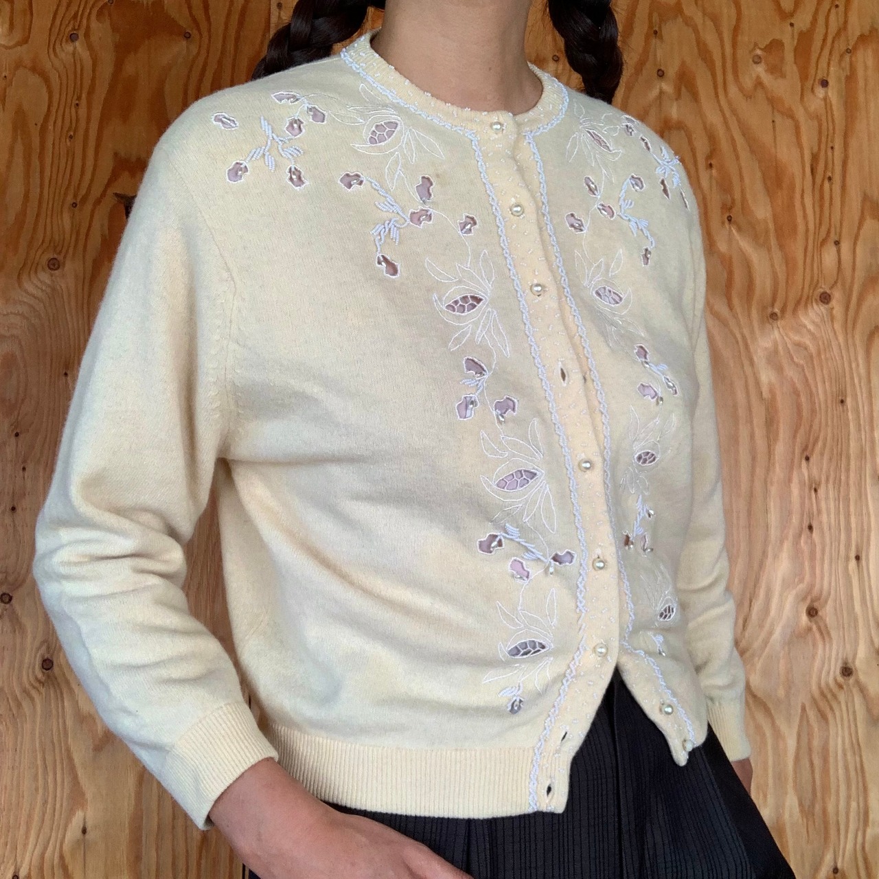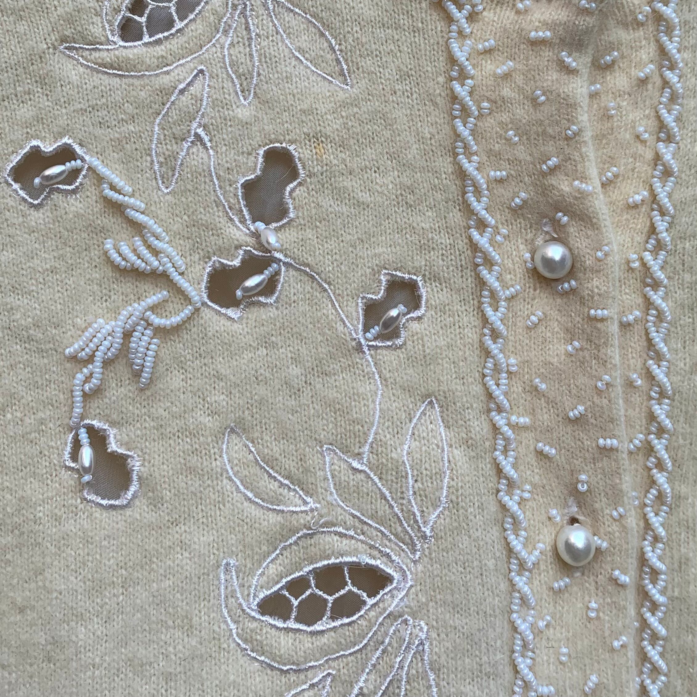 くり抜かれた透かしの刺繍に、パールや白いビーズ。