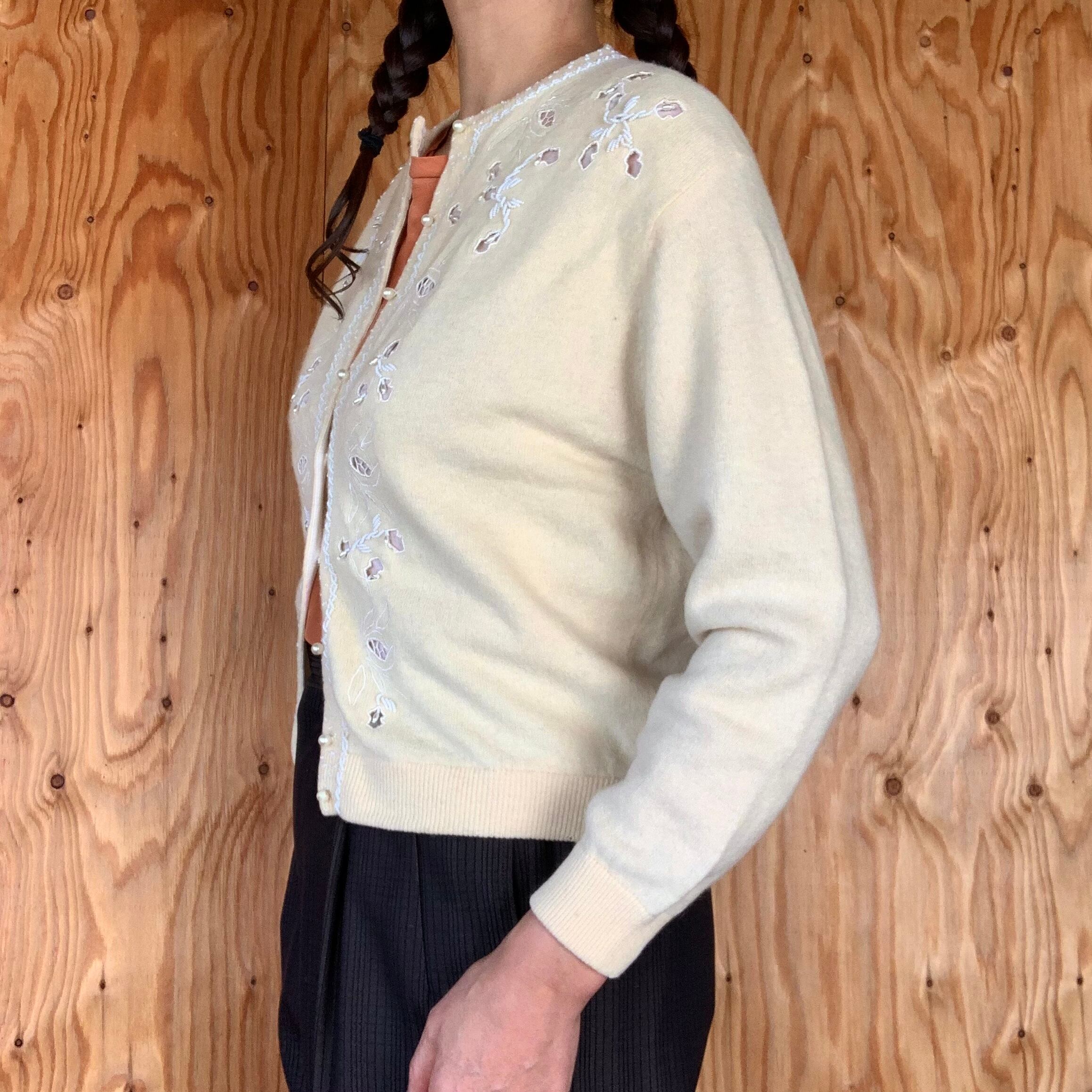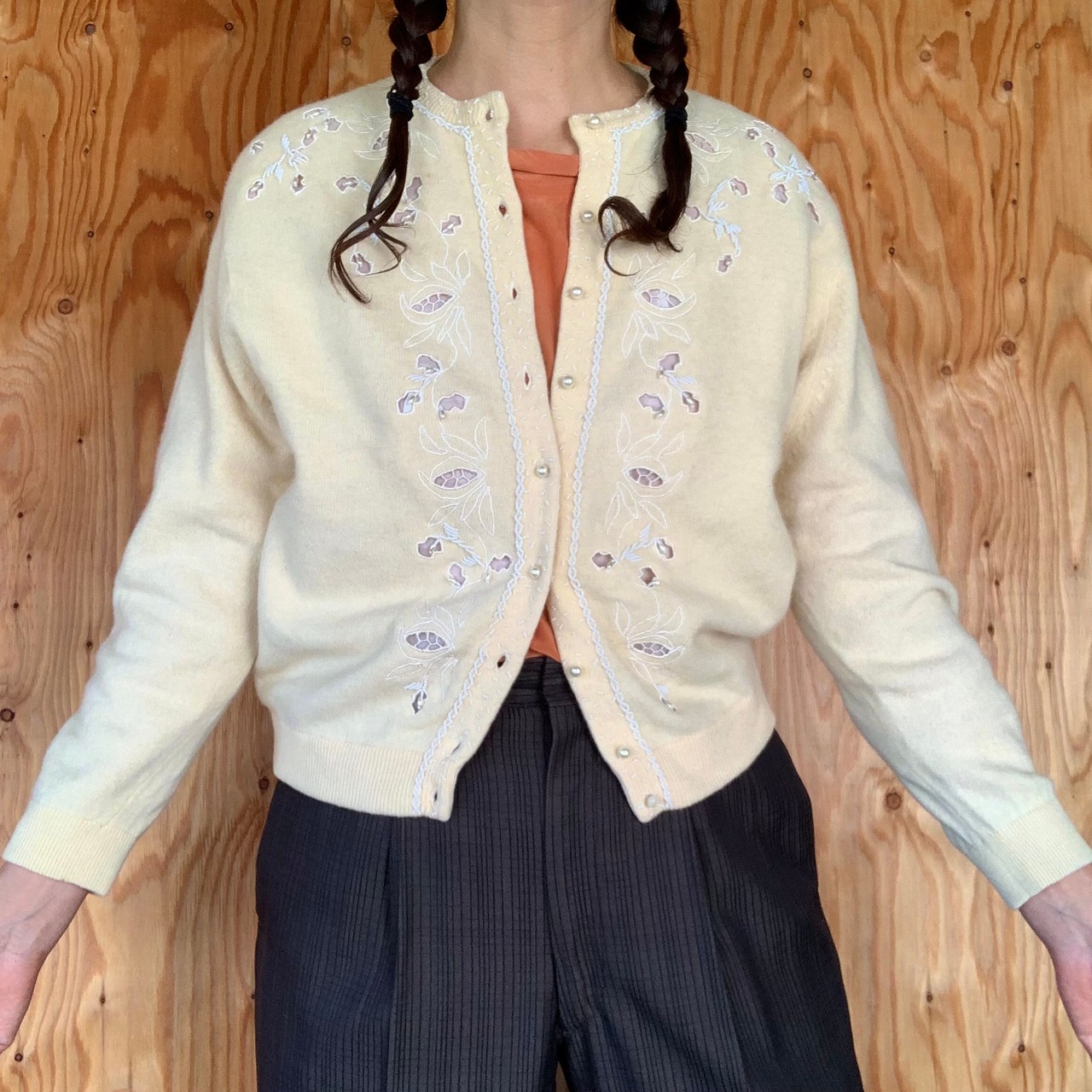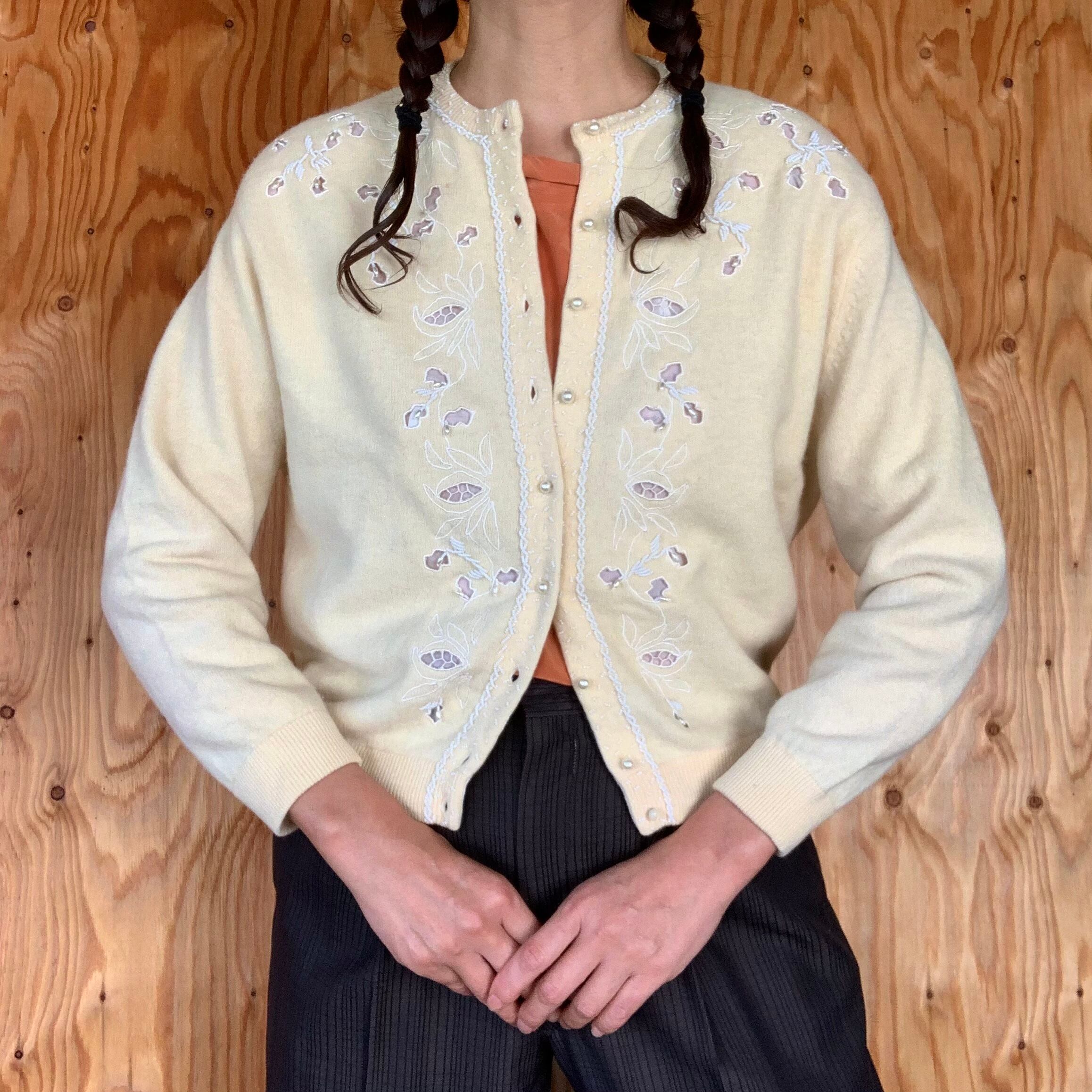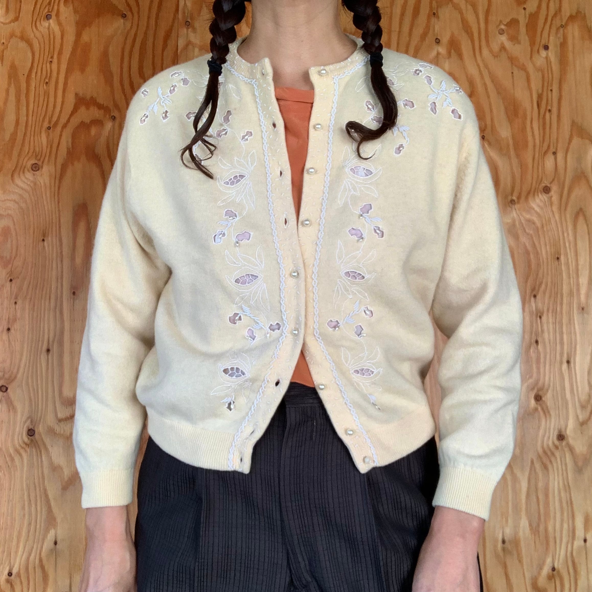 くり抜かれた透かしの刺繍に、パールや白いビーズ。