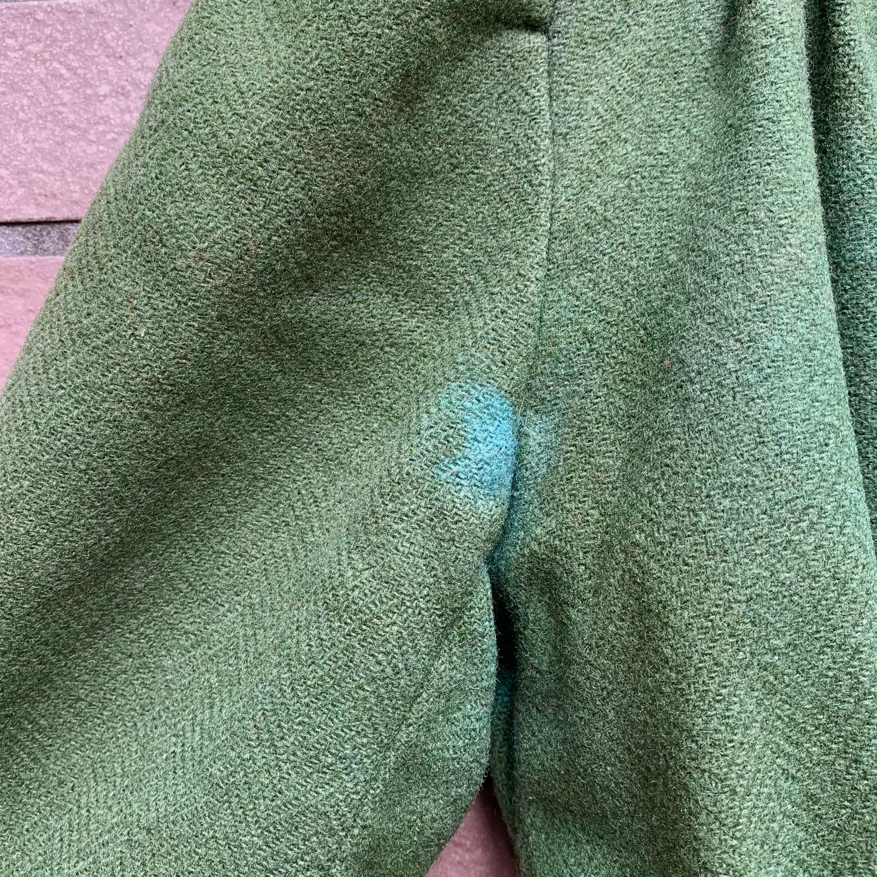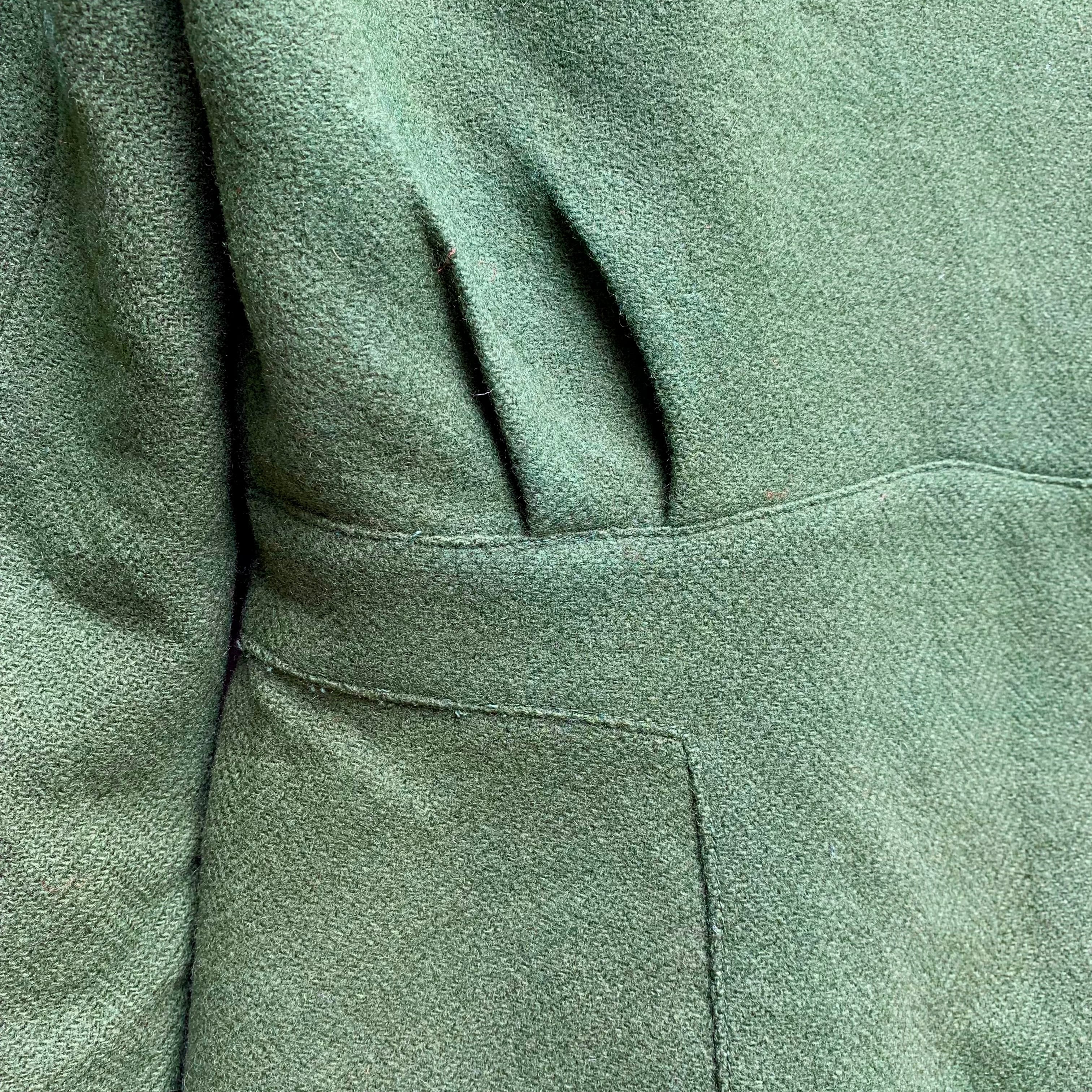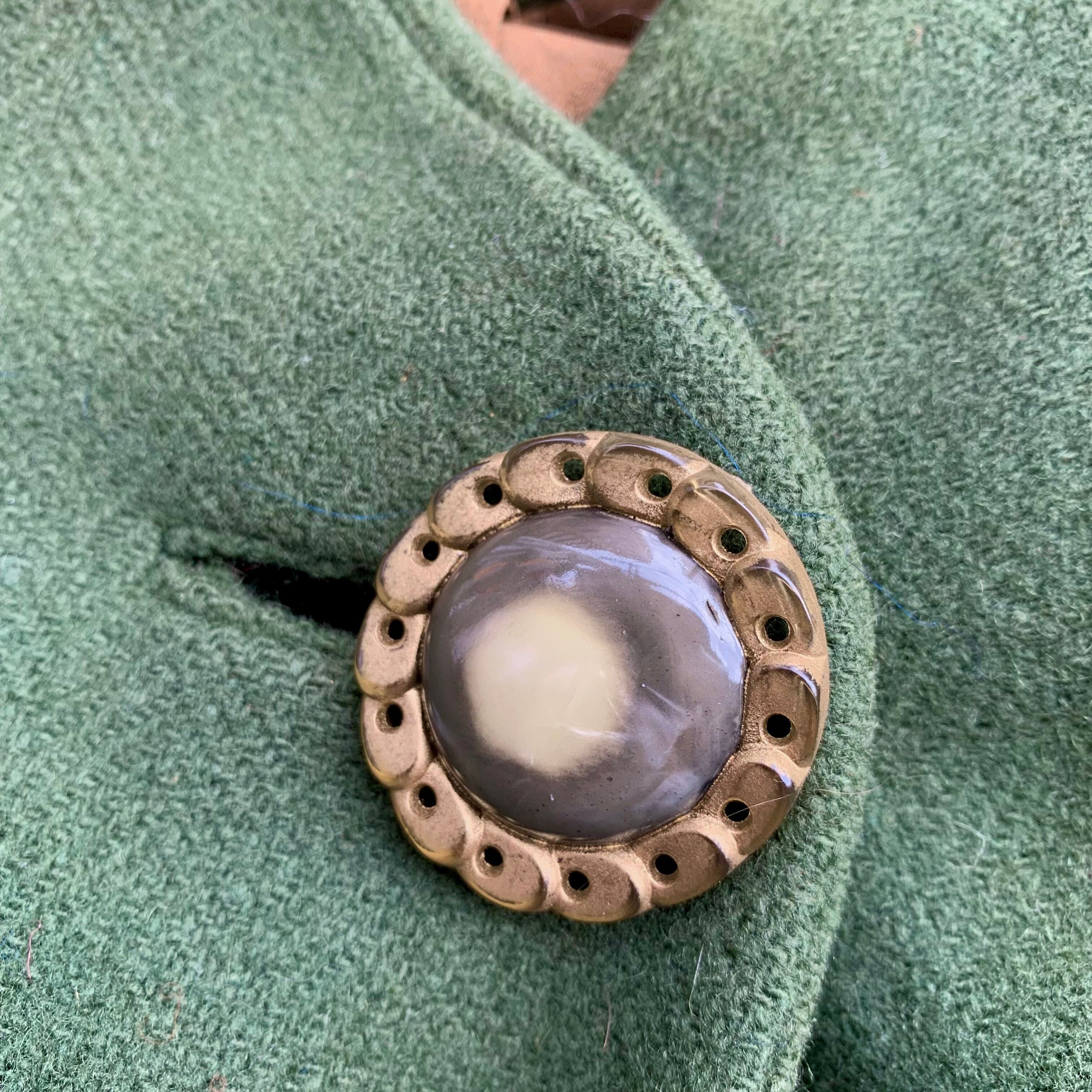 モスグリーンのウール地に、ブラウンの裏地が全体に付いています。