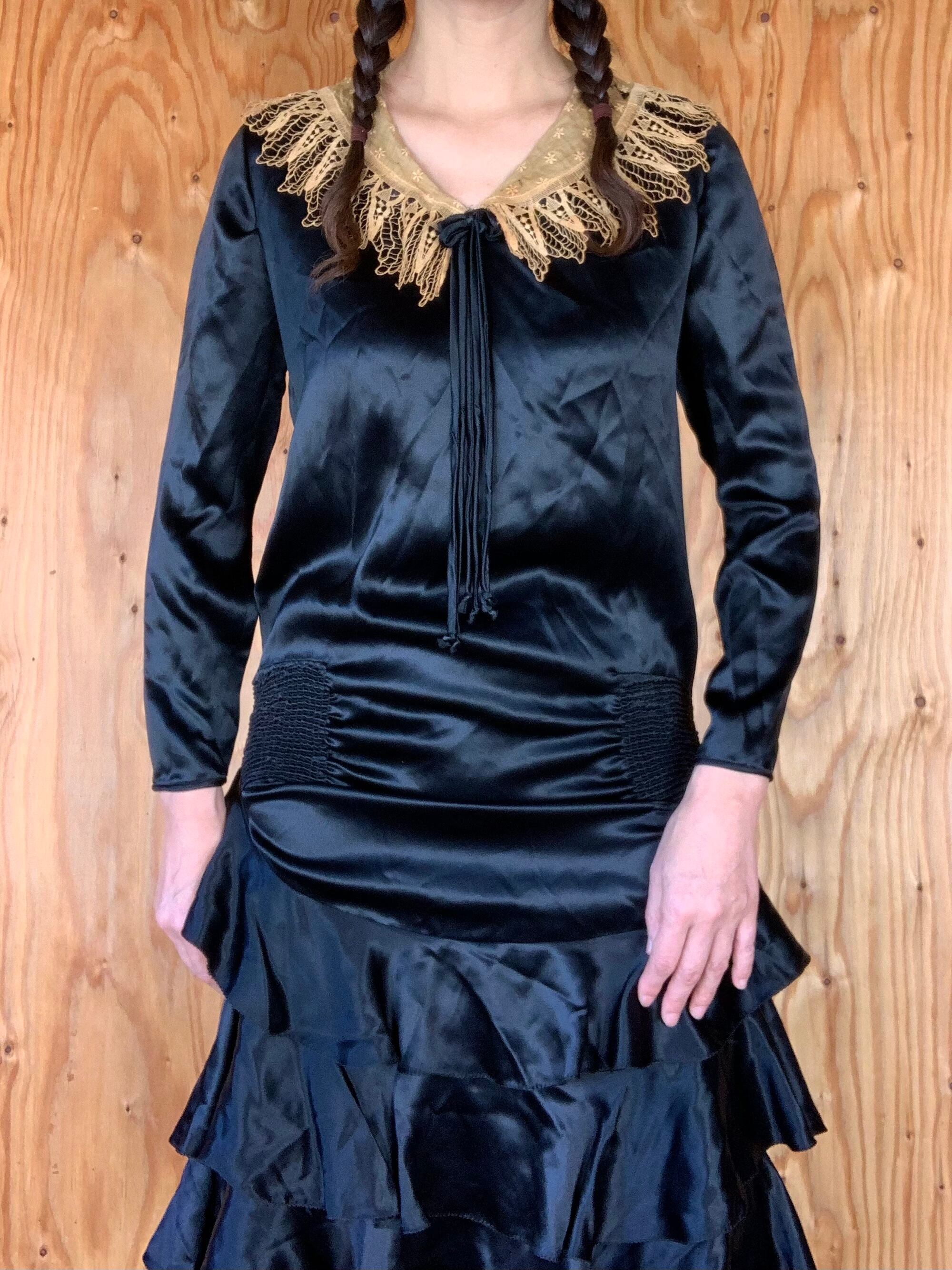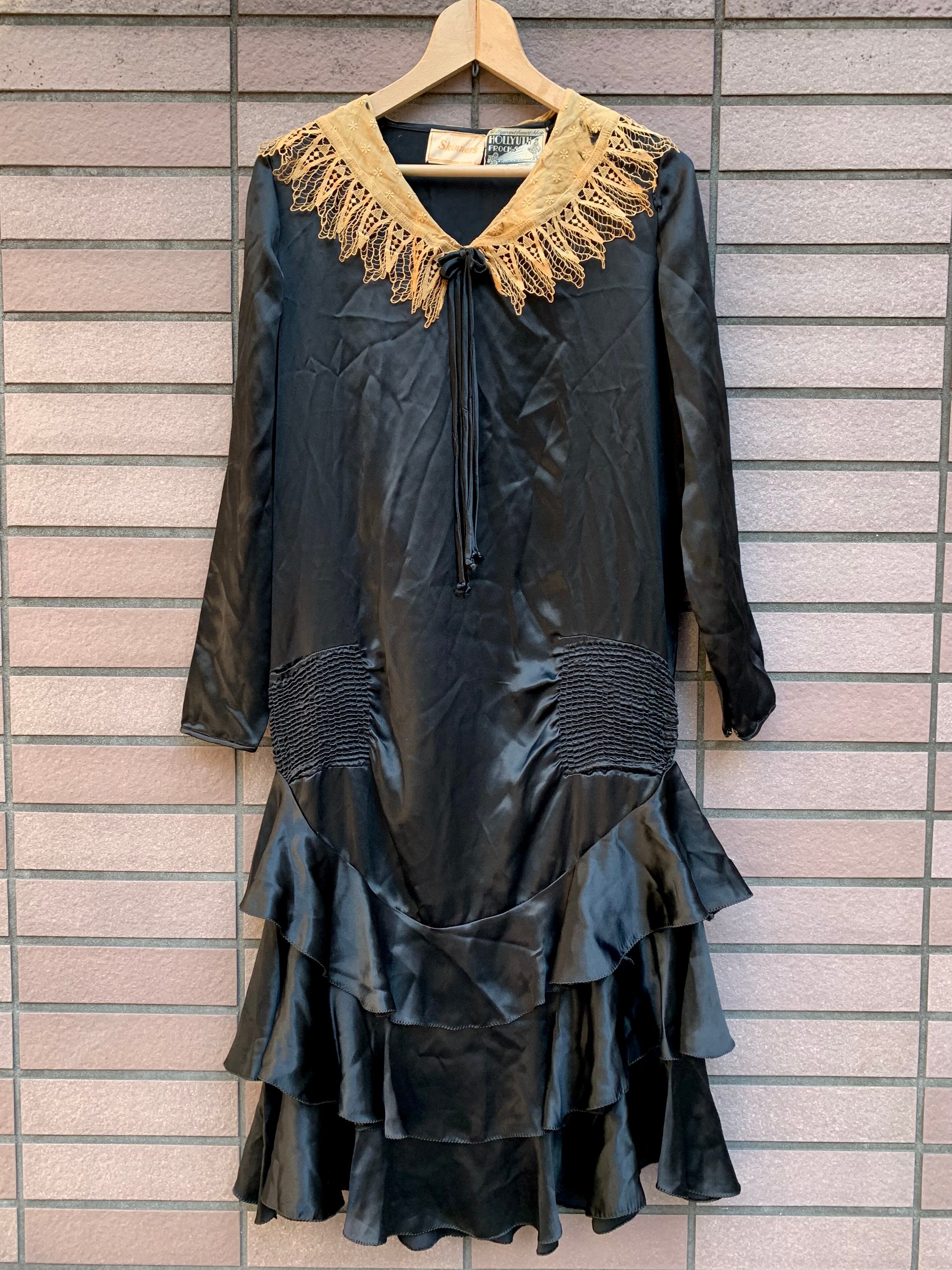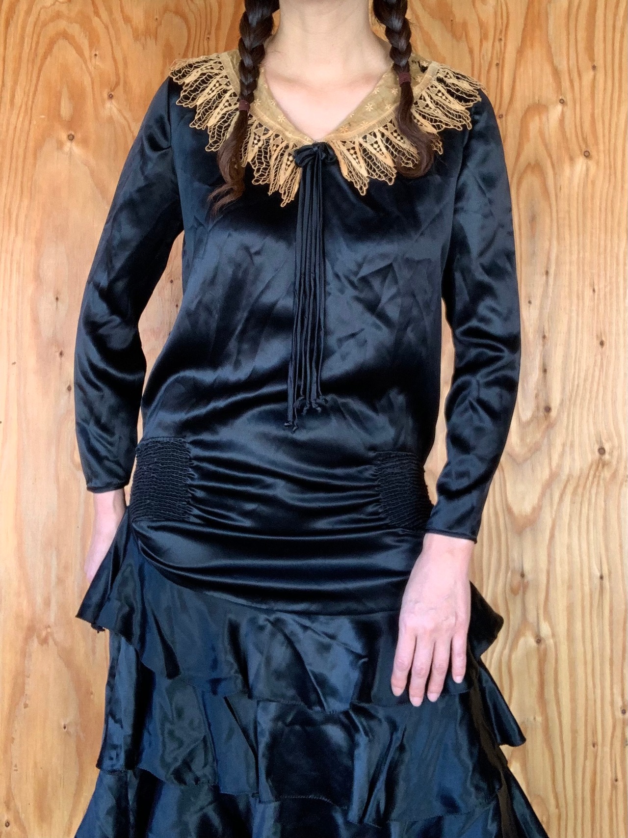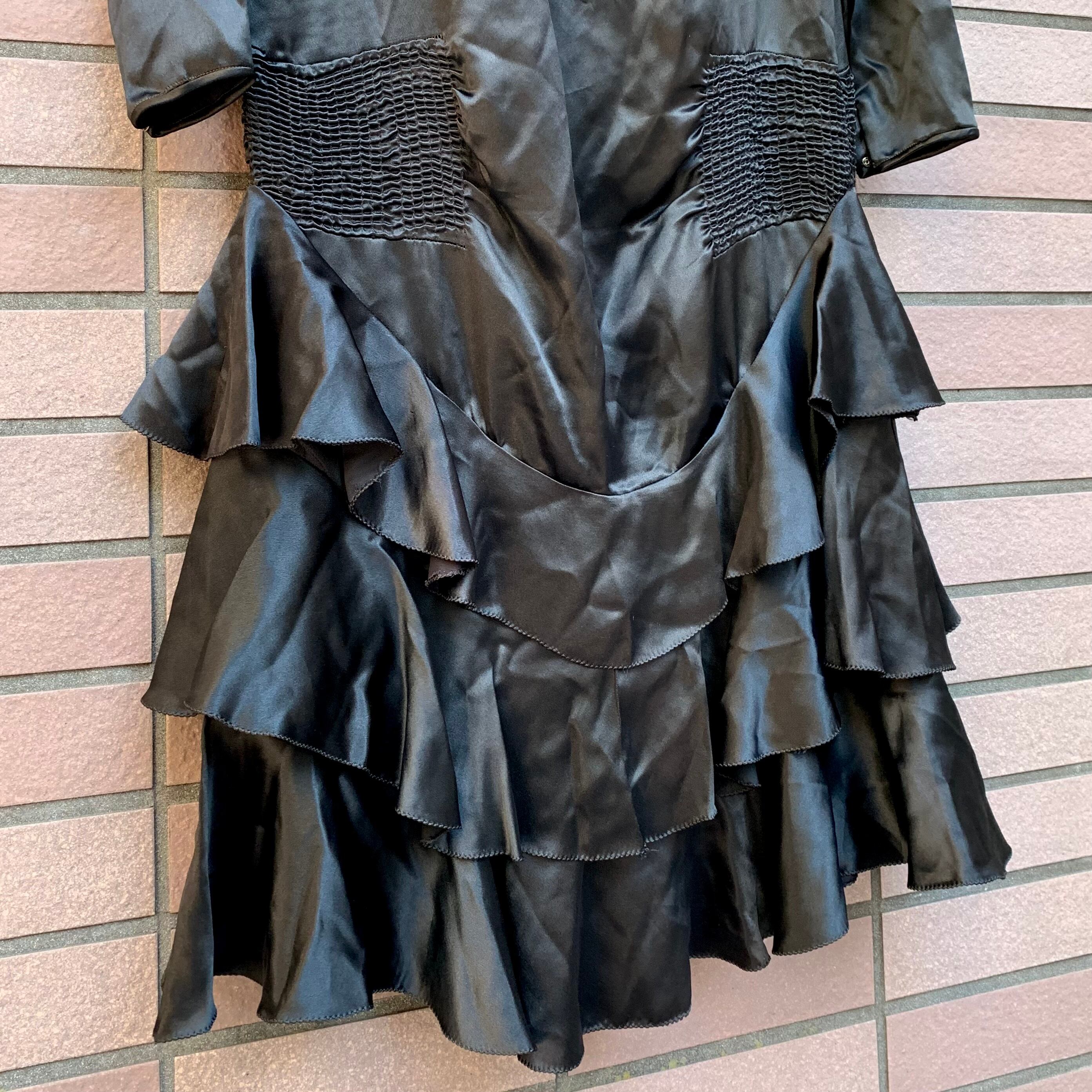 ローウエストで、両脇には細かなギャザーでシャーリング。