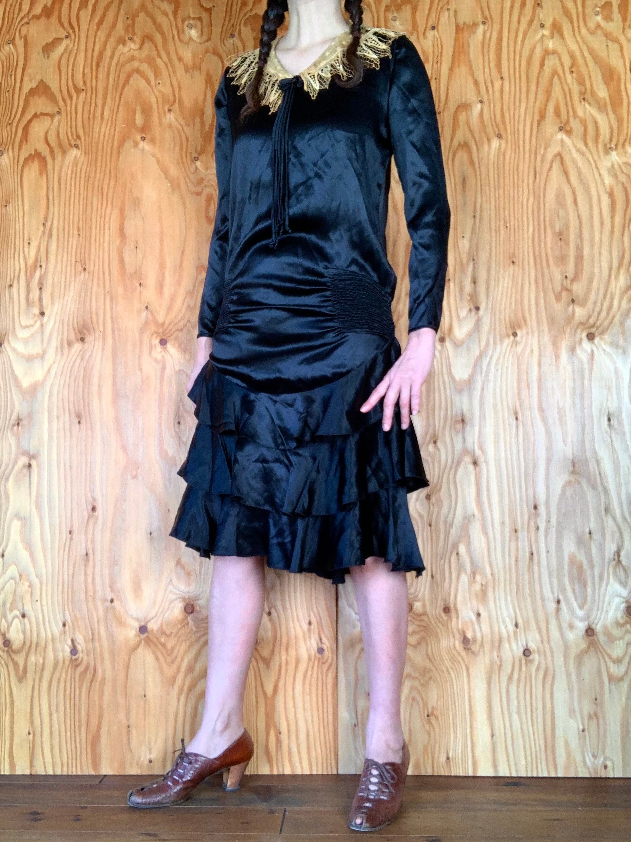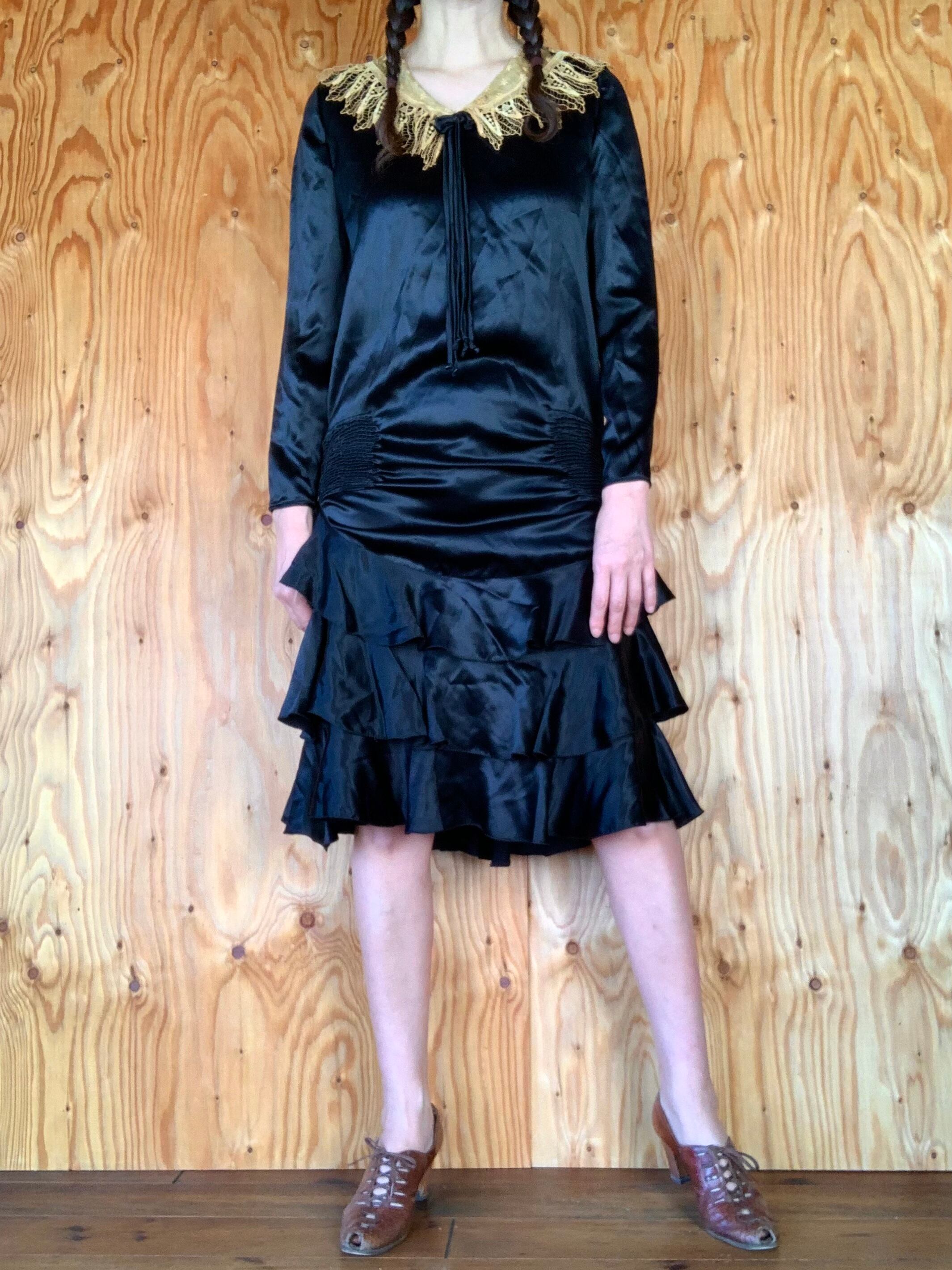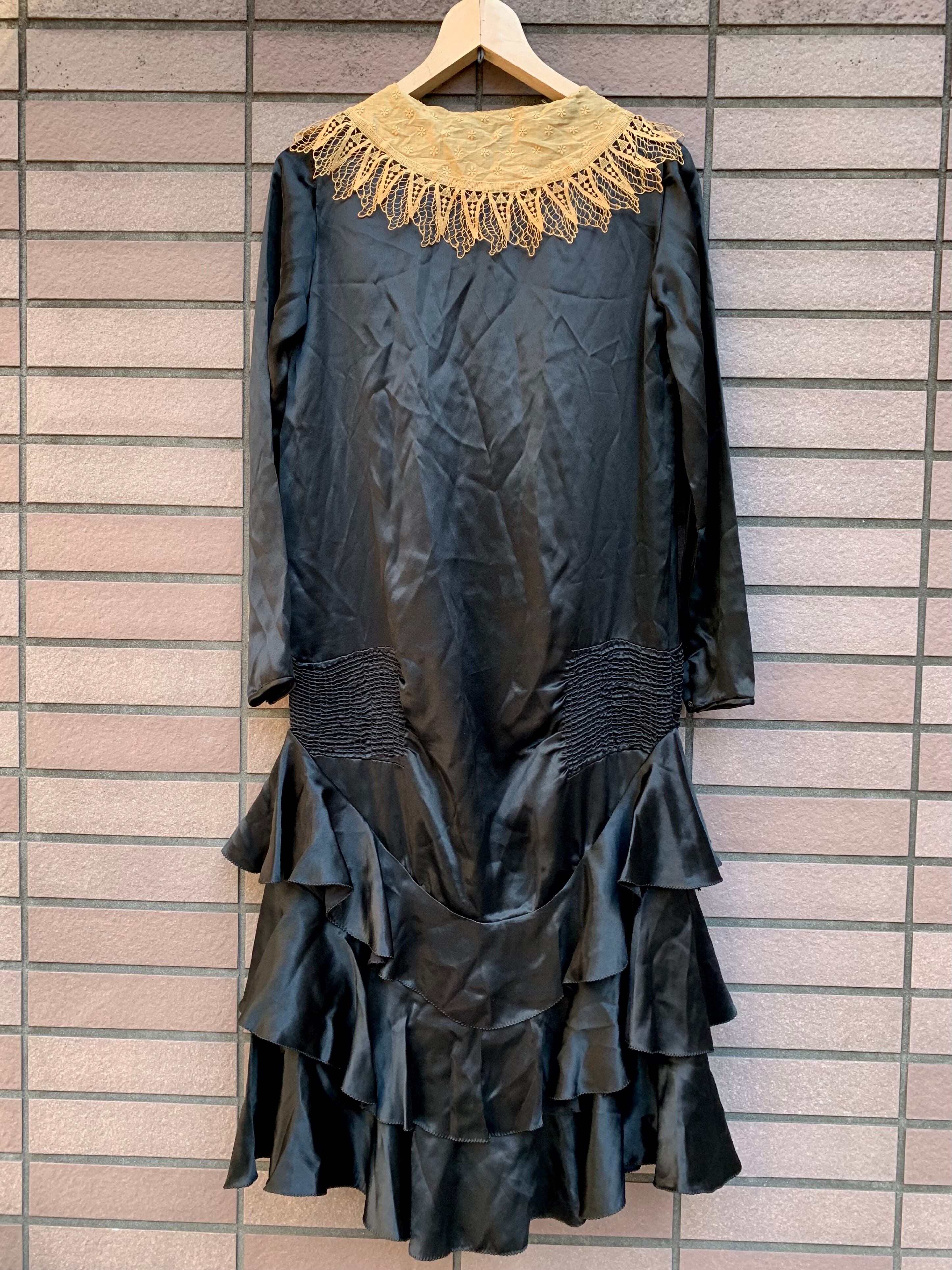 ローウエストで、両脇には細かなギャザーでシャーリング。