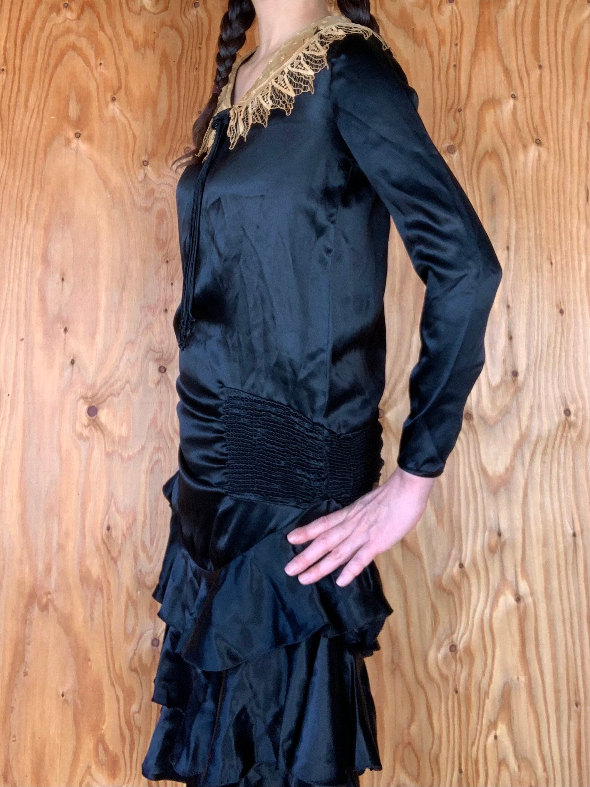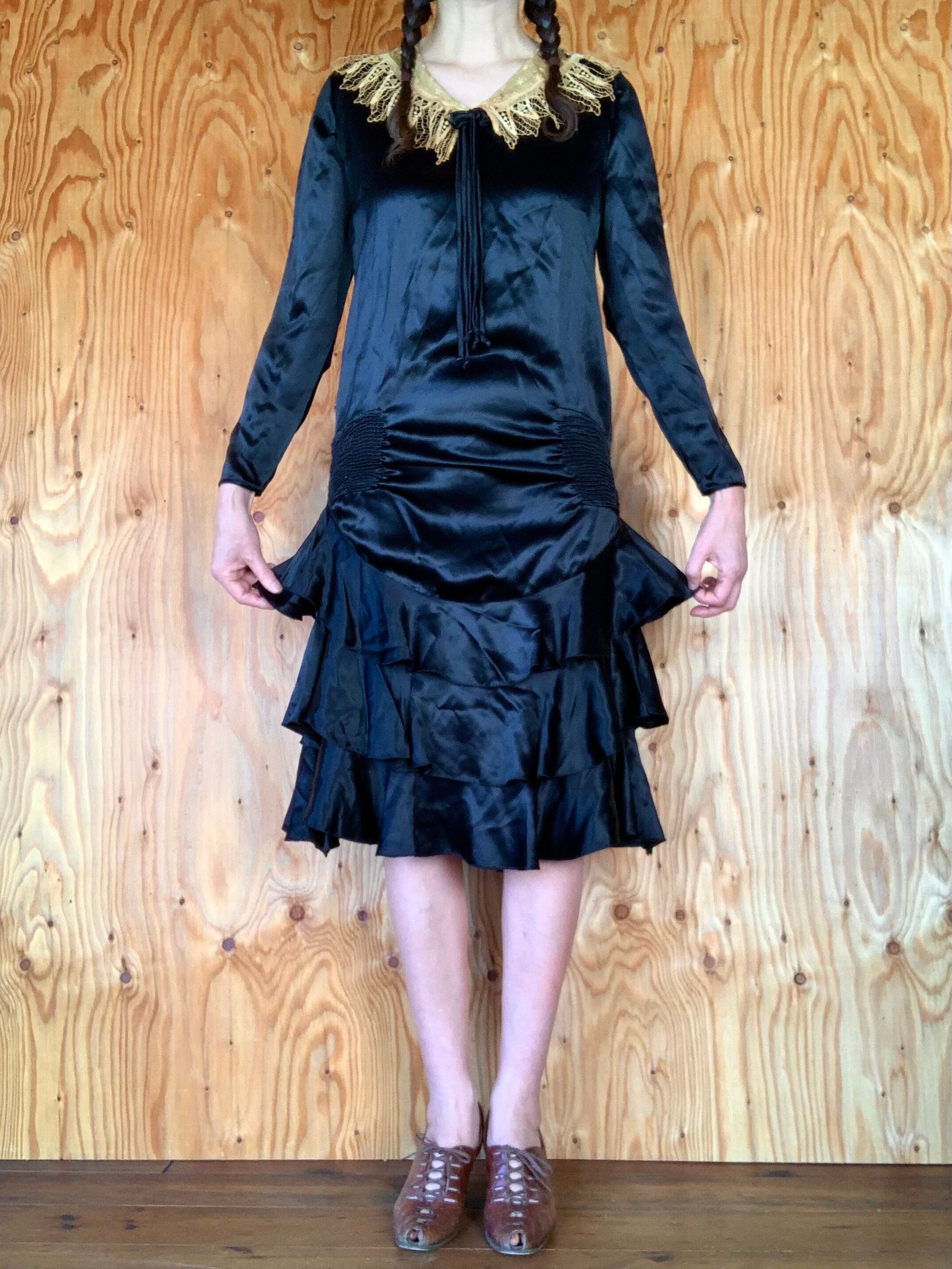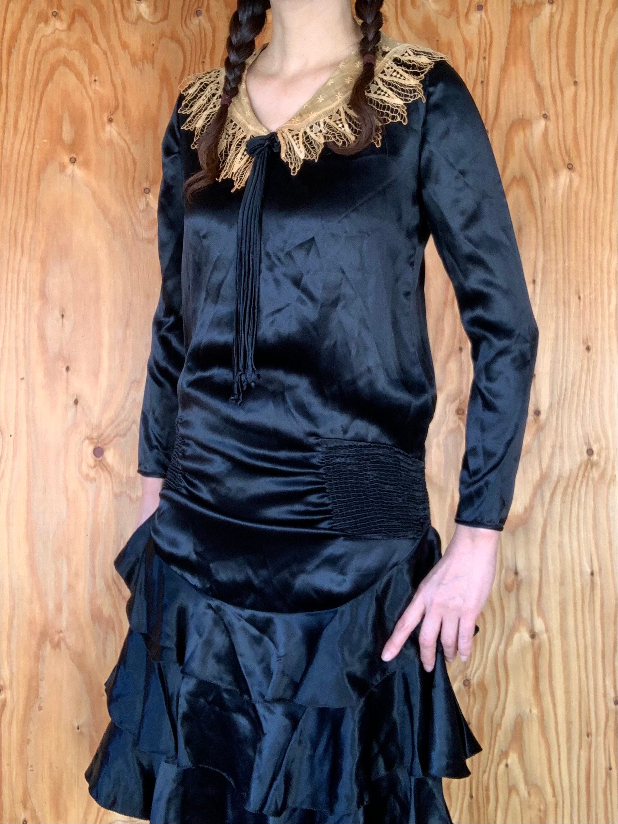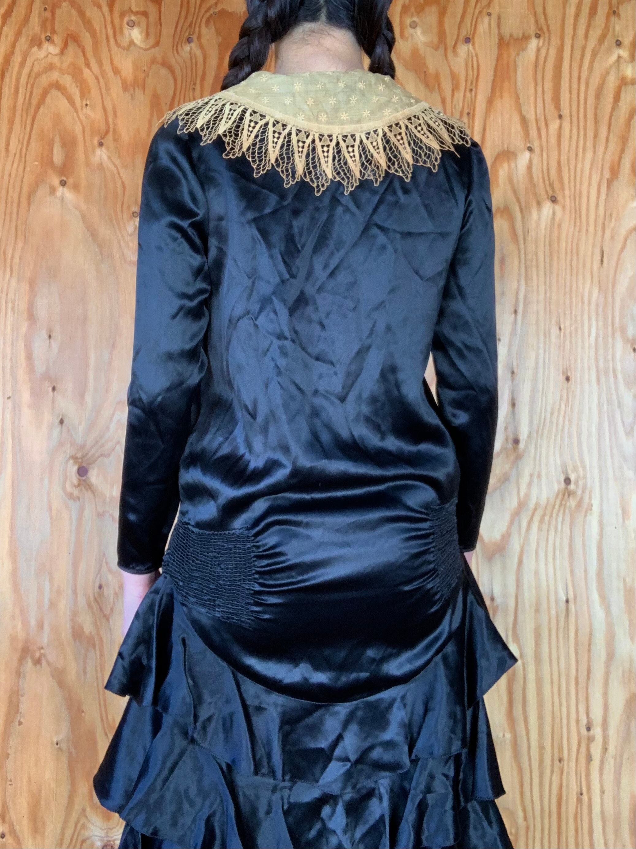ローウエストで、両脇には細かなギャザーでシャーリング。
