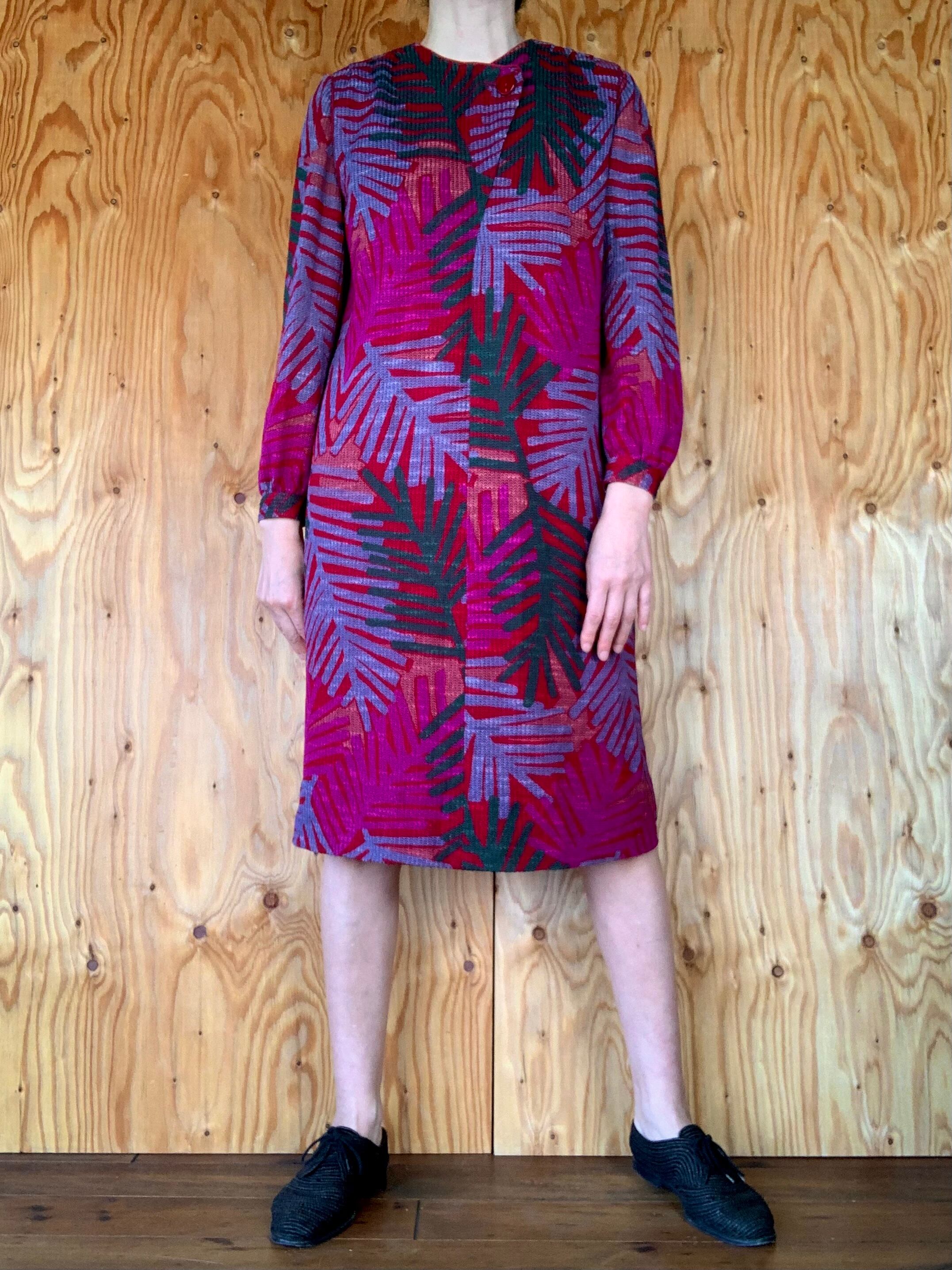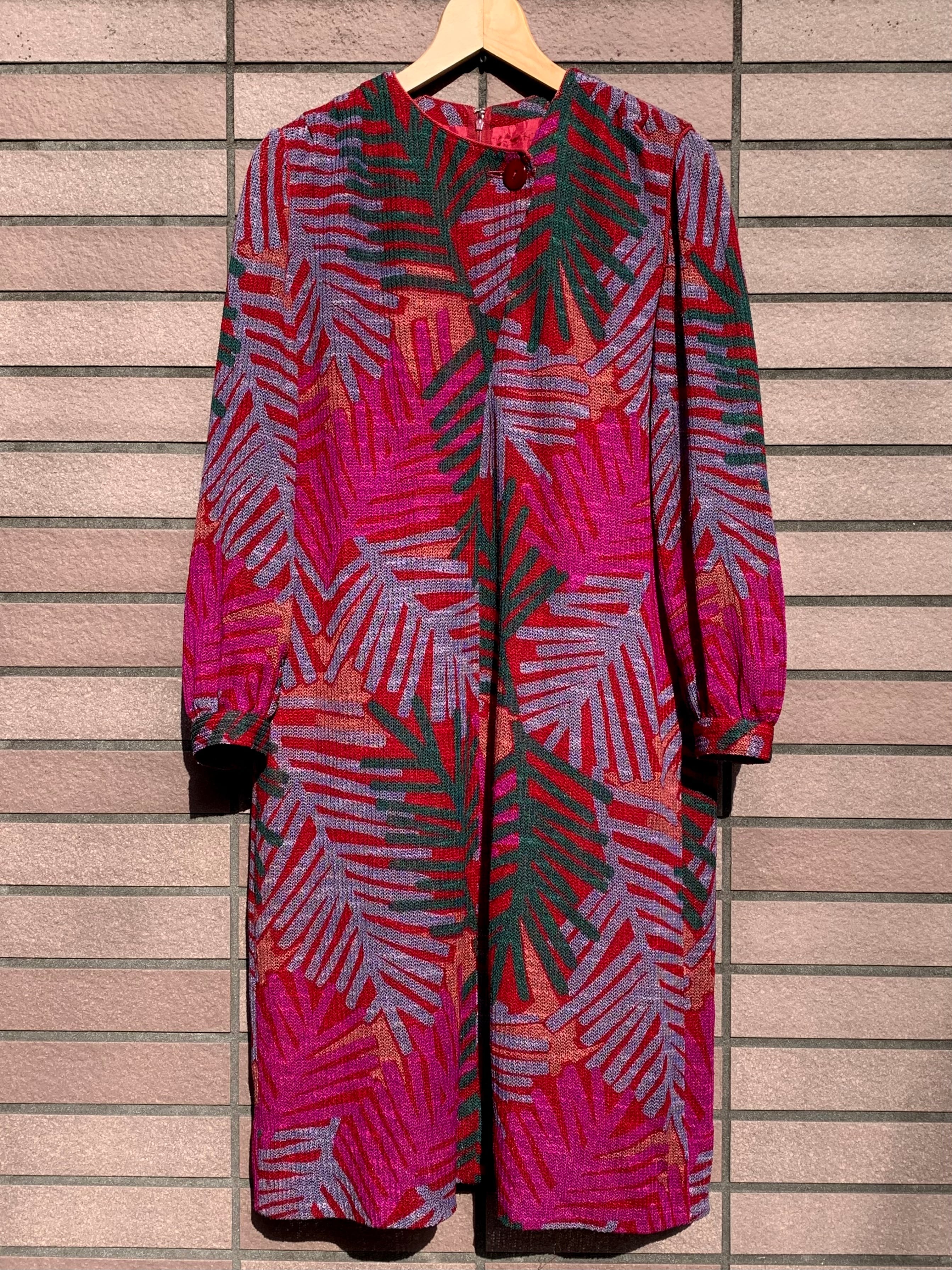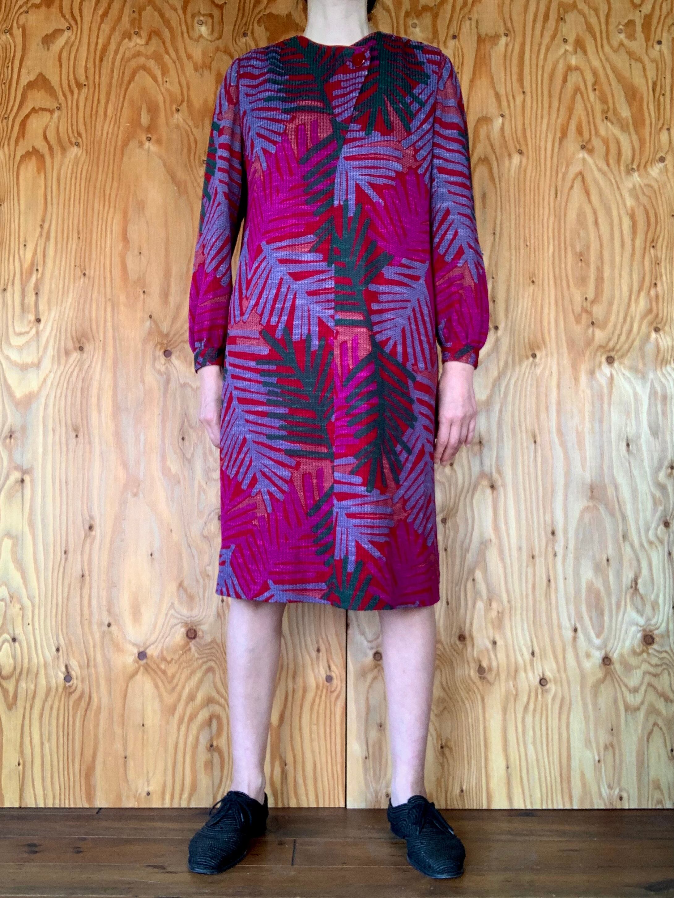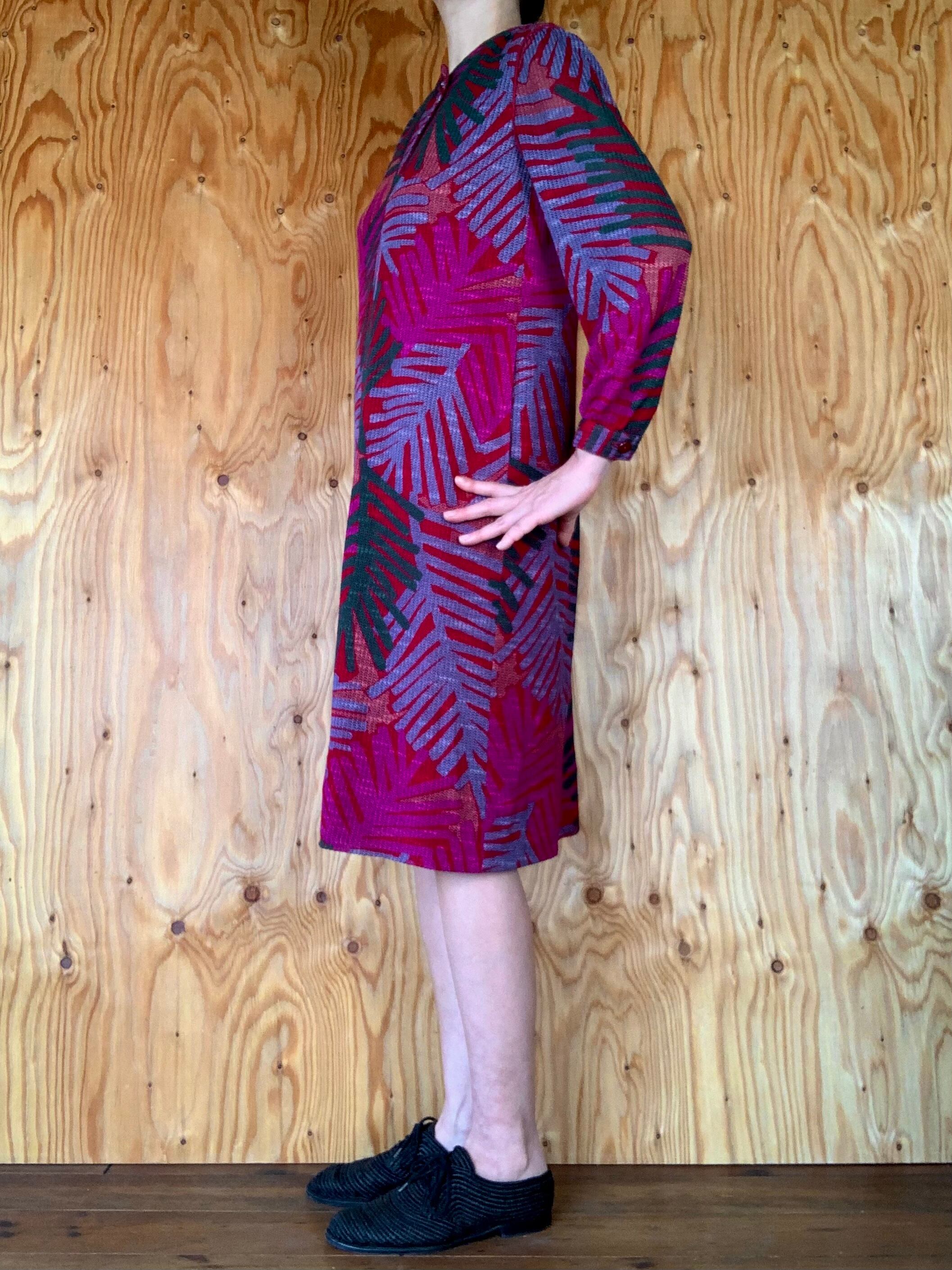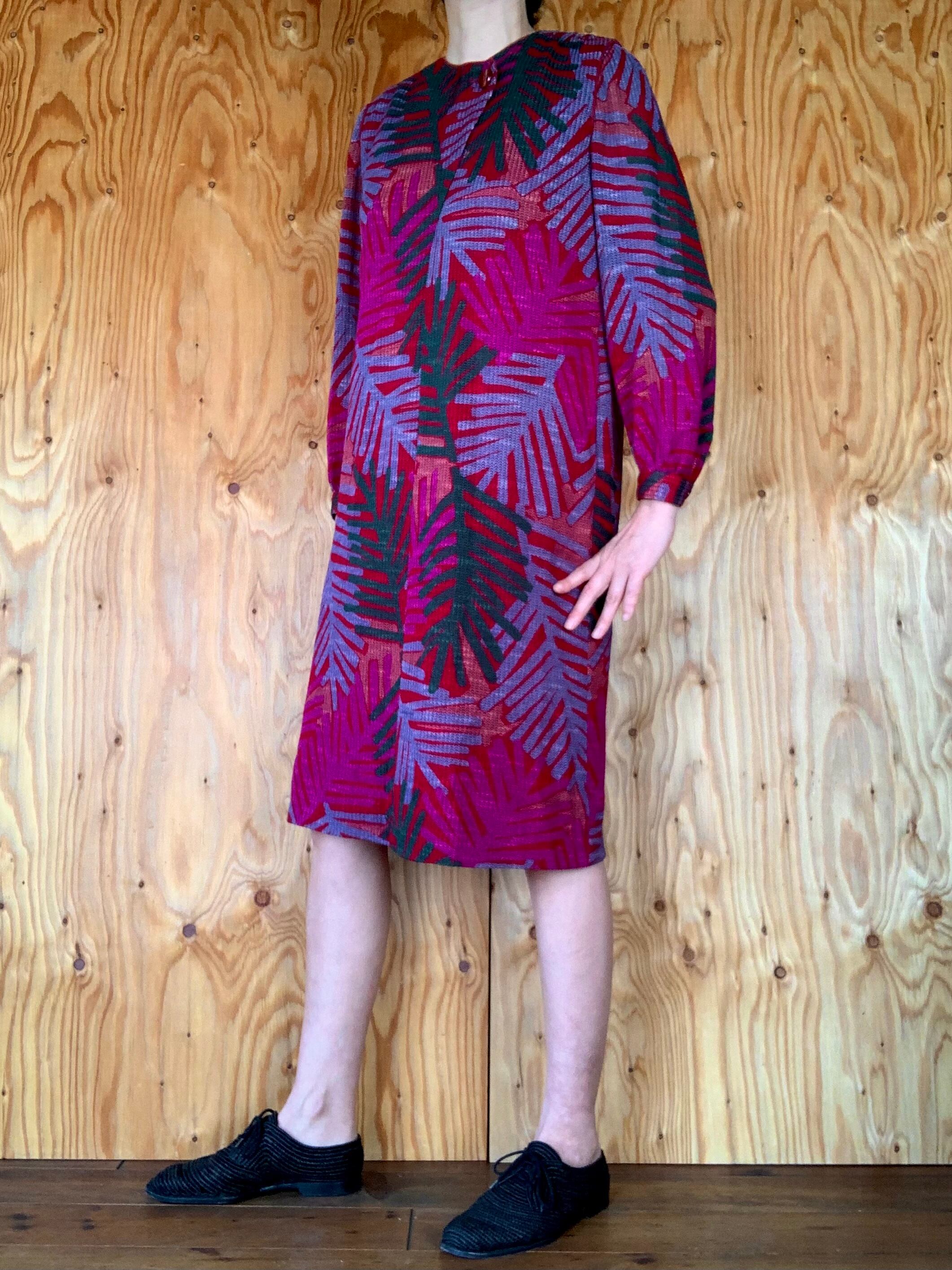 ボルドーやピンク、モスグリーン、グレーの総柄。