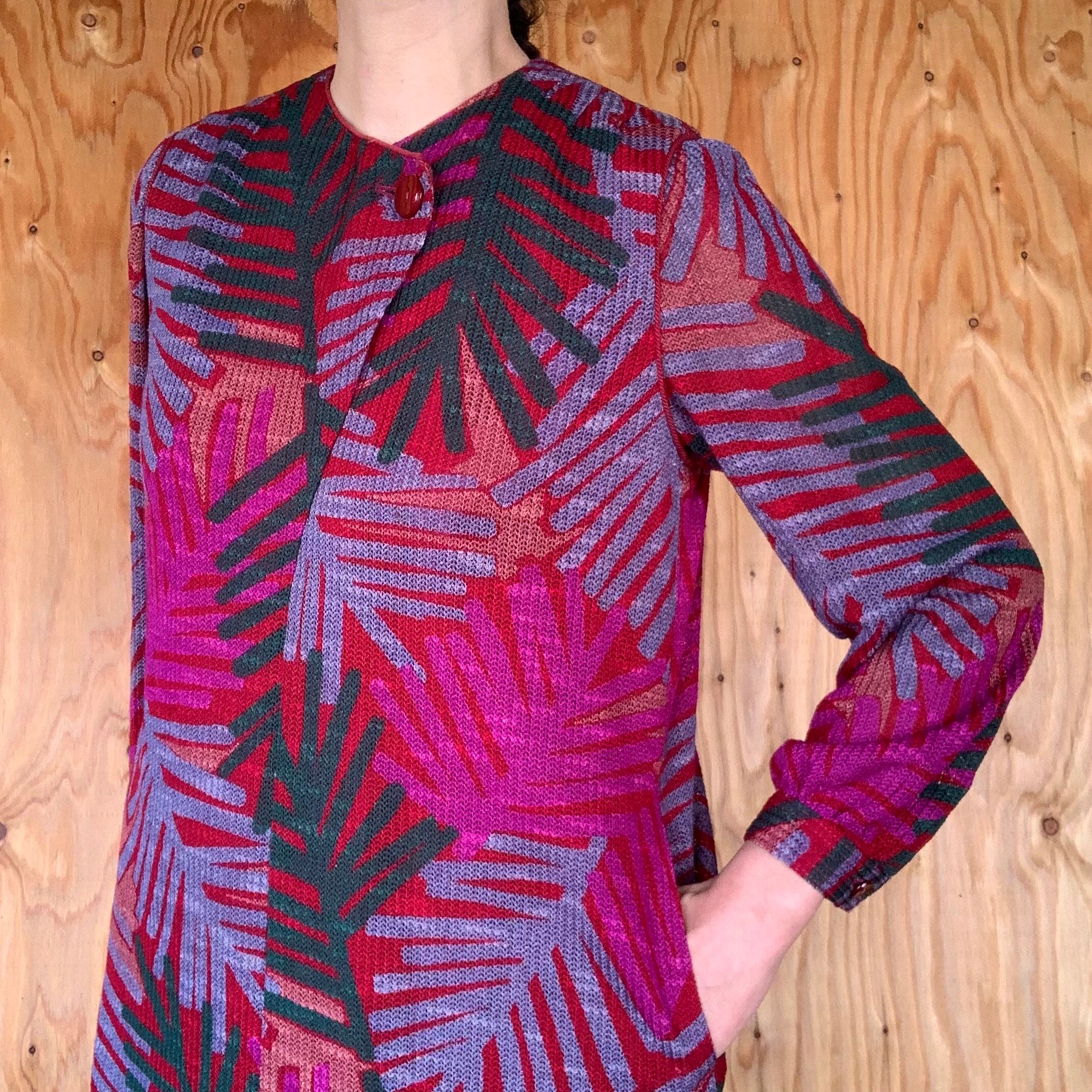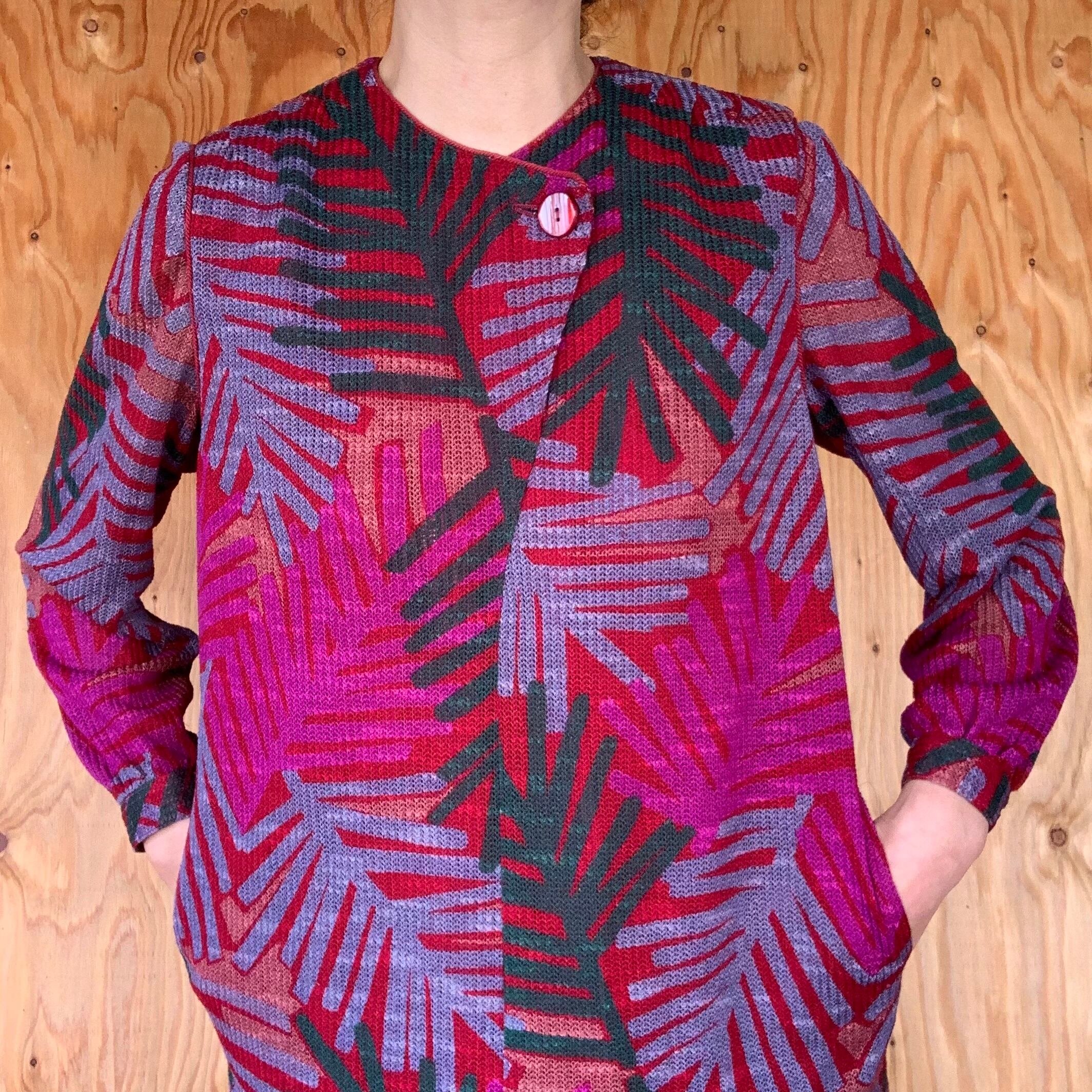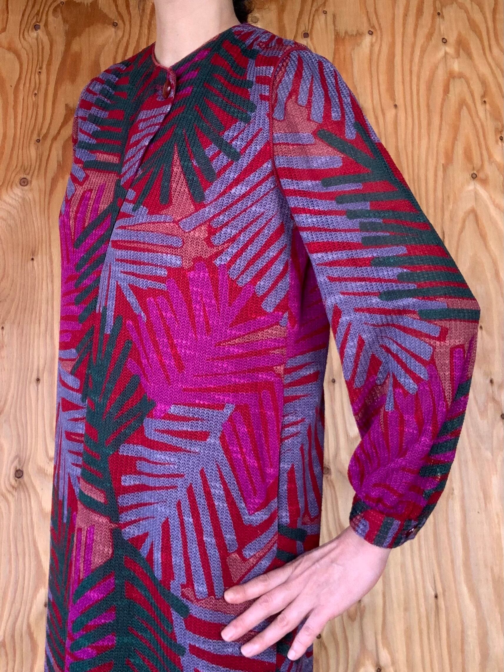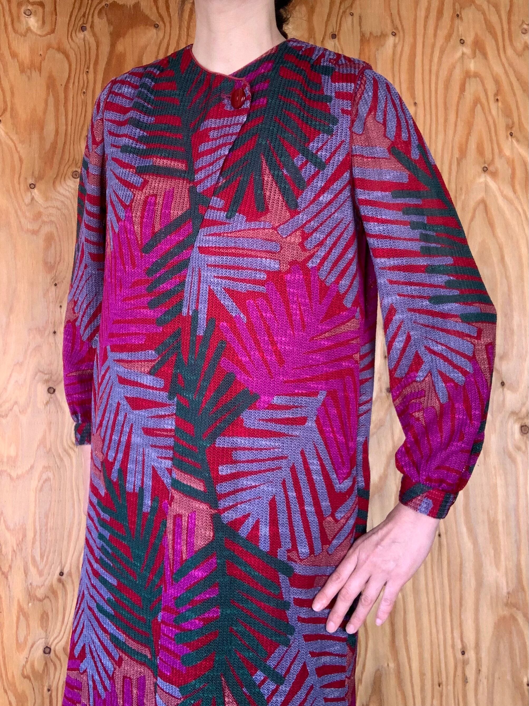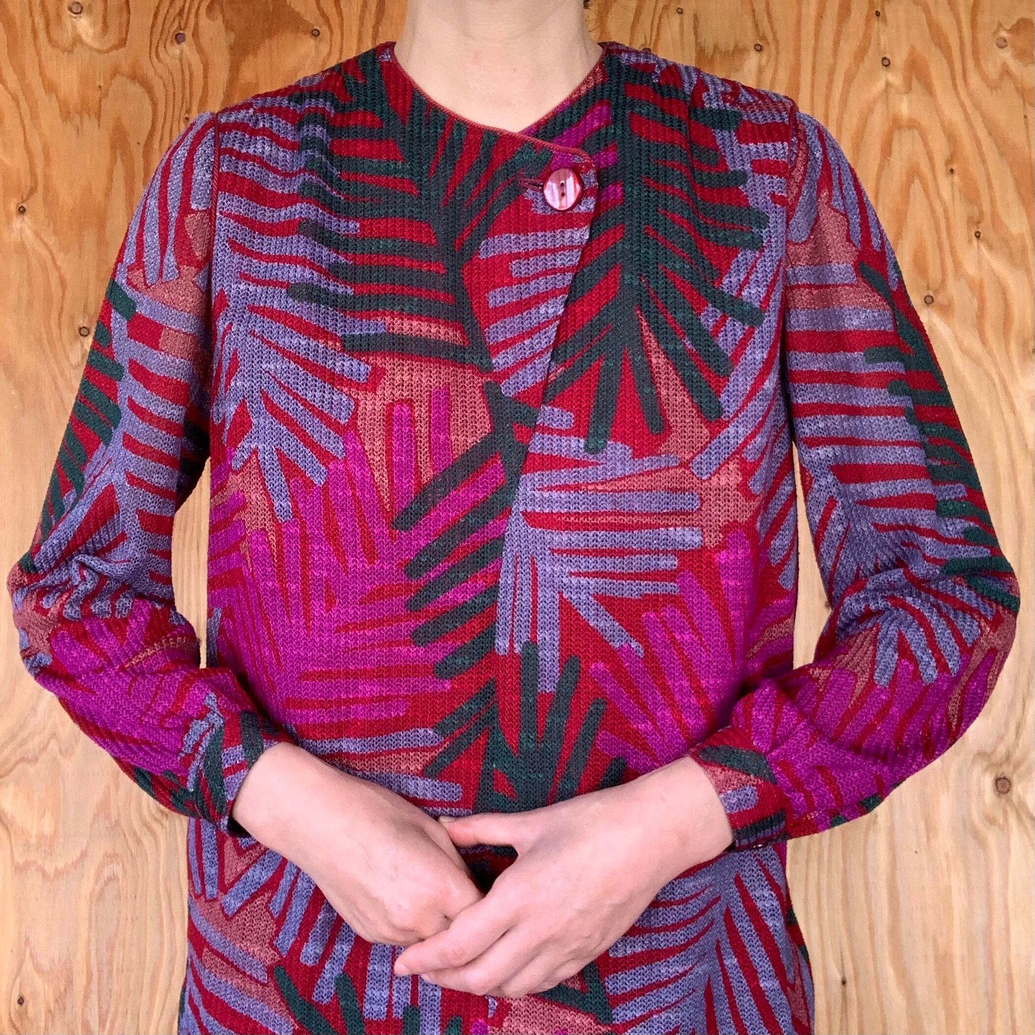ボルドーやピンク、モスグリーン、グレーの総柄。