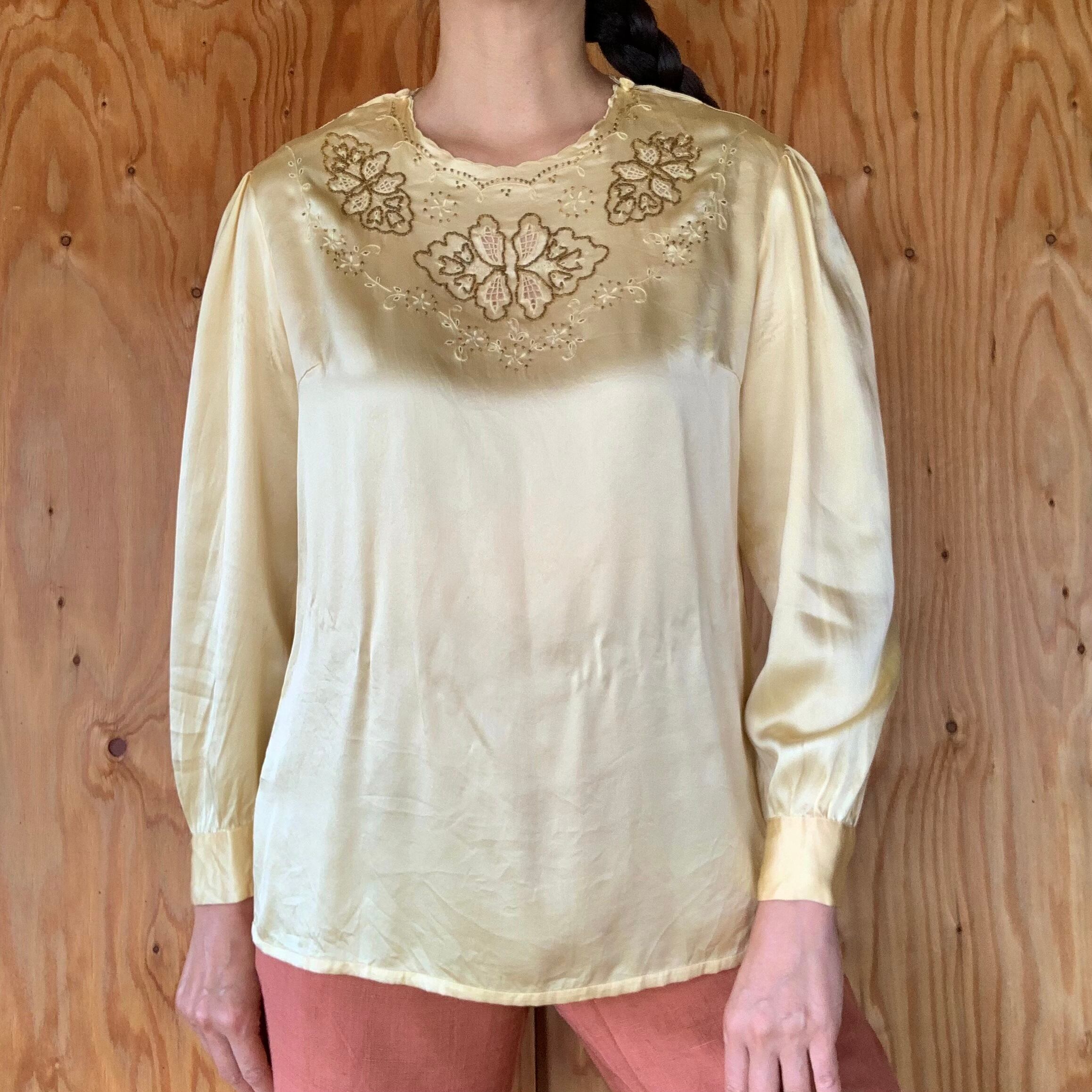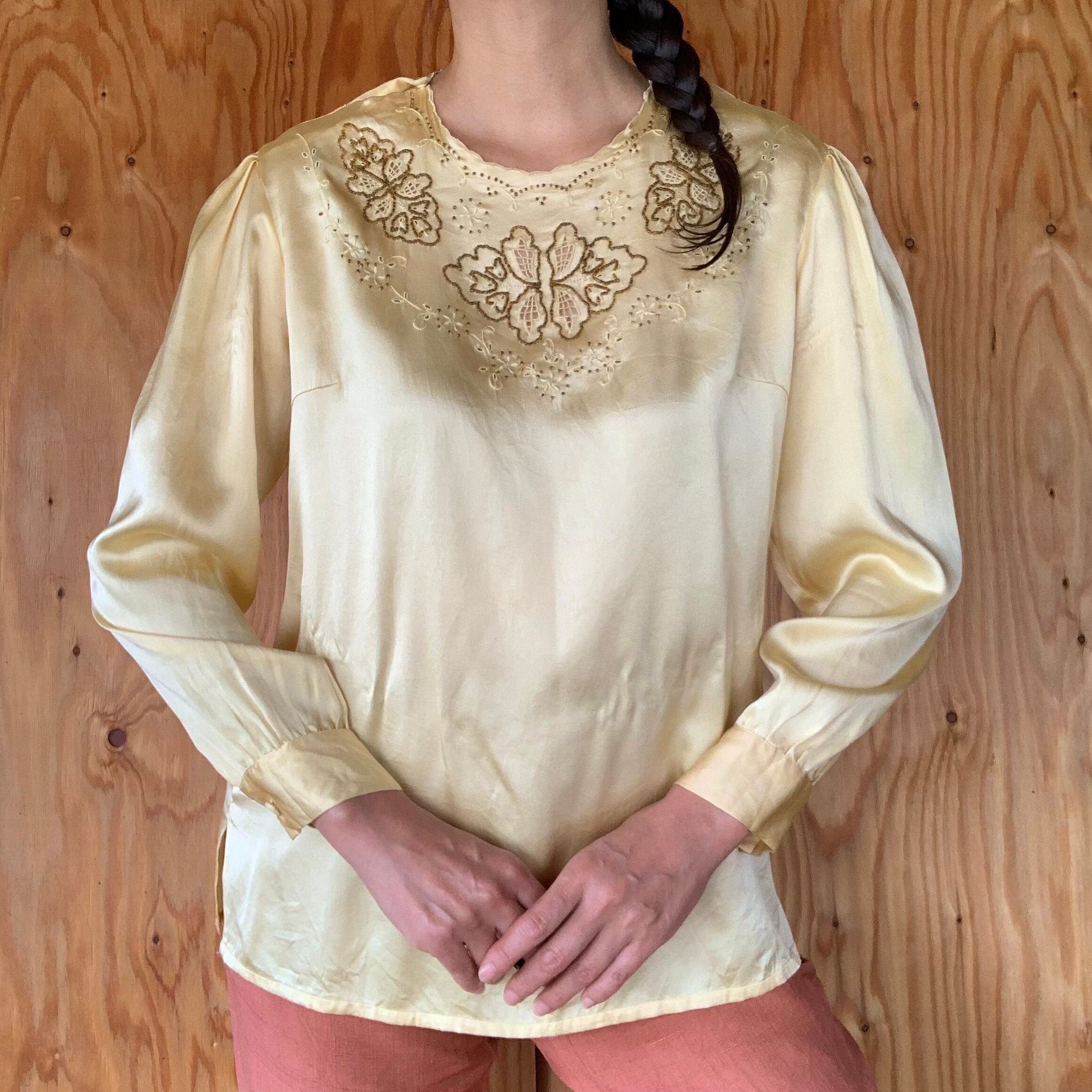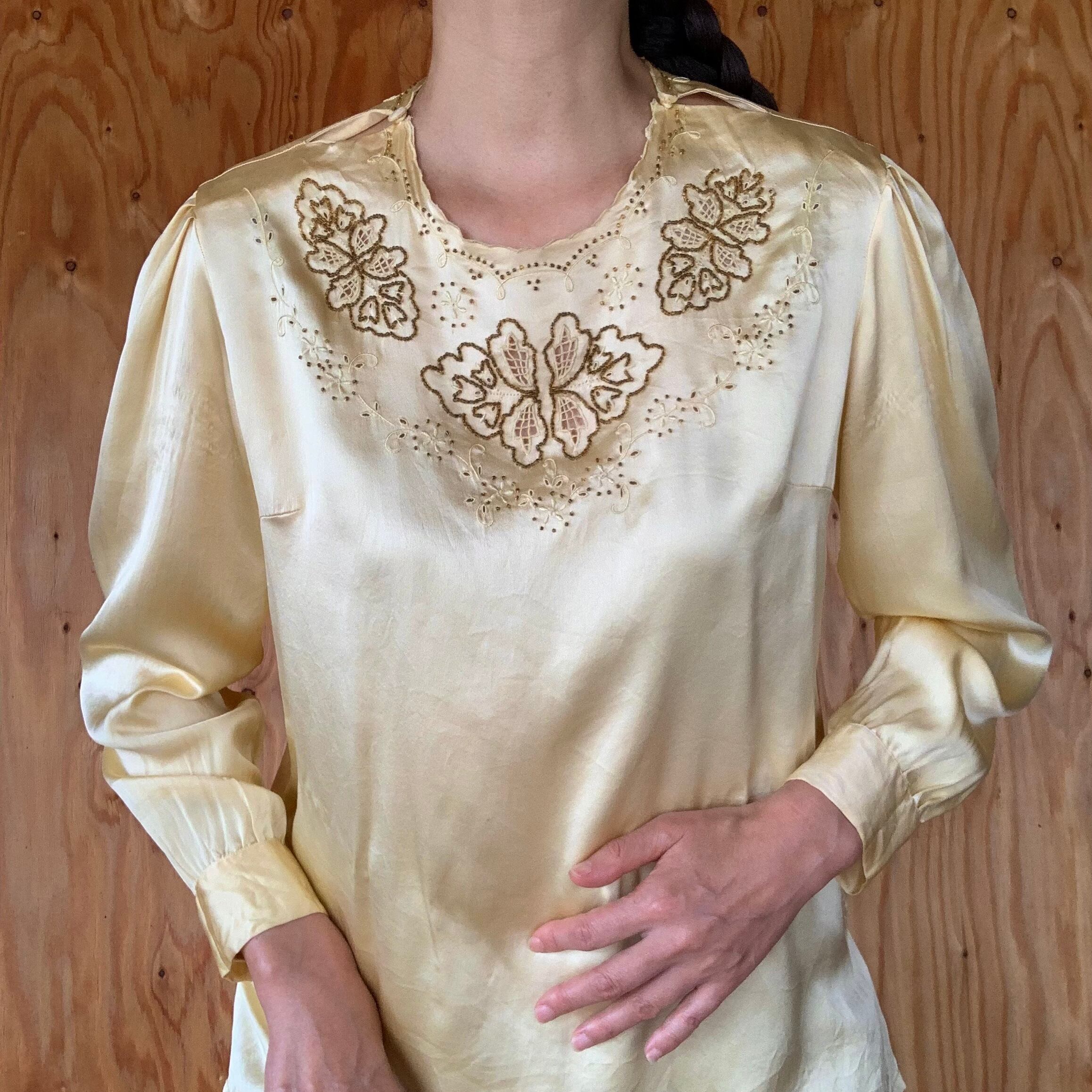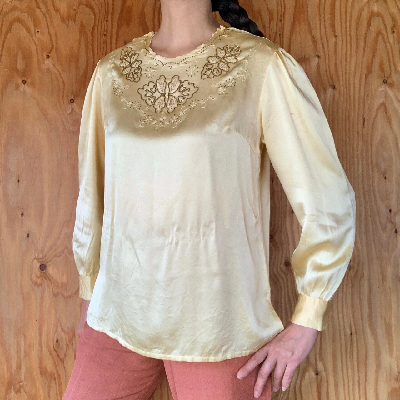胸元は、イエローゴールドのビーズ刺繍と繊細な透かしになっています。