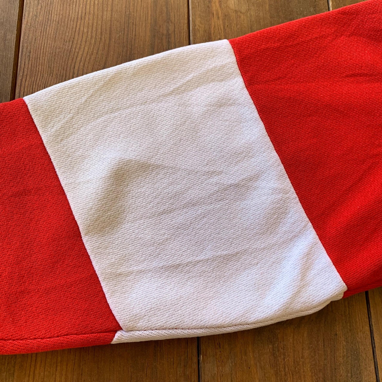 赤と白の生地が切替になっています。